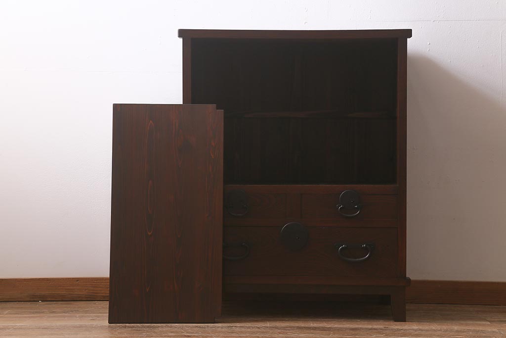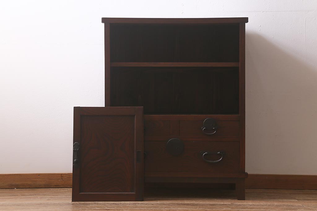 和箪笥> 帳場箪笥 > アンティーク家具 和製アンティーク 脚付きリメイク ケヤキの杢目が美しいシンプルな帳場箪笥(収納棚、時代箪笥、戸棚)(R-043254)
