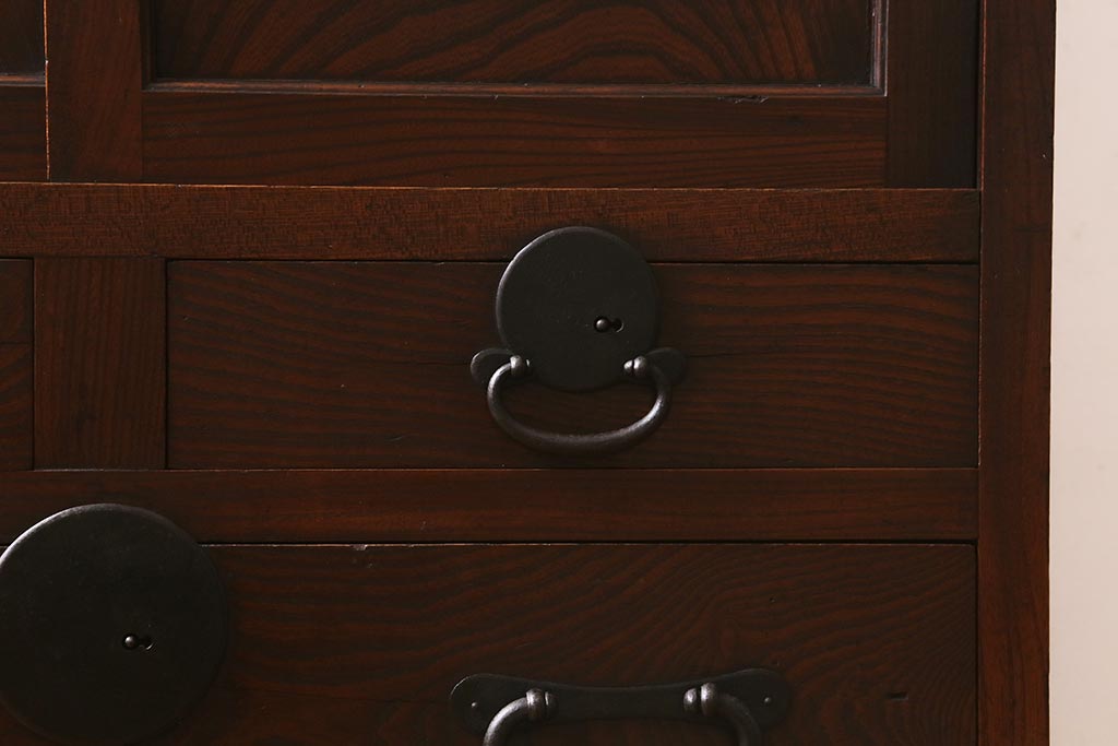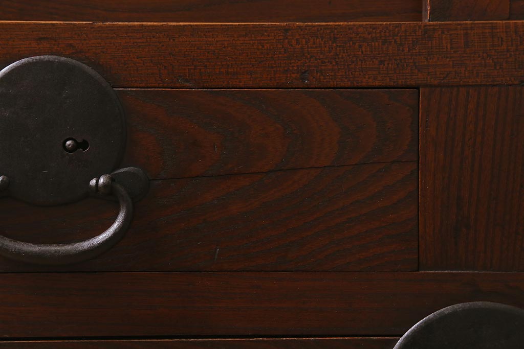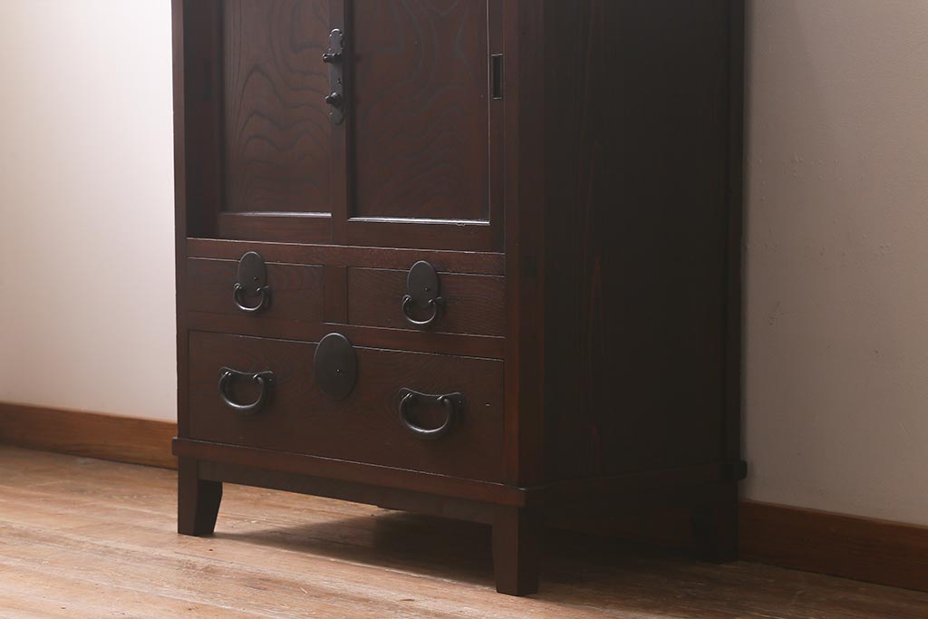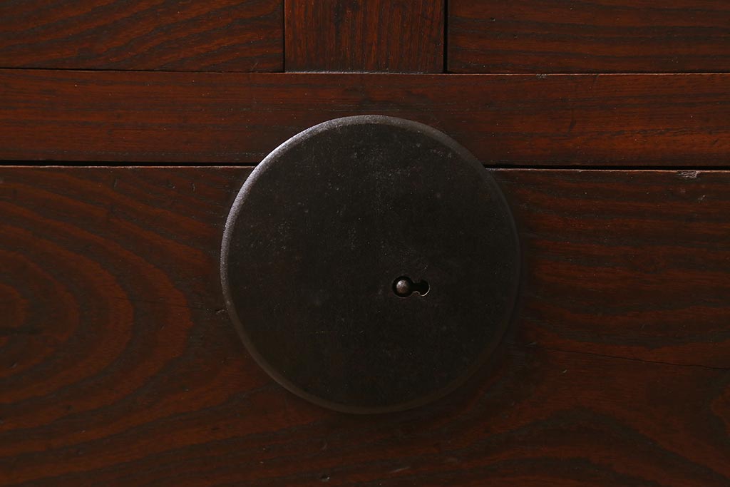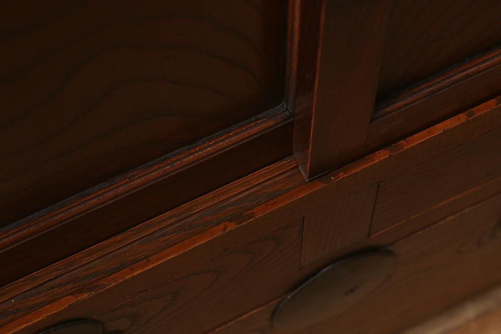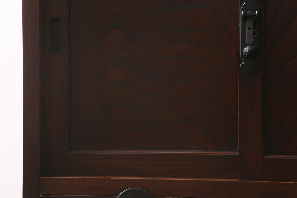 和箪笥 > アンティーク家具 和製アンティーク 脚付きリメイク ケヤキの杢目が美しいシンプルな帳場箪笥(収納棚、時代箪笥、戸棚)(R-043254)
