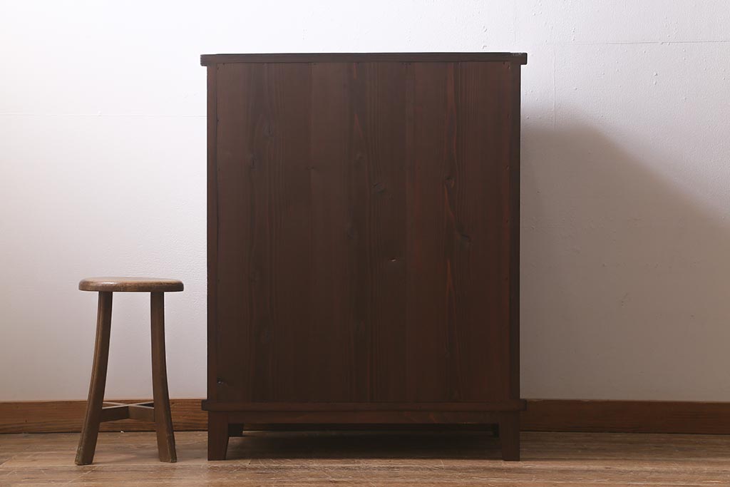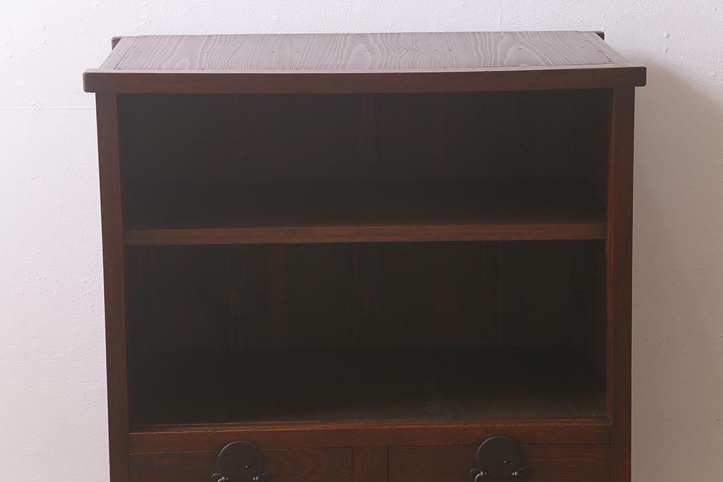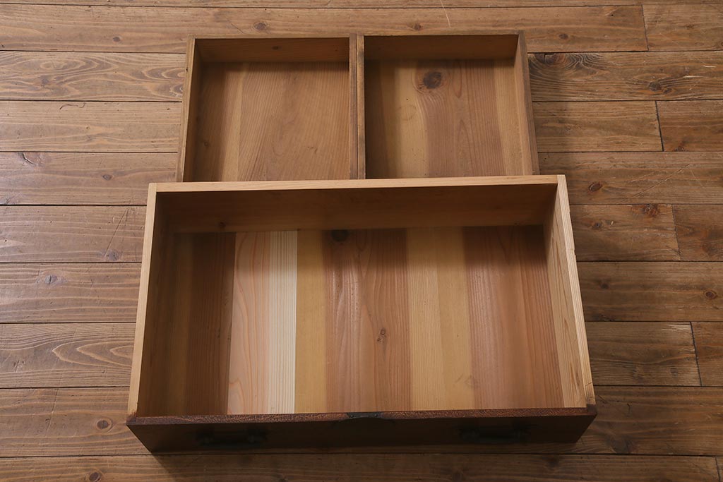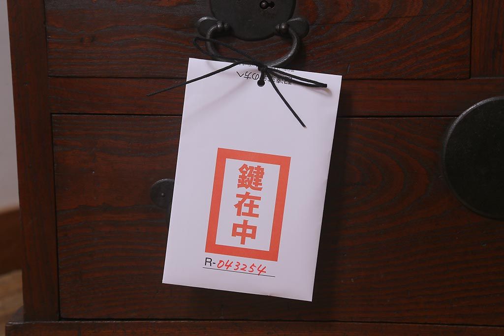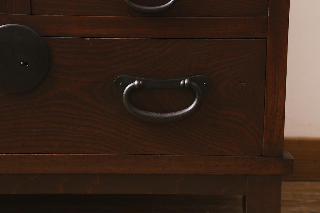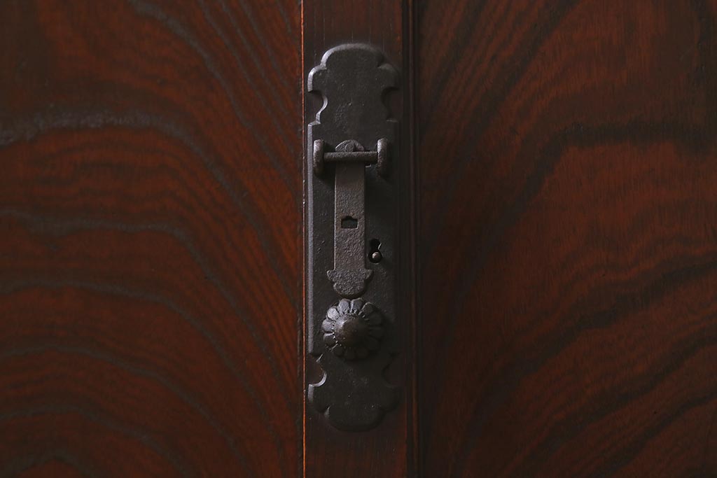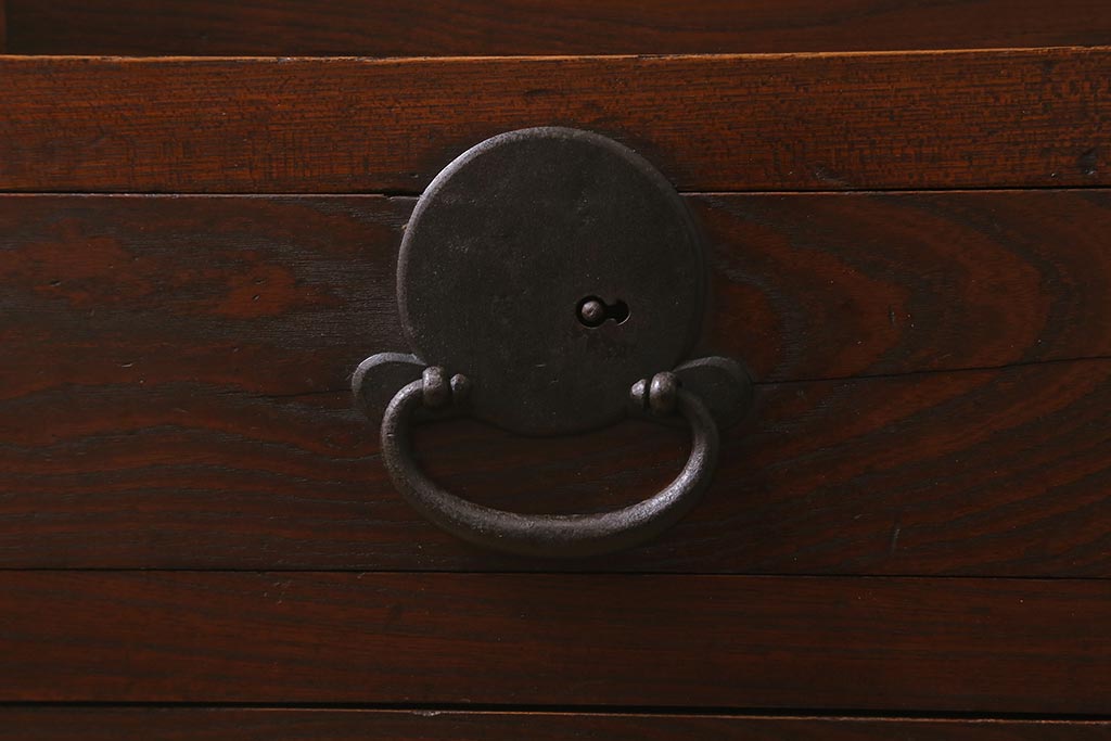 和箪笥 > アンティーク家具 和製アンティーク 脚付きリメイク ケヤキの杢目が美しいシンプルな帳場箪笥(収納棚、時代箪笥、戸棚)(R-043254)