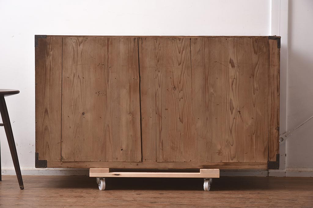 アンティーク家具 前面ケヤキ材 引き出し3杯 漆塗り 木瓜引き手 レトロや和モダンスタイルにおすすめな衣装箪笥(ローチェスト、ローボード)(R-042934)です。