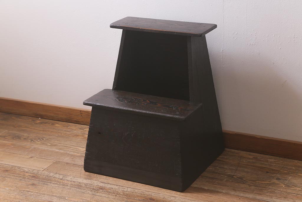 アンティーク雑貨 明治大正期 松材 古い木の質感が味わい深い踏み台(ステップ、飾り台、花台)(R-040275)