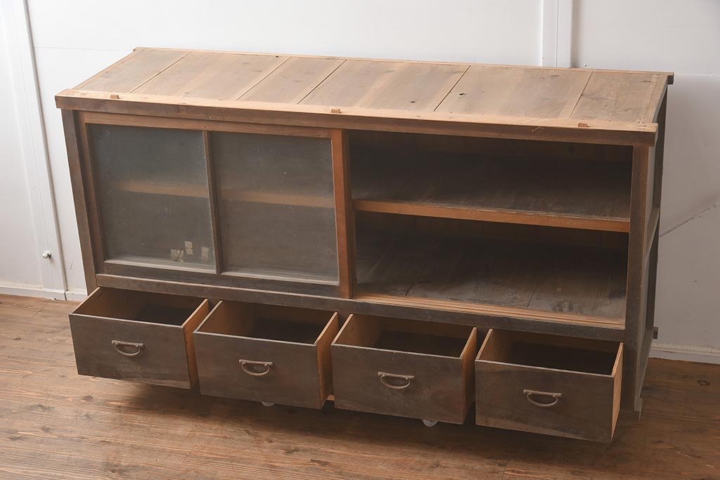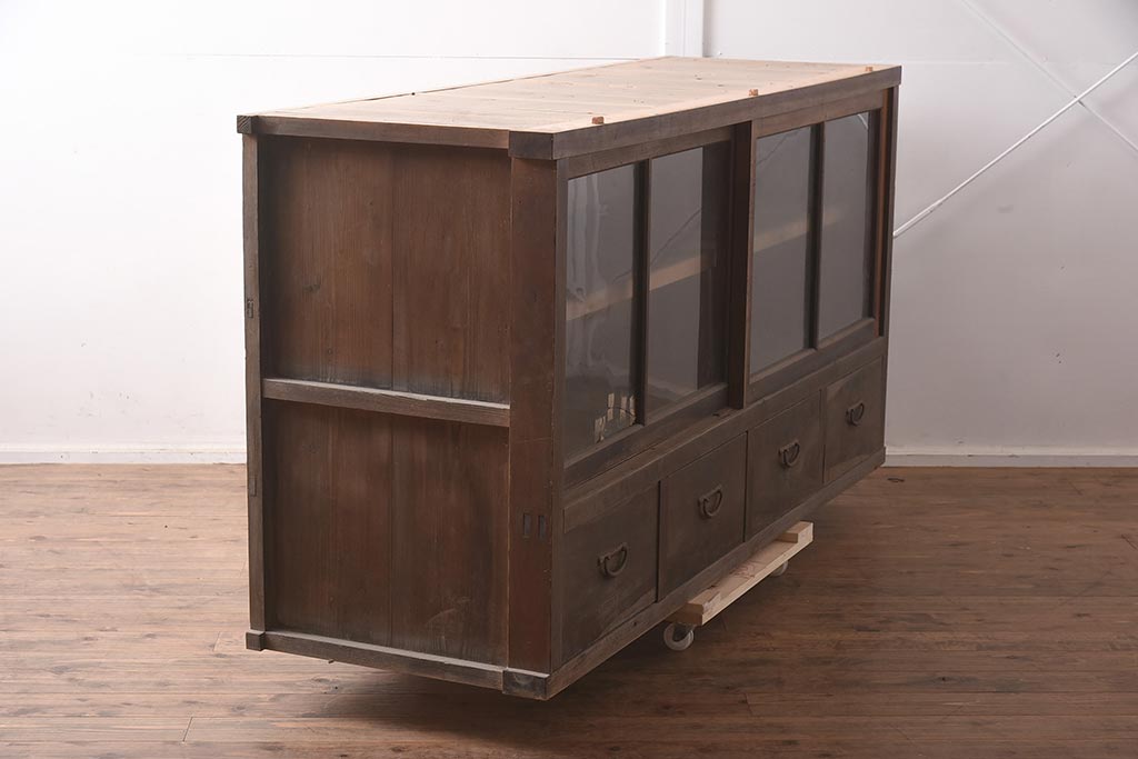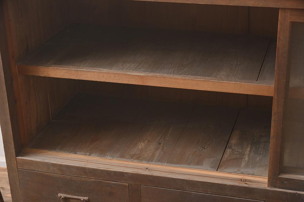 アンティーク家具 ヒノキ材 シンプルなガラス戸棚(サイドボード、キャビネット、収納棚)(R-042953)です。