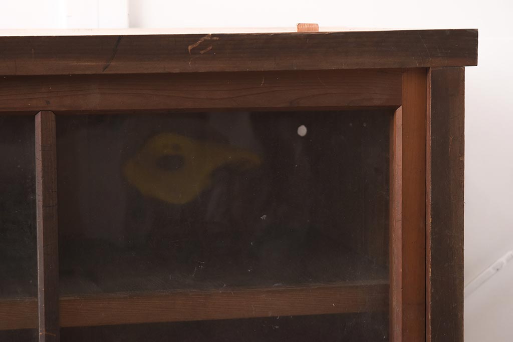 アンティーク家具 ヒノキ材 シンプルなガラス戸棚(サイドボード、キャビネット、収納棚)(R-042953)