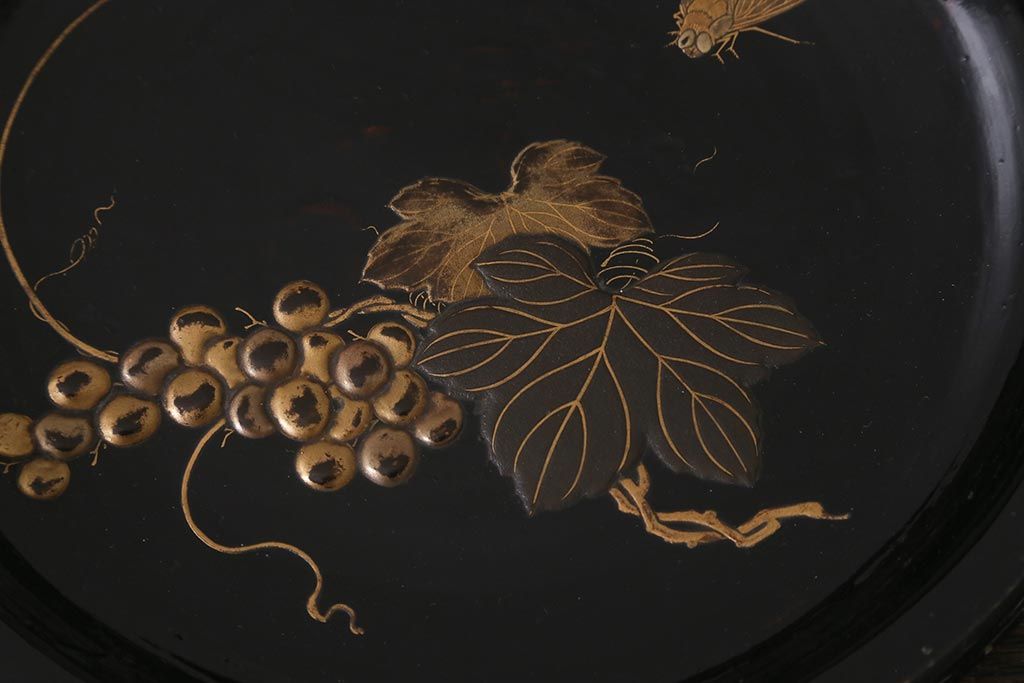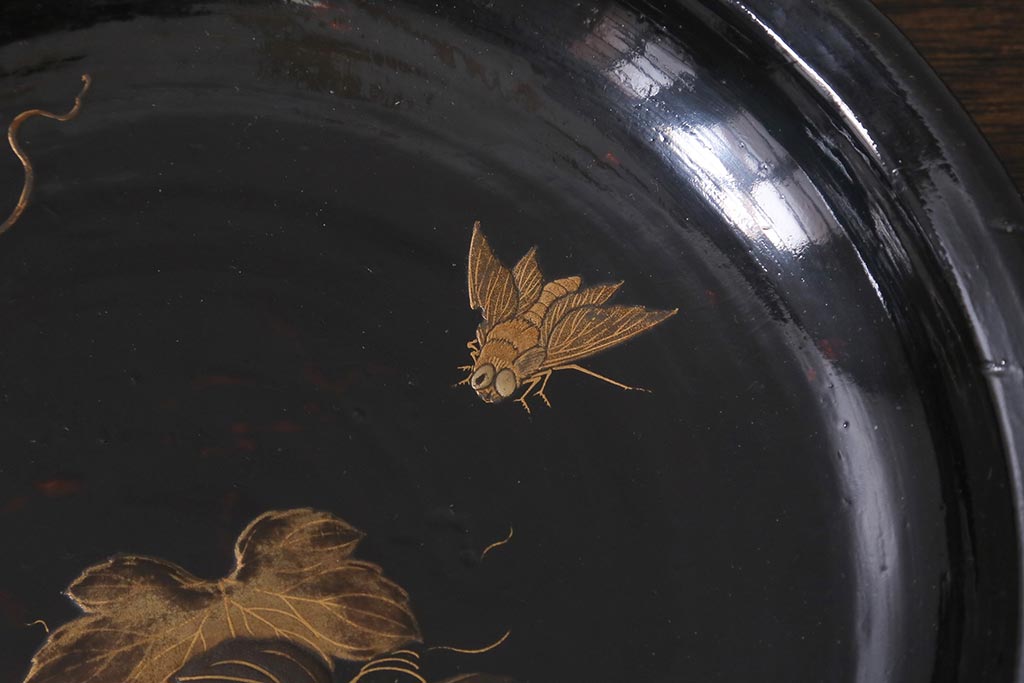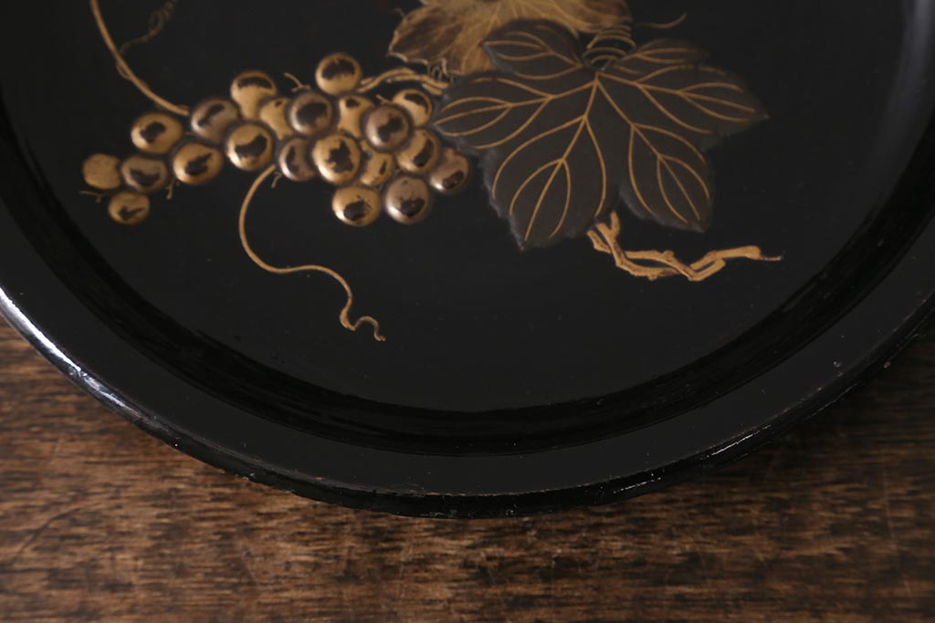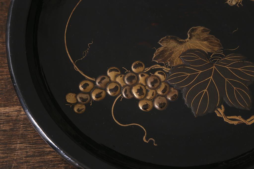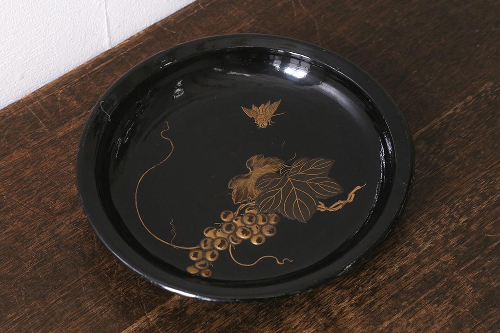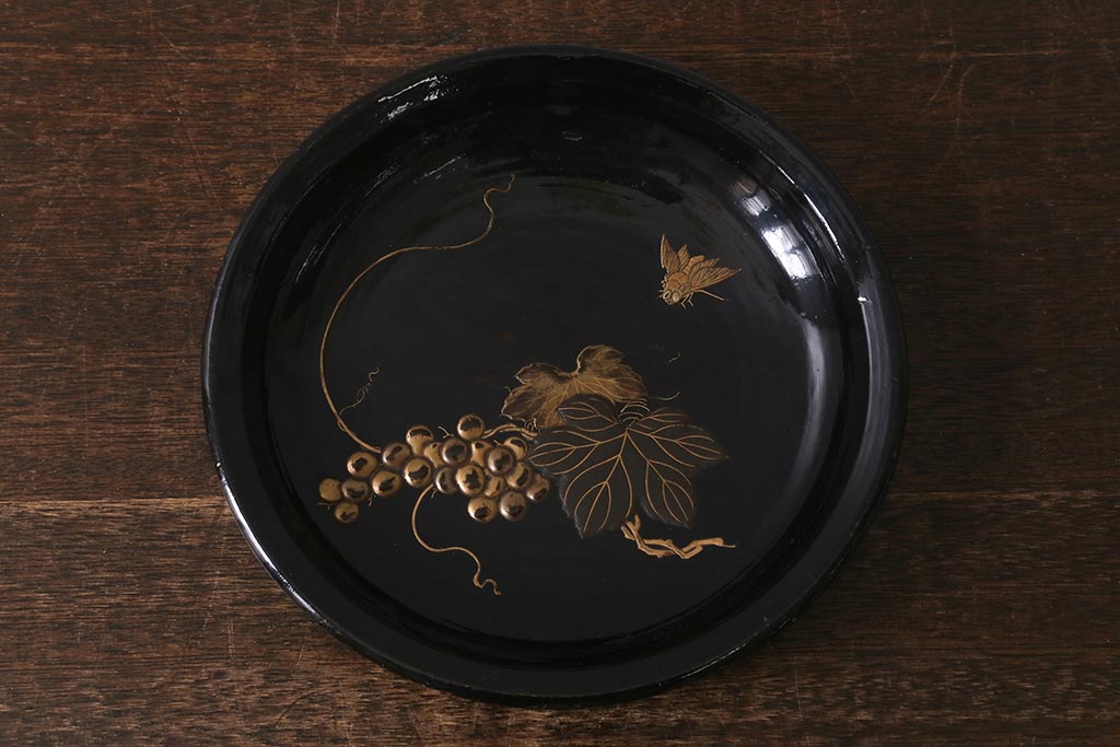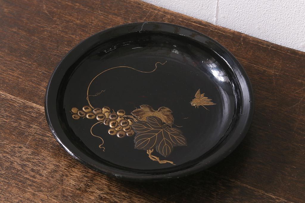 アンティーク雑貨 明治大正期 葡萄に蝿 蒔絵 木製菓子皿(漆器)(R-042864)