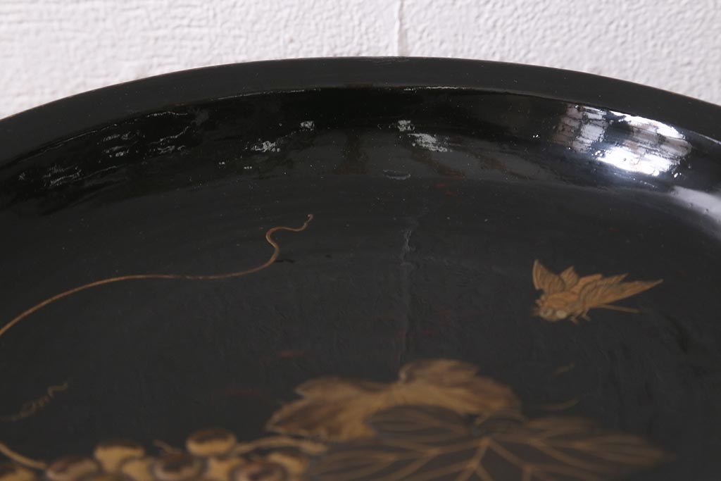 ラフジュ工房> 骨董・美術品> 骨董-漆器 > アンティーク雑貨 明治大正期 葡萄に蝿 蒔絵 木製菓子皿(漆器)(R-042864)