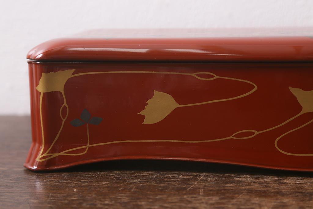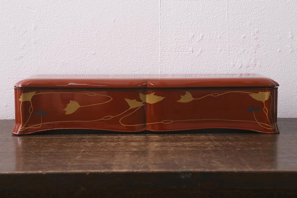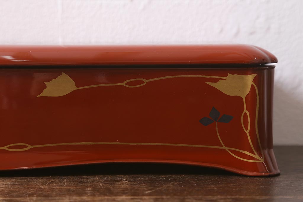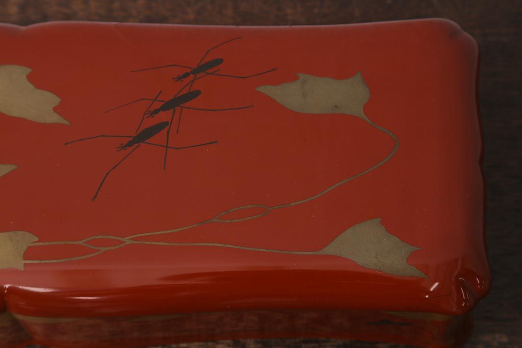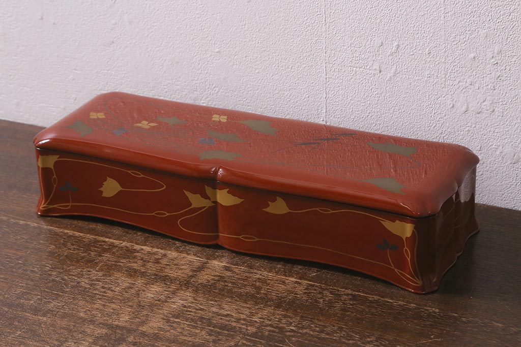 ラフジュ工房> 骨董・美術品> 骨董-漆器 > アンティーク雑貨 大正昭和初期 あめんぼう蒔絵 木製 文箱(漆器、収納箱)(R-042866)