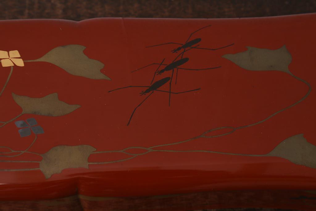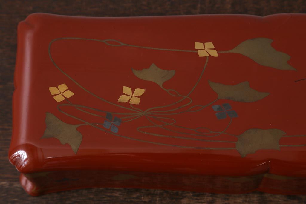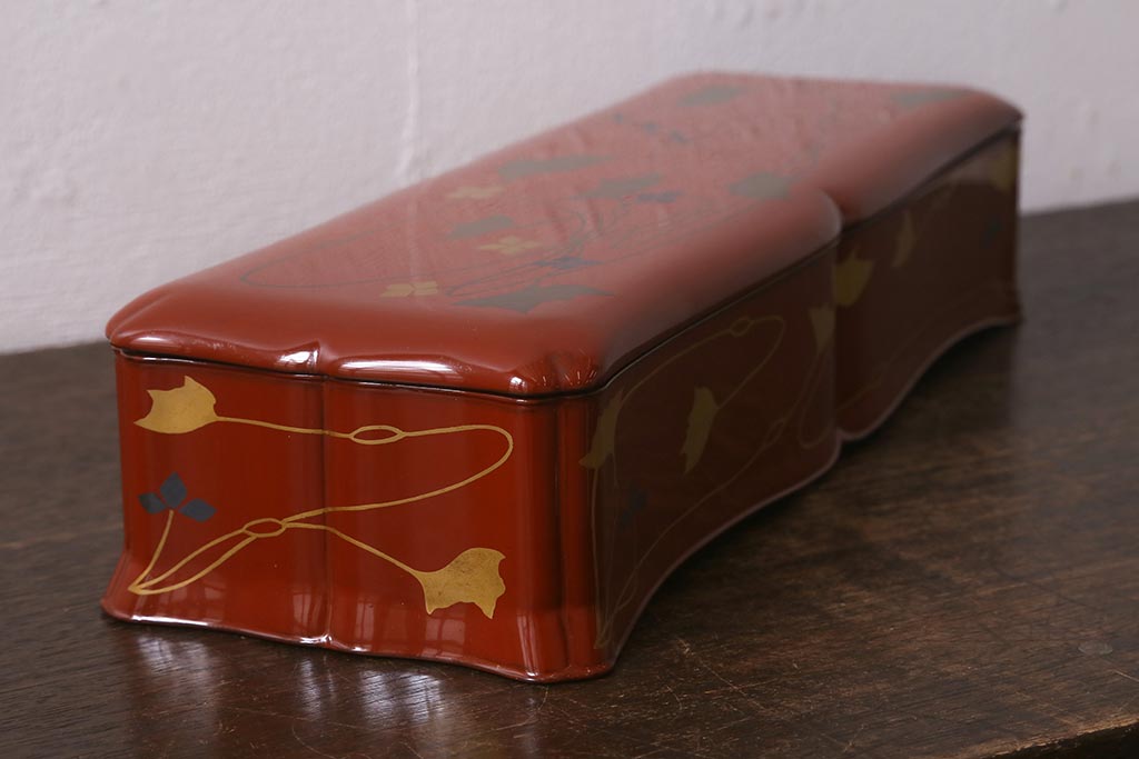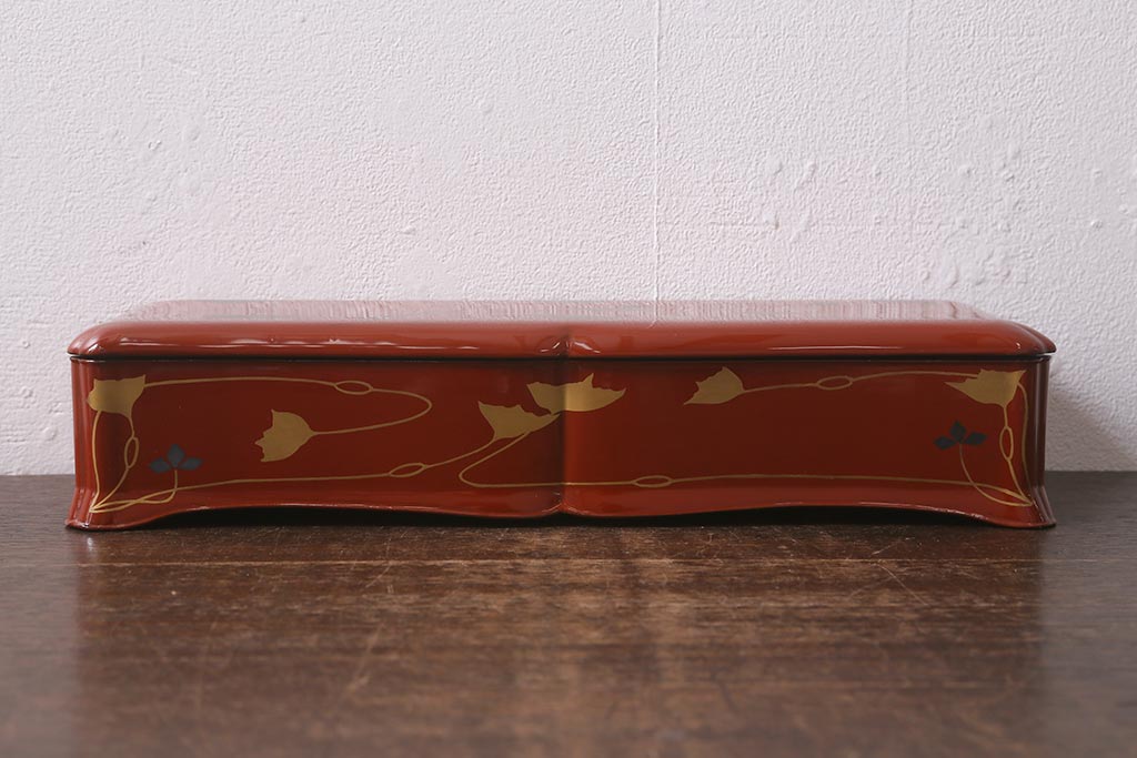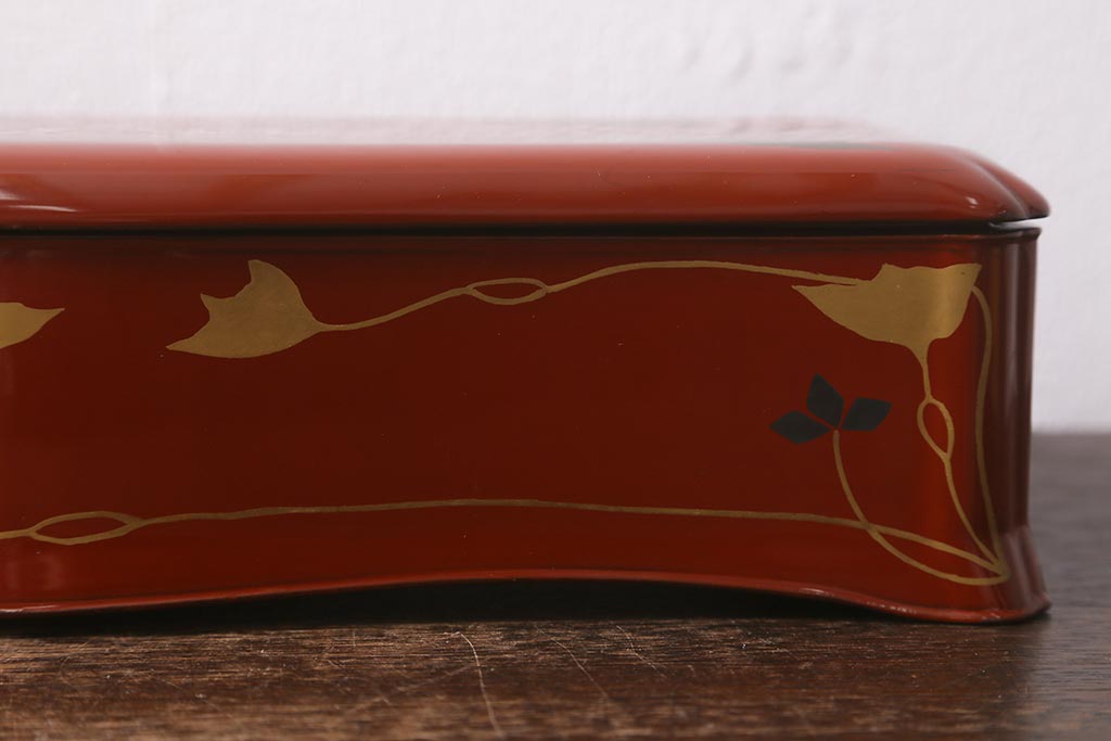 ラフジュ工房> 骨董・美術品> 骨董-漆器 > アンティーク雑貨 大正昭和初期 あめんぼう蒔絵 木製 文箱(漆器、収納箱)(R-042866)