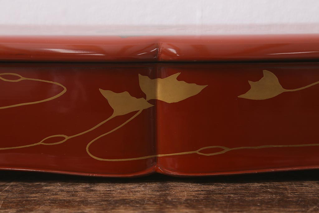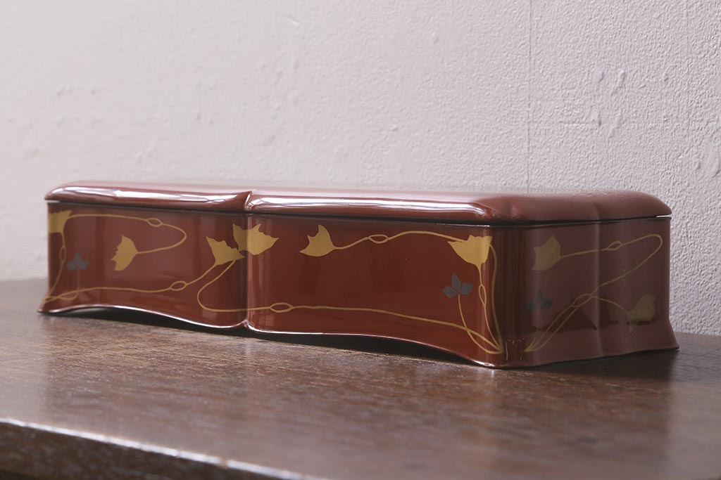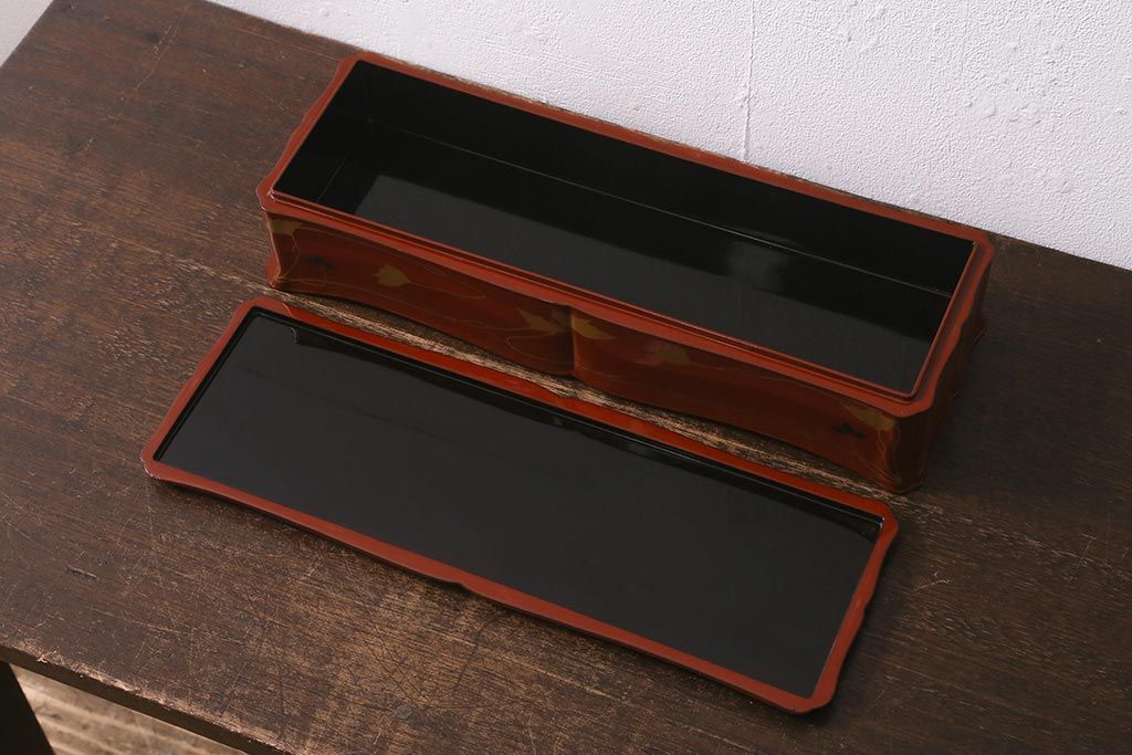 アンティーク雑貨 大正昭和初期 あめんぼう蒔絵 木製 文箱(漆器、収納箱)(R-042866)