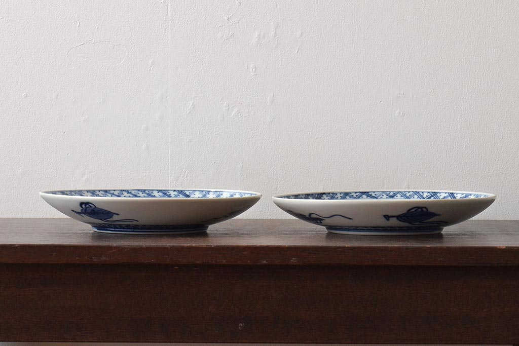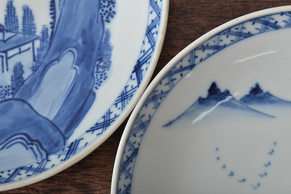 ラフジュ工房> 和食器・茶道具 > アンティーク雑貨 明治期 山水図 九谷 8寸染付皿2枚セット(和食器)(R-043223)
