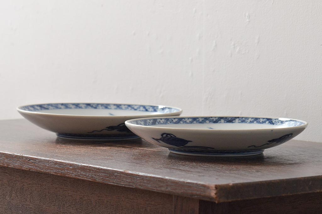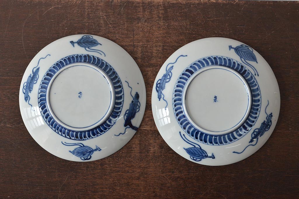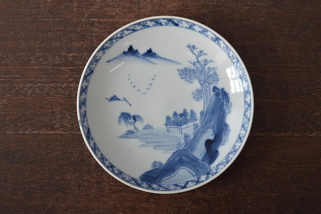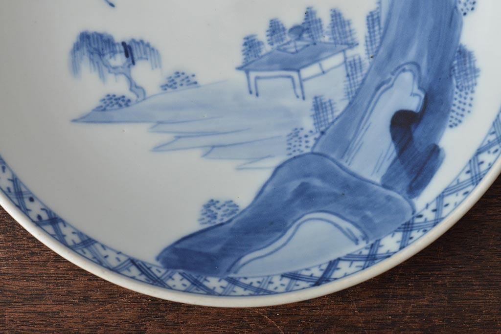 ラフジュ工房> 和食器・茶道具> 皿 > アンティーク雑貨 明治期 山水図 九谷 8寸染付皿2枚セット(和食器)(R-043223)