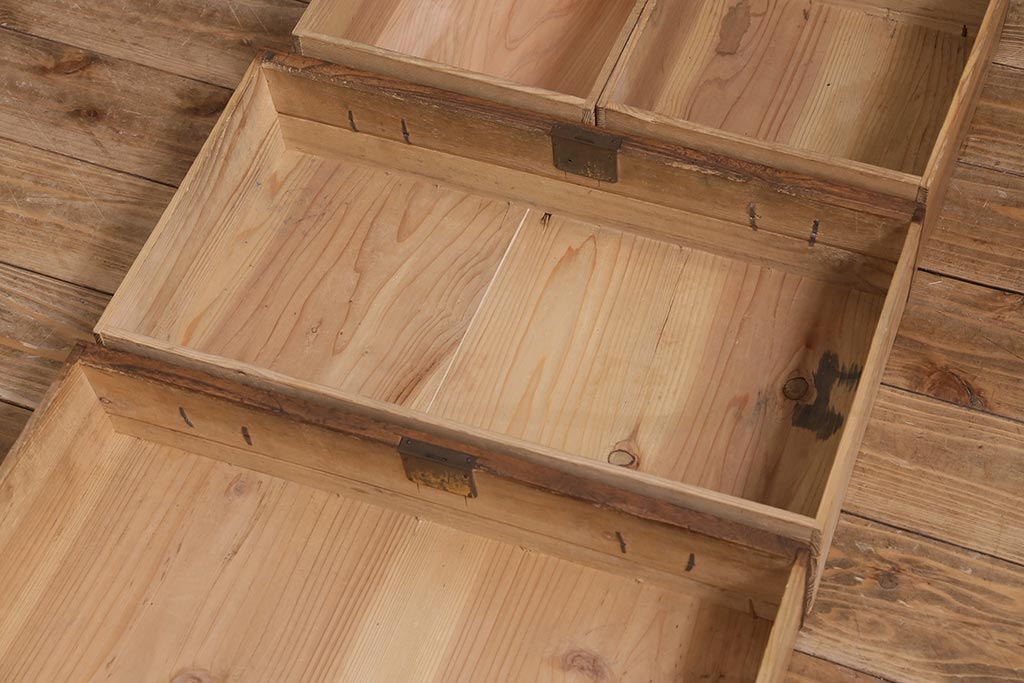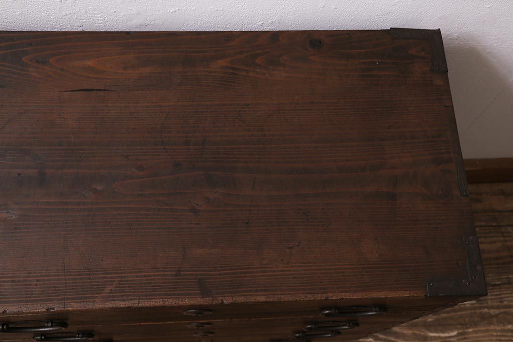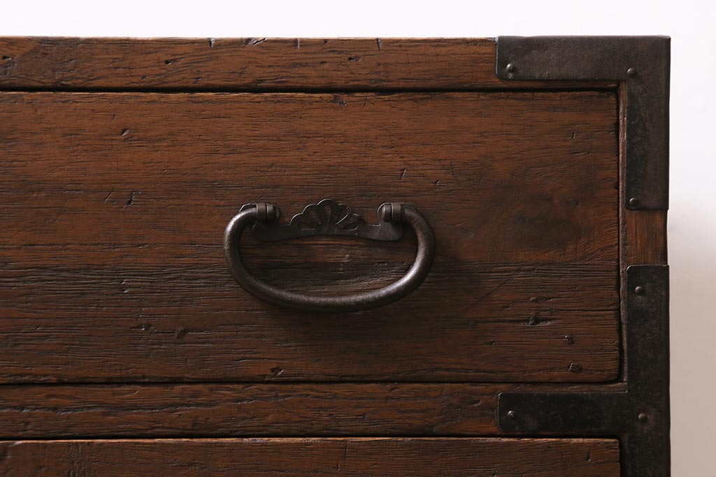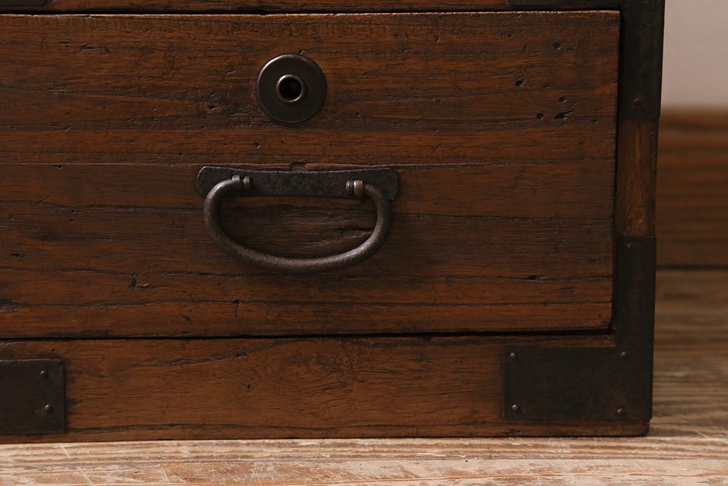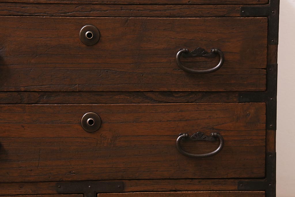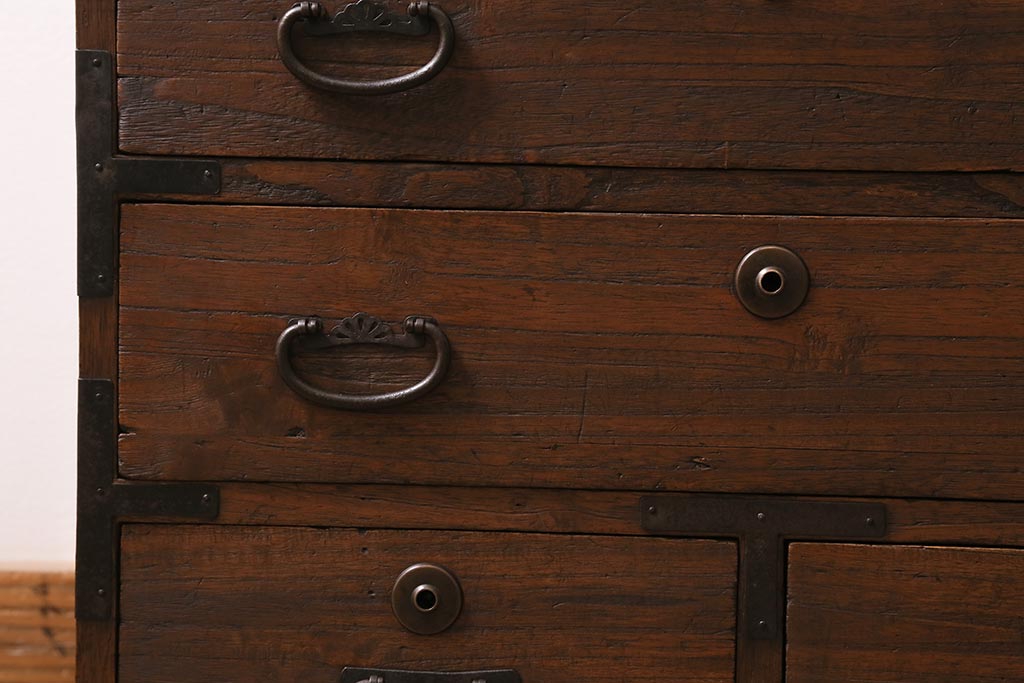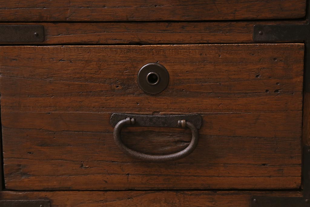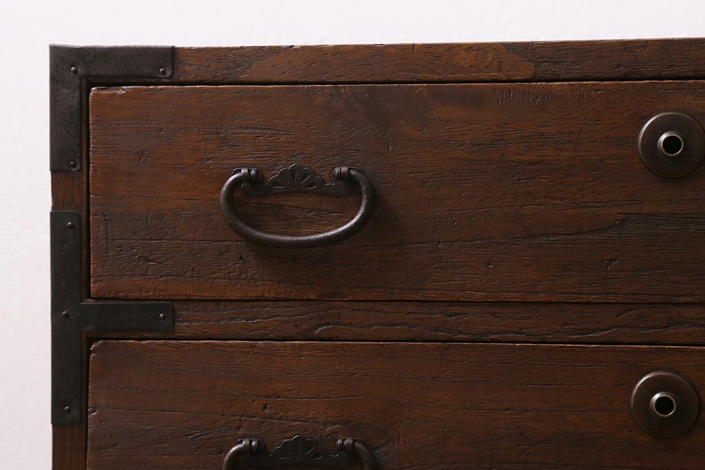 小物収納・トランク> 小引き出し > アンティーク家具 昭和初期 前面桐材 古い木の質感が味わい深い小タンス(引き出し、時代箪笥、整理タンス)(R-043321)