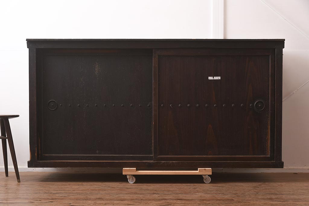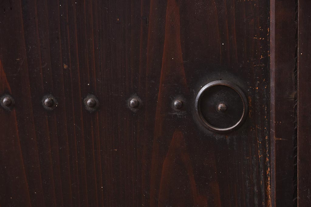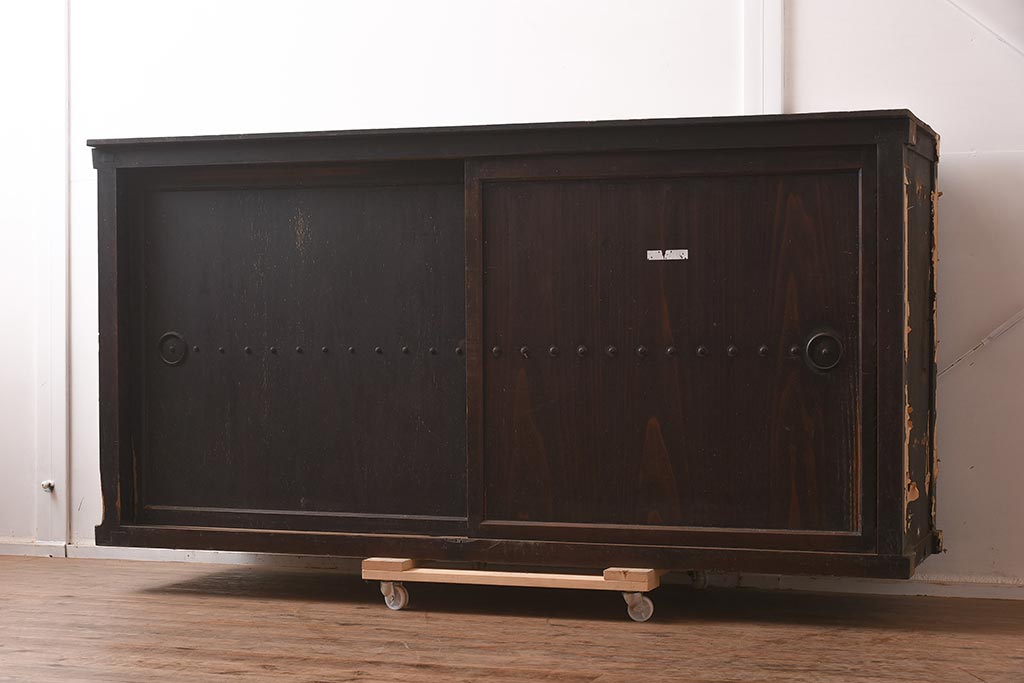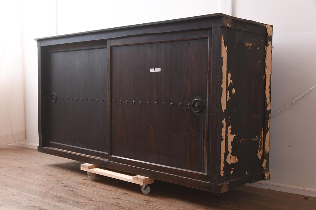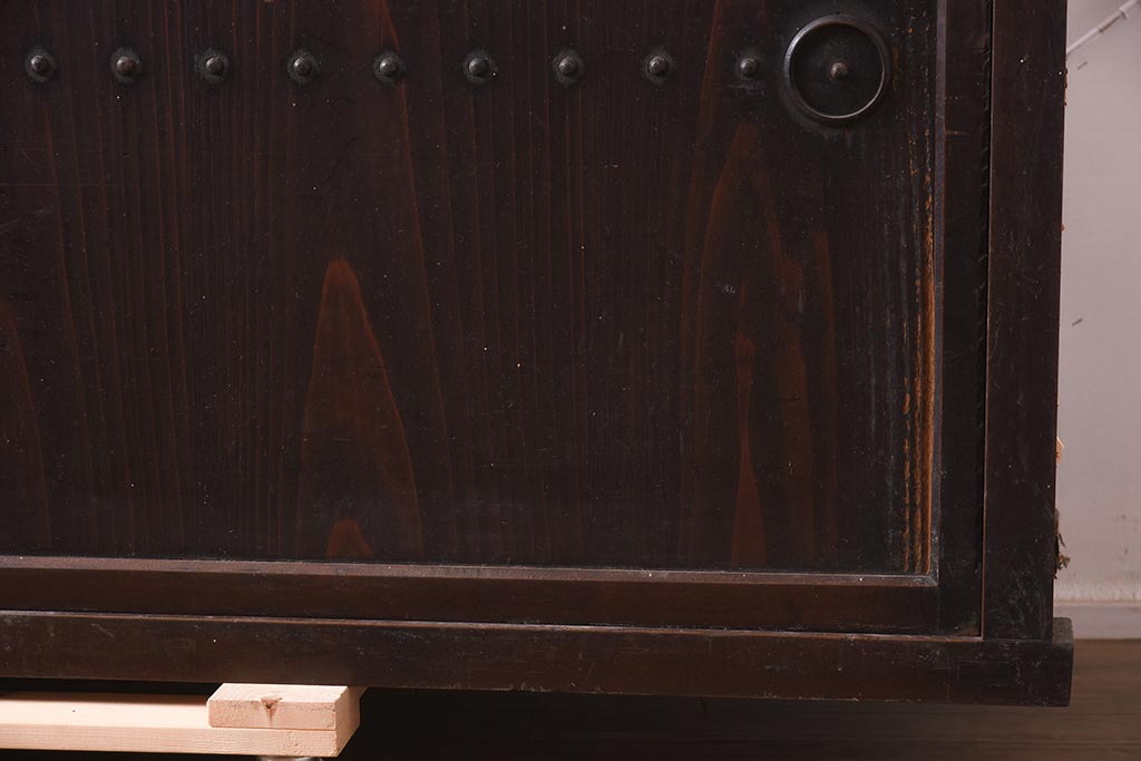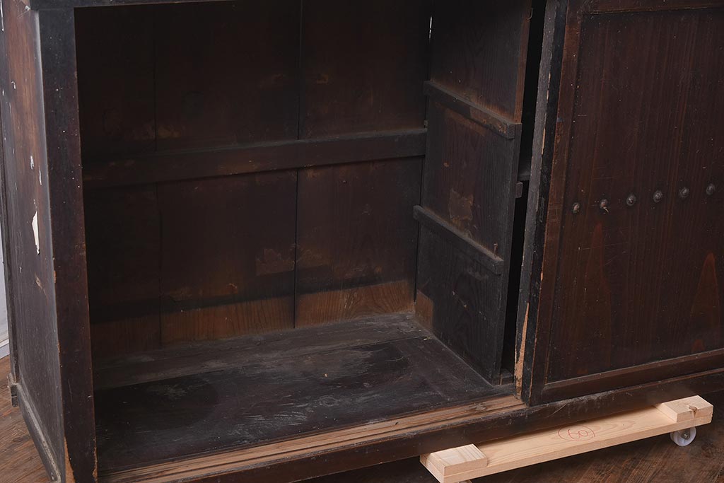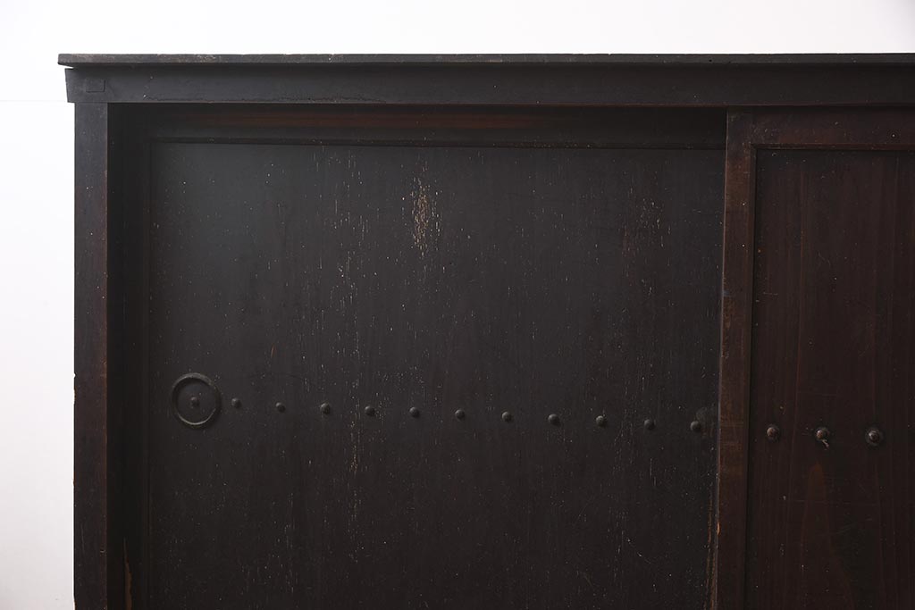 和箪笥 > アンティーク家具 ヒノキ材 鋲が素敵な引き戸タイプの水屋サイドボード(戸棚、収納棚、キャビネット)(R-043205)