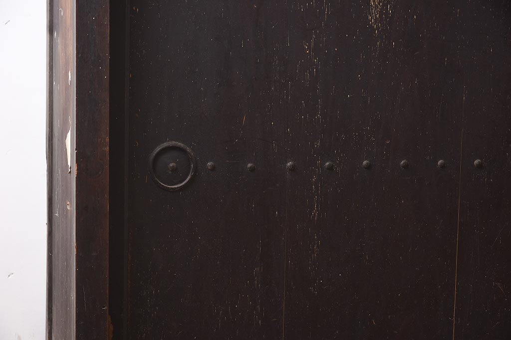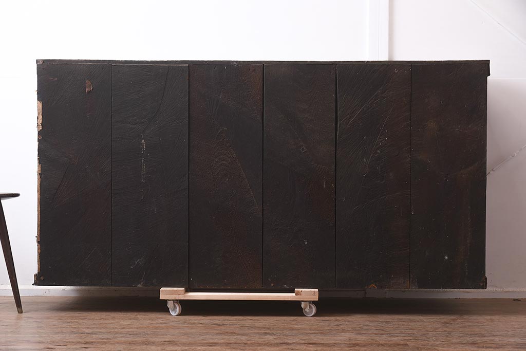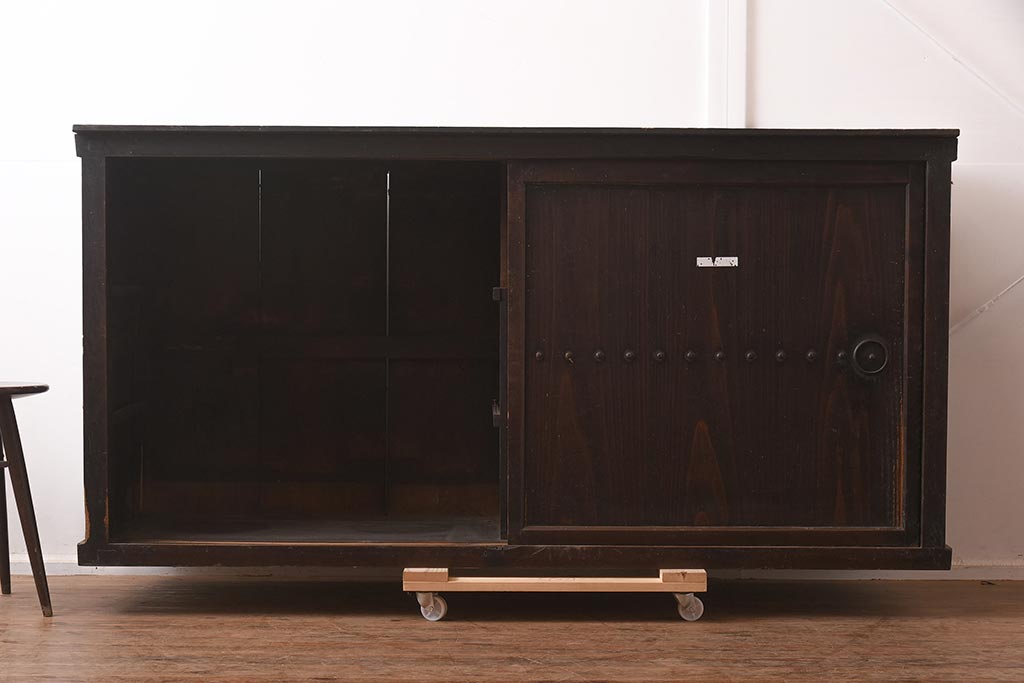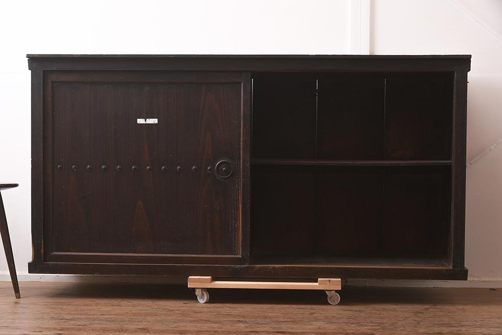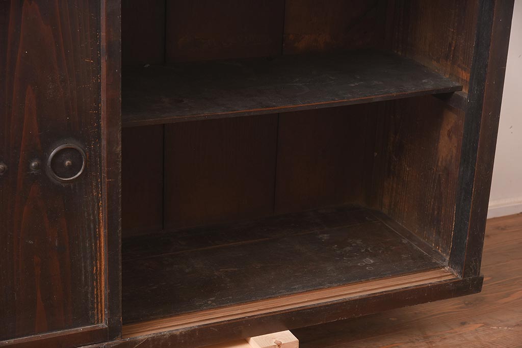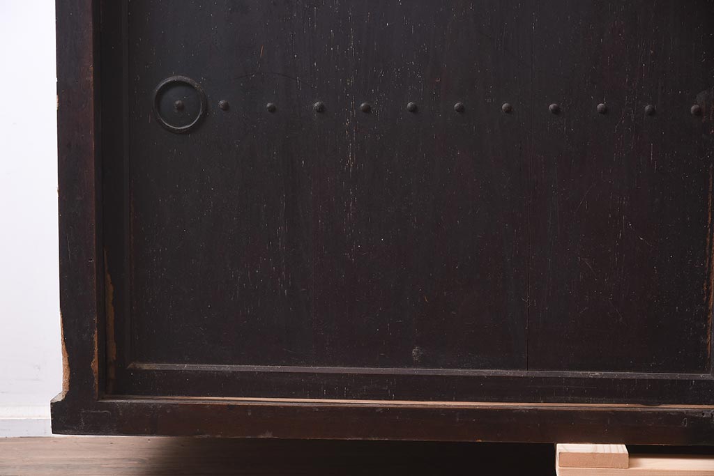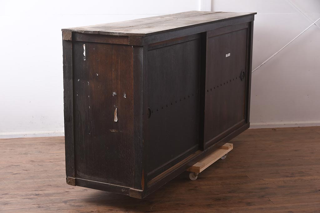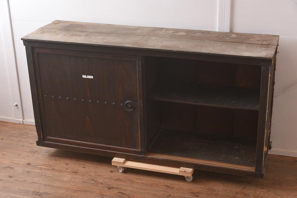 和箪笥 > アンティーク家具 ヒノキ材 鋲が素敵な引き戸タイプの水屋サイドボード(戸棚、収納棚、キャビネット)(R-043205)
