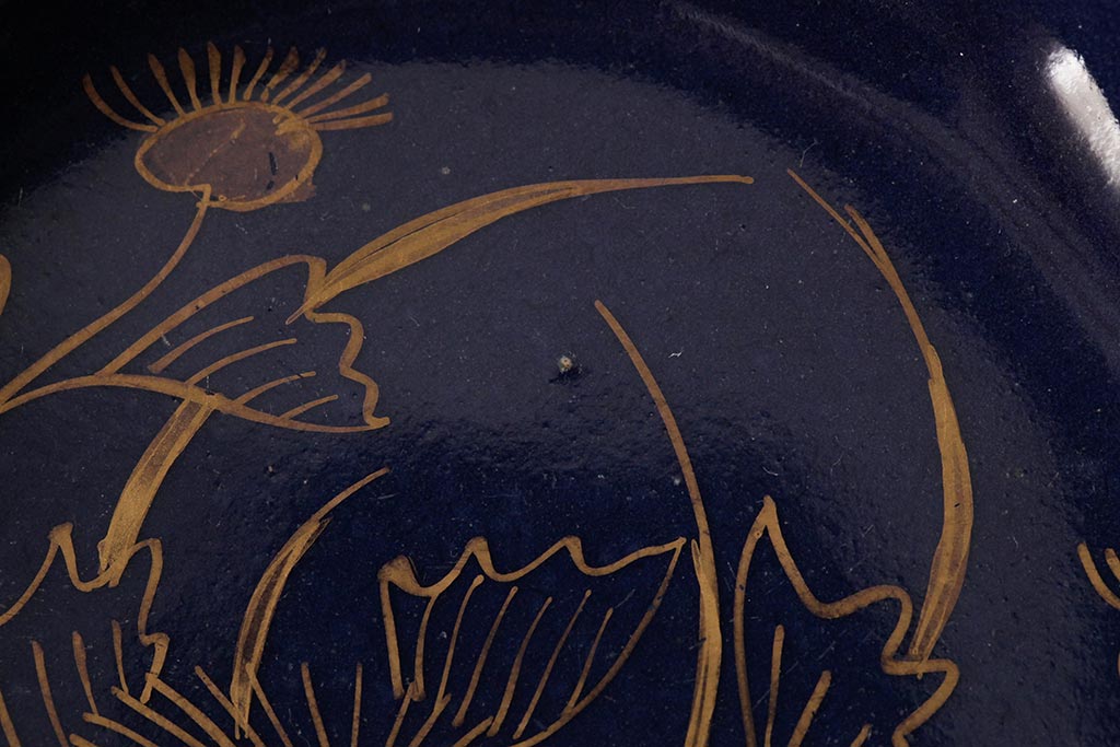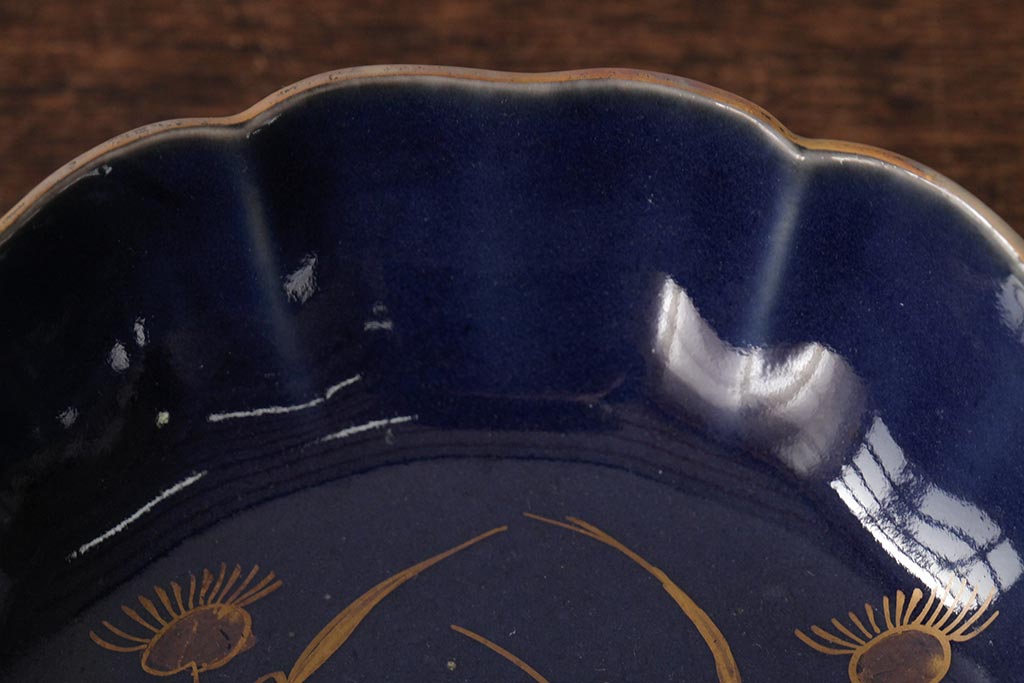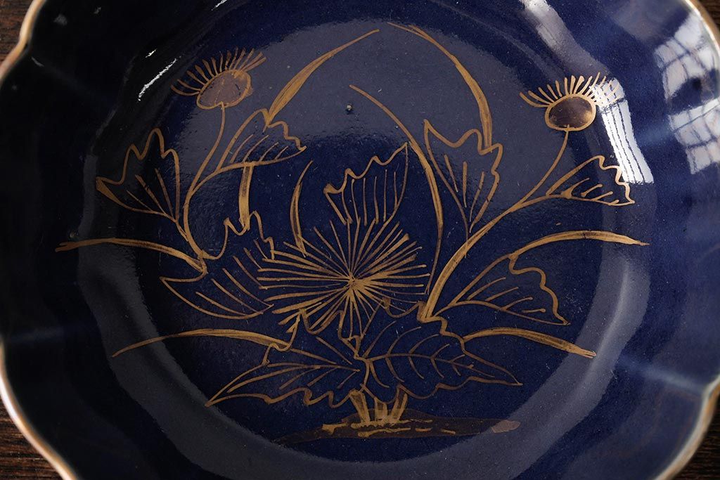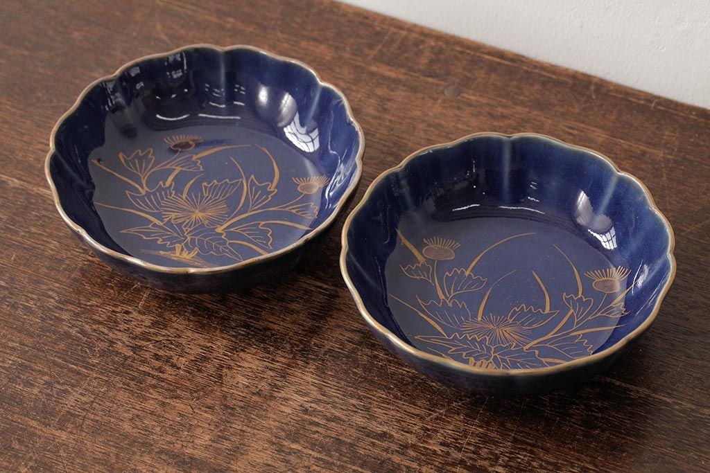 ラフジュ工房> 和食器・茶道具> 皿 > アンティーク雑貨 江戸期 古伊万里 瑠璃釉金彩花文なます皿2枚(中皿、和食器)(R-042826)