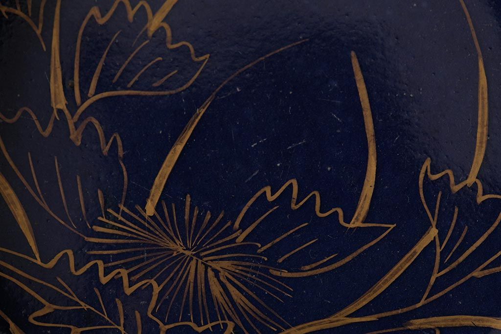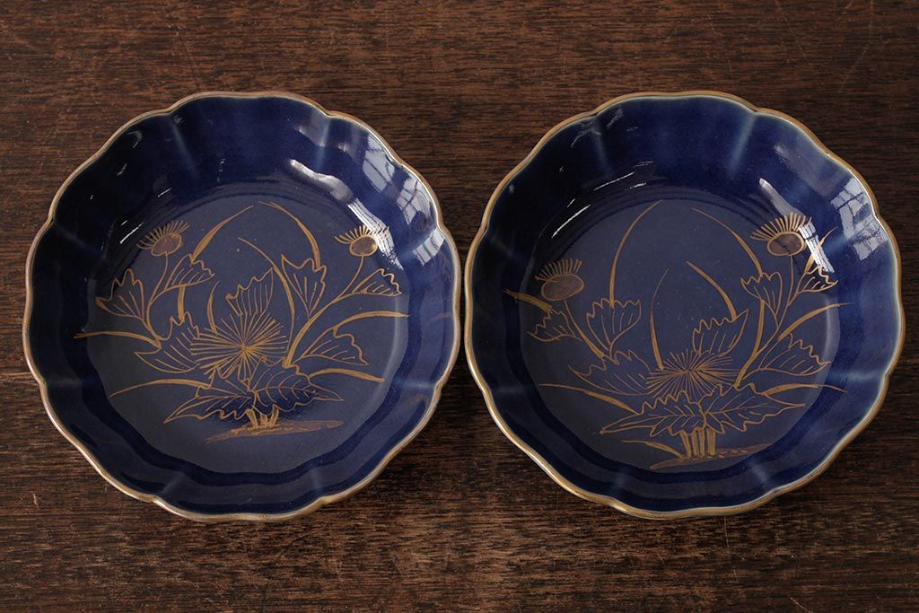 アンティーク雑貨 江戸期 古伊万里 瑠璃釉金彩花文なます皿2枚(中皿、和食器)(R-042826)