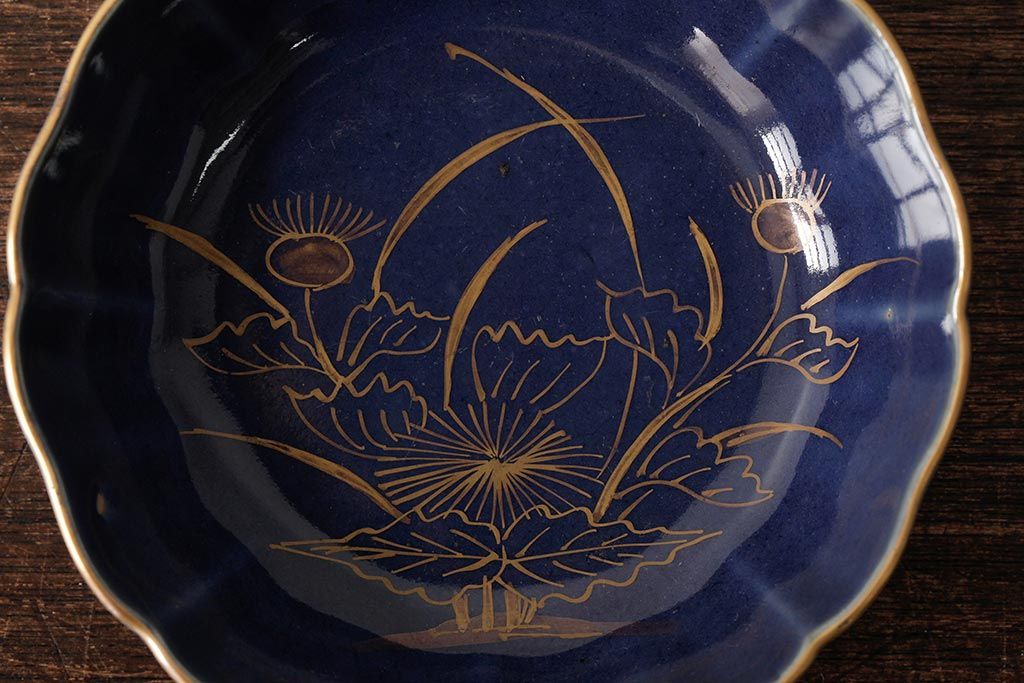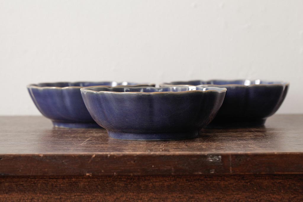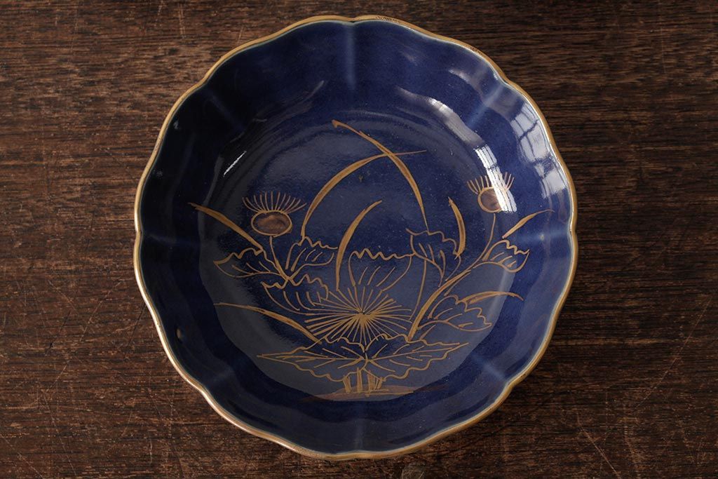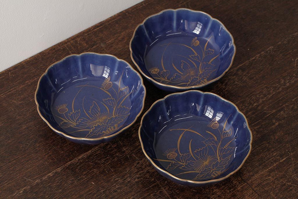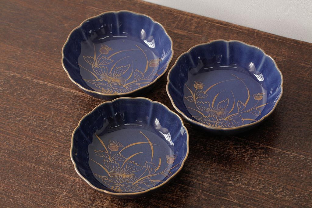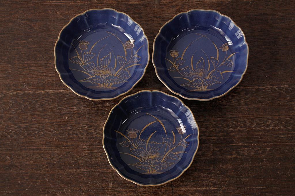 ラフジュ工房> 和食器・茶道具> 皿 > アンティーク雑貨 江戸期 古伊万里 瑠璃釉金彩花文なます皿3枚(中皿、和食器)(R-042829)