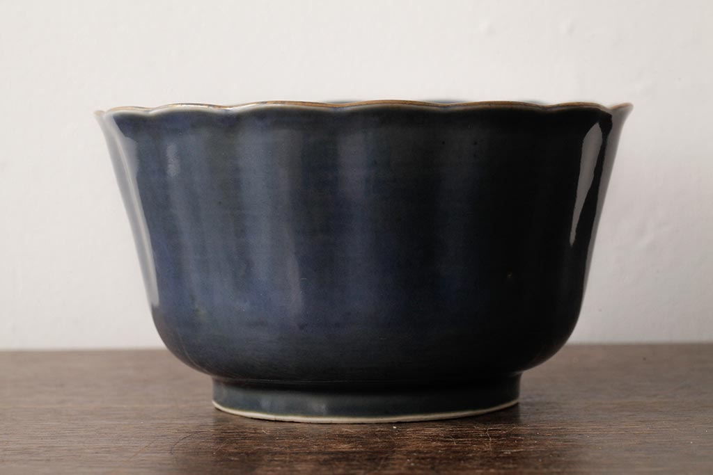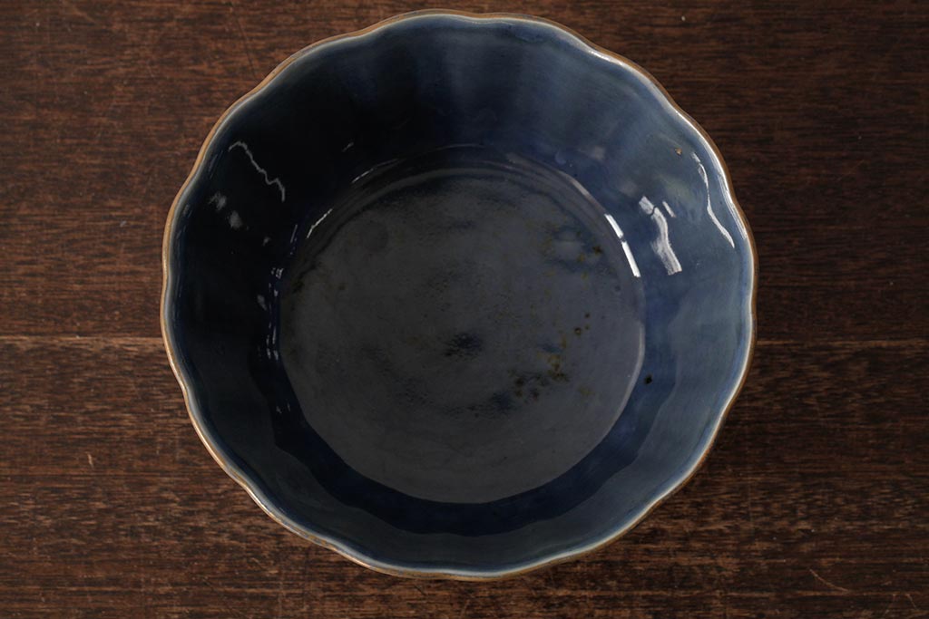 ラフジュ工房> 和食器・茶道具> 鉢 > アンティーク雑貨 江戸期 古伊万里 瑠璃金輪花深鉢(深皿、和食器)(R-042838)