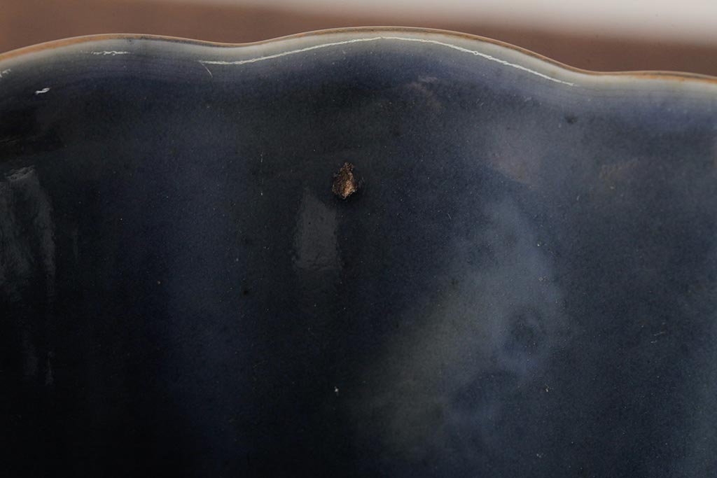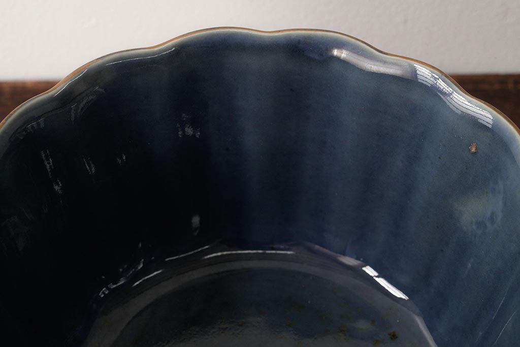 アンティーク雑貨 江戸期 古伊万里 瑠璃金輪花深鉢(深皿、和食器)(R-042838)