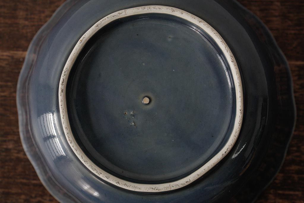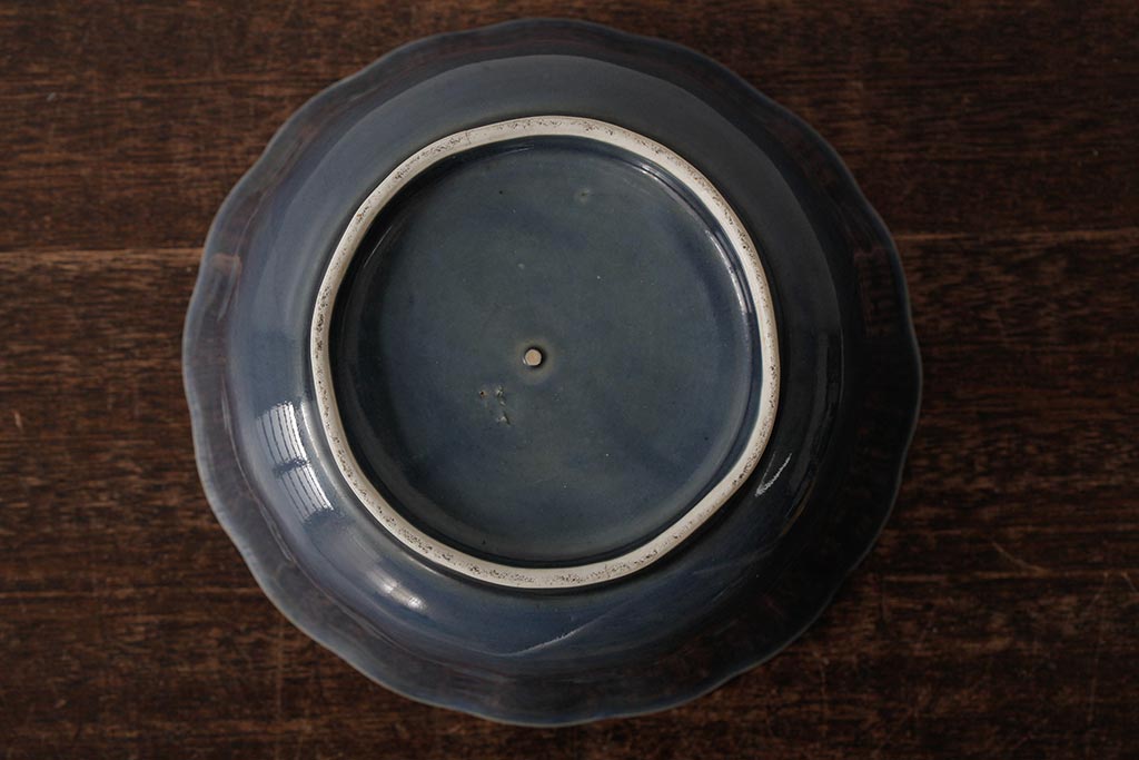 ラフジュ工房> 骨董・美術品> 骨董-陶磁器 > アンティーク雑貨 江戸期 古伊万里 瑠璃金輪花深鉢(深皿、和食器)(R-042838)