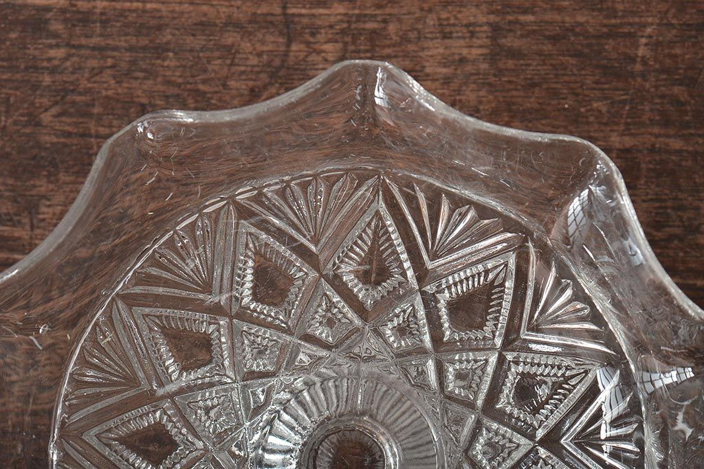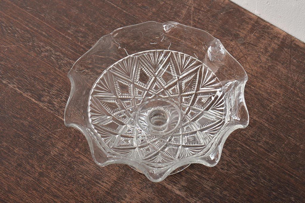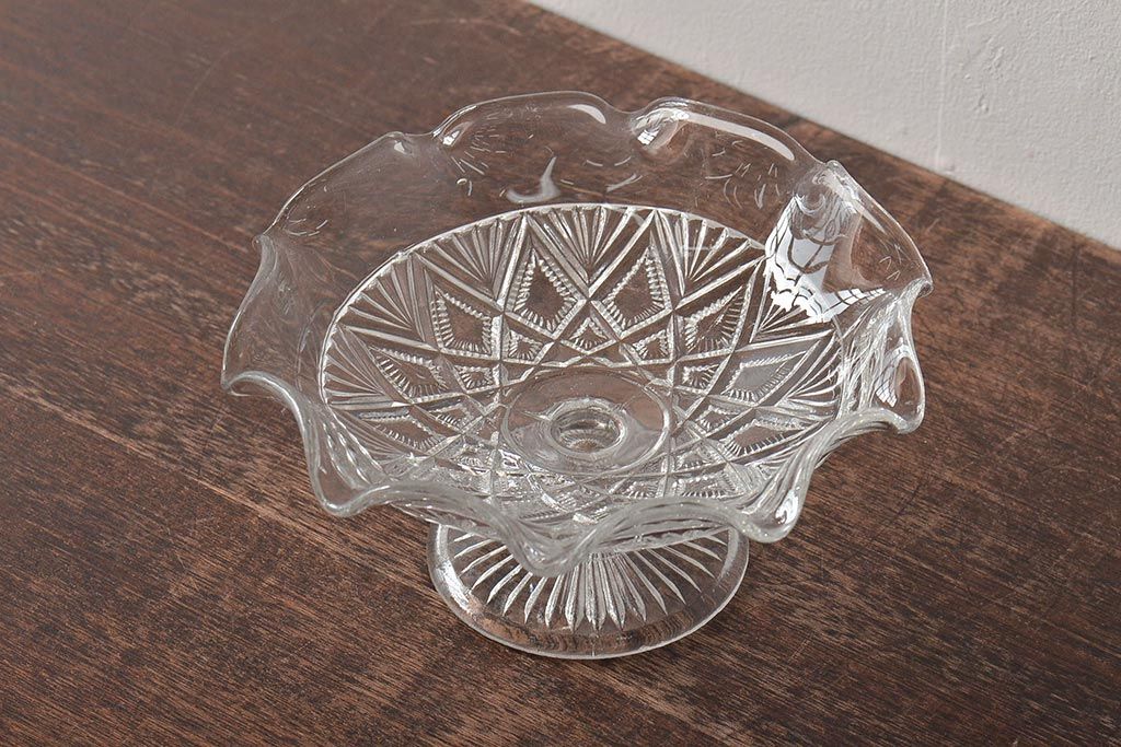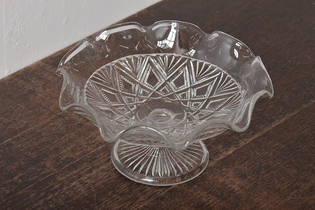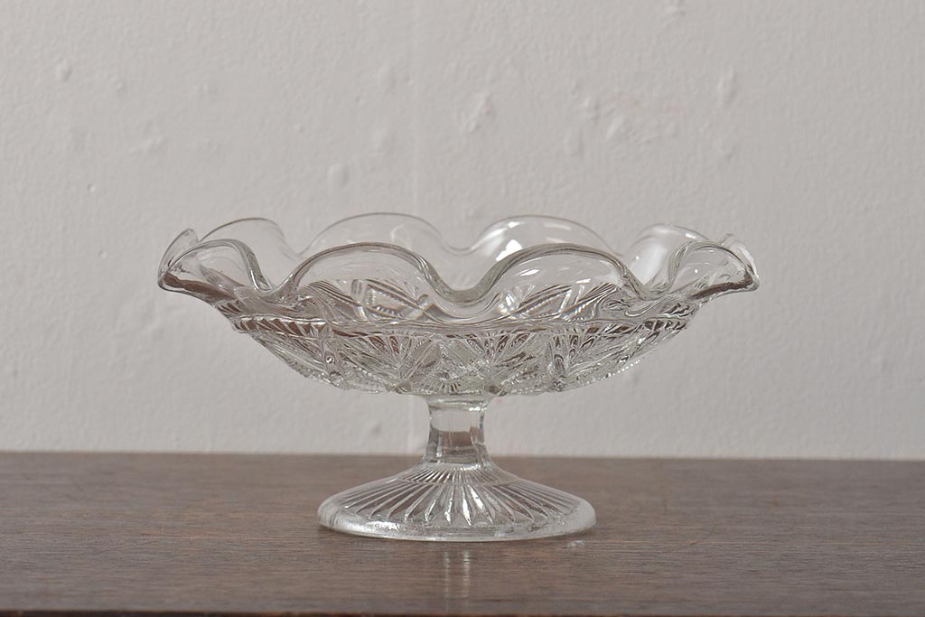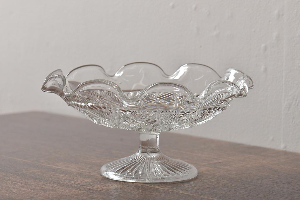 ヴィンテージ雑貨 イギリスビンテージ フリルのガラスコンポート(R-043394)