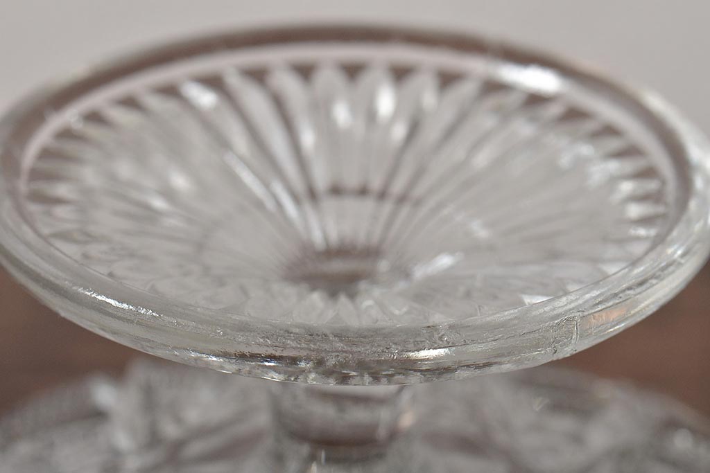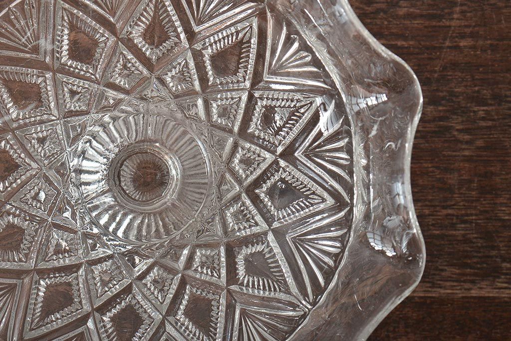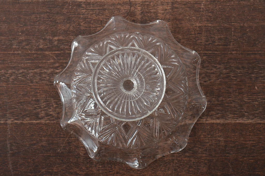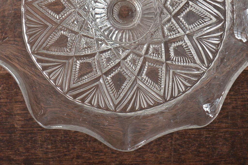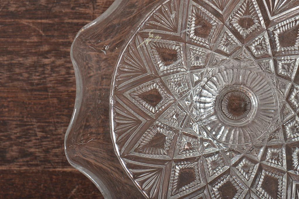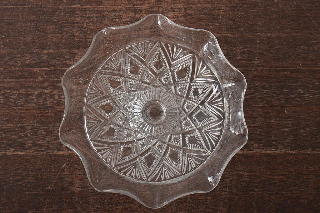 ヴィンテージ雑貨 イギリスビンテージ フリルのガラスコンポート(R-043394)