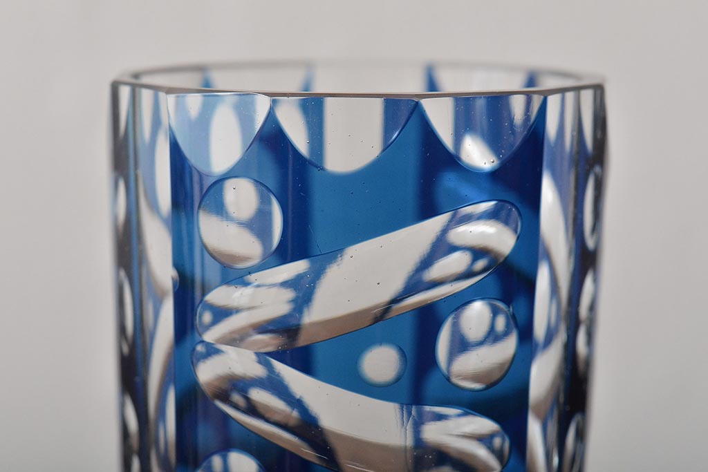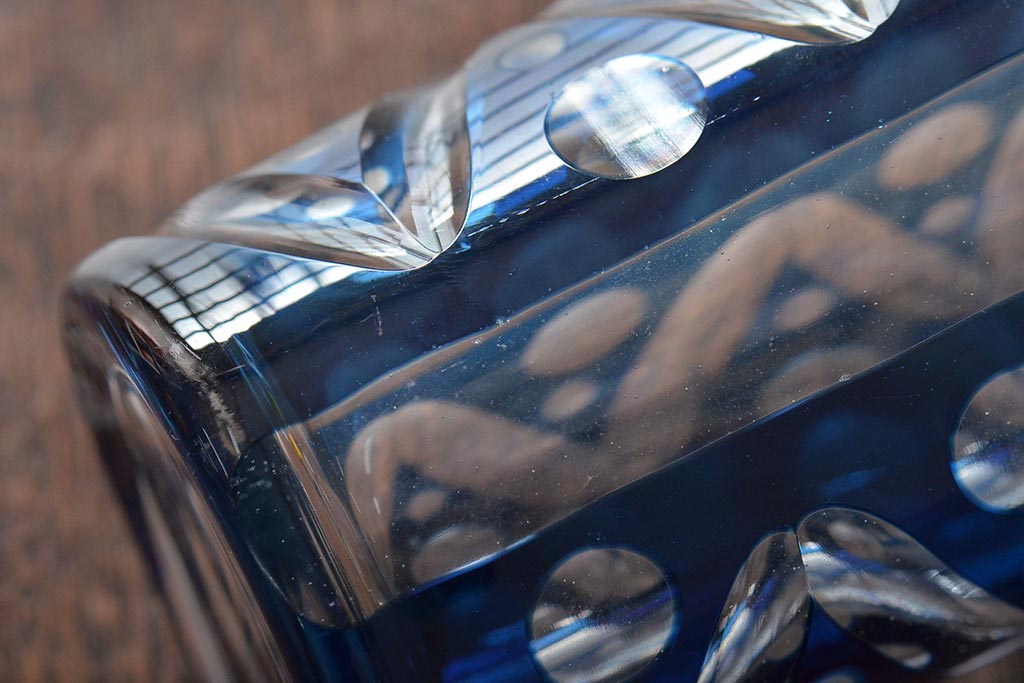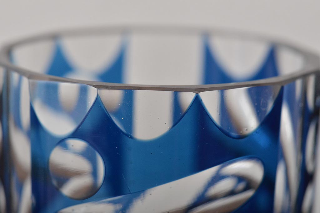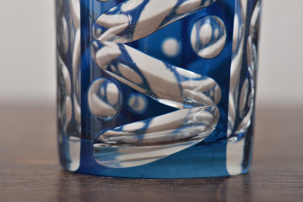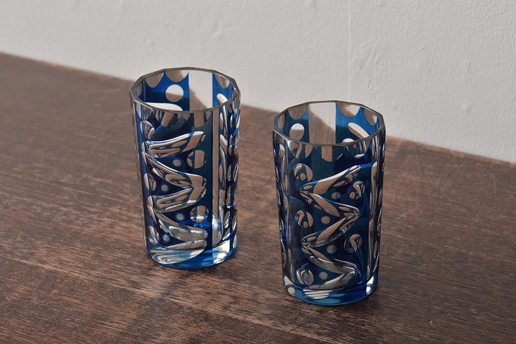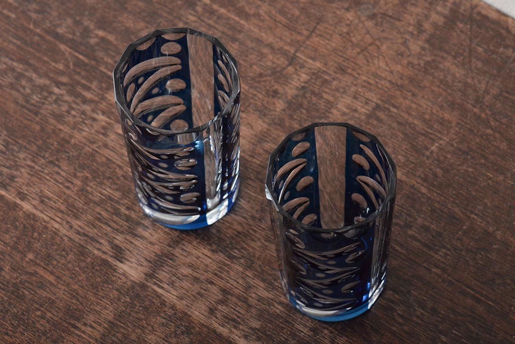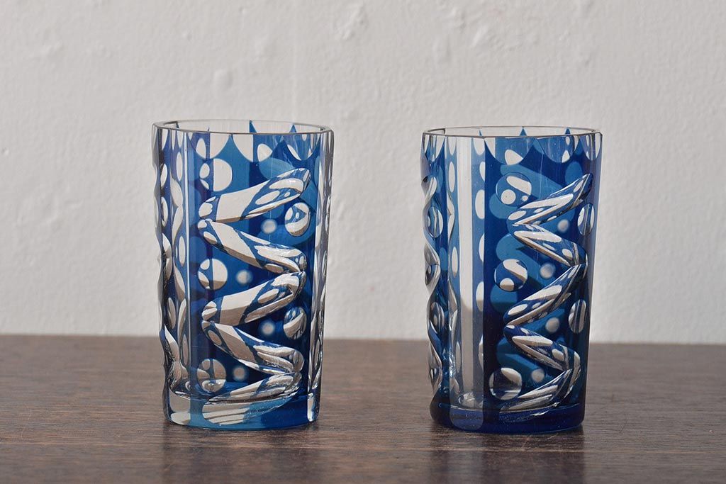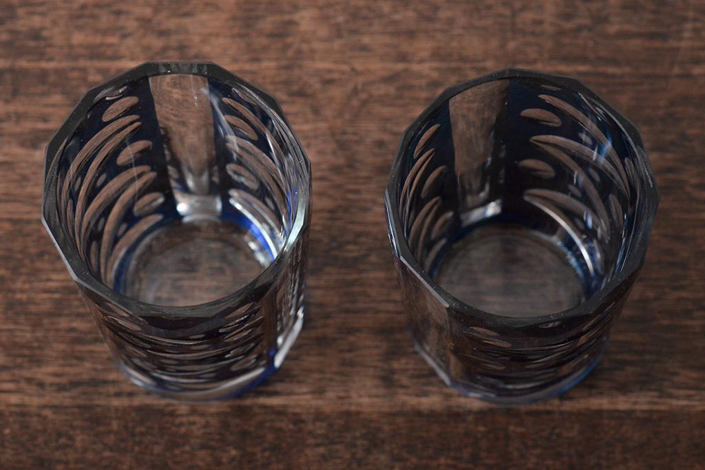 ラフジュ工房> 和食器・茶道具 > アンティーク雑貨 昭和初期 青切子グラス2個セット(コップ、色被せ、和ガラス)(R-043401)