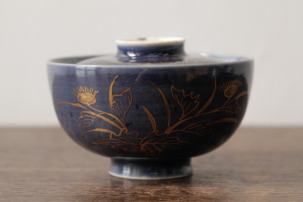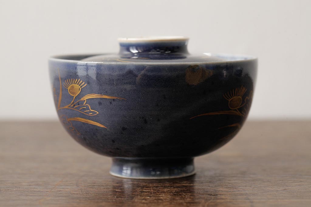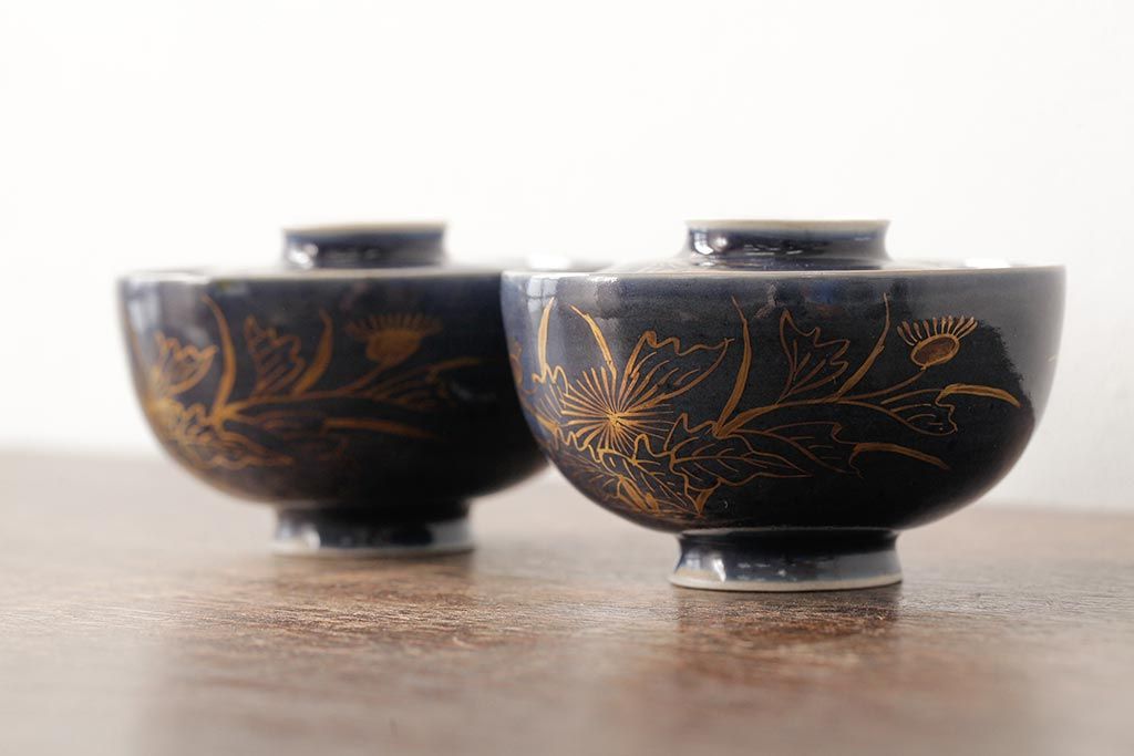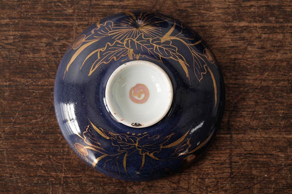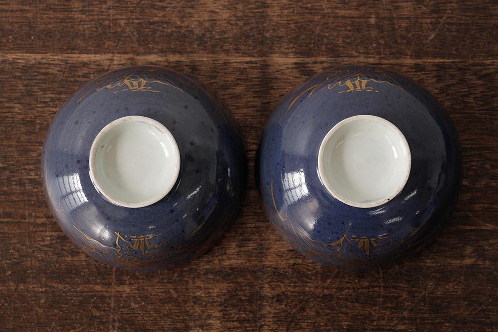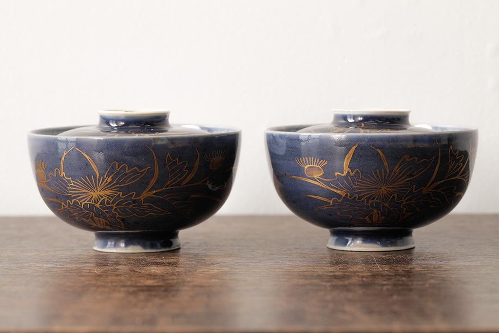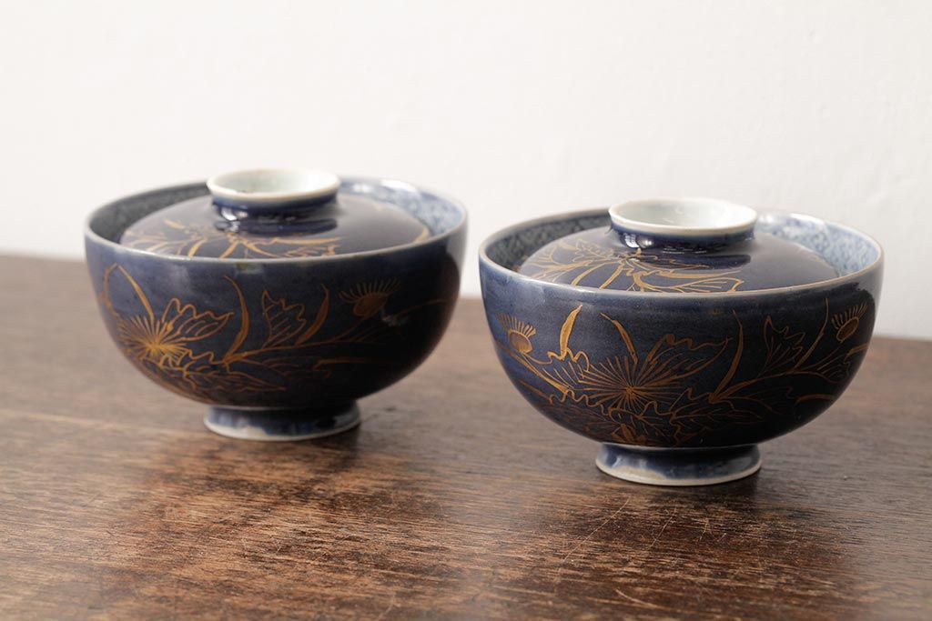 ラフジュ工房> 和食器・茶道具 > 江戸期 古伊万里 瑠璃金彩花文蓋茶碗2客セット(和食器)(R-042744)
