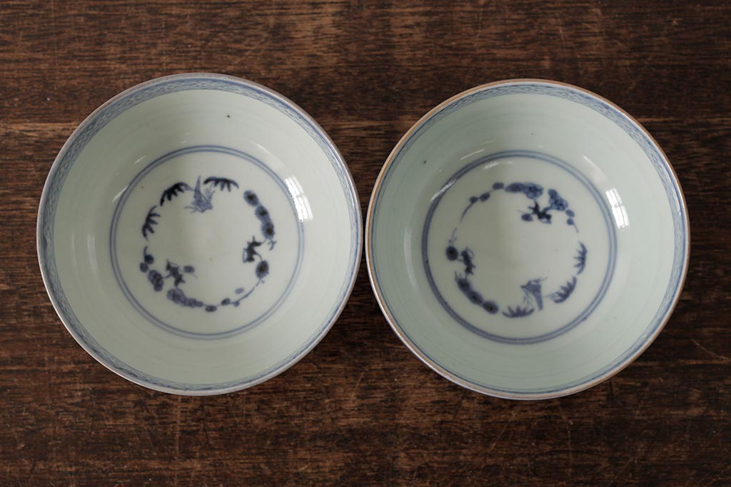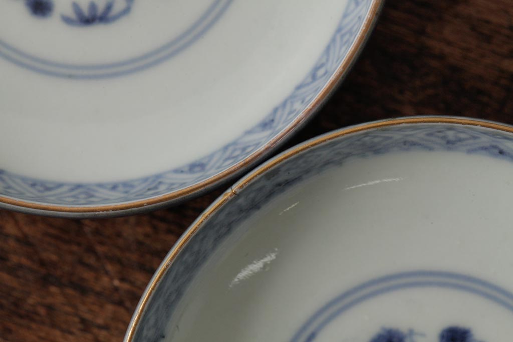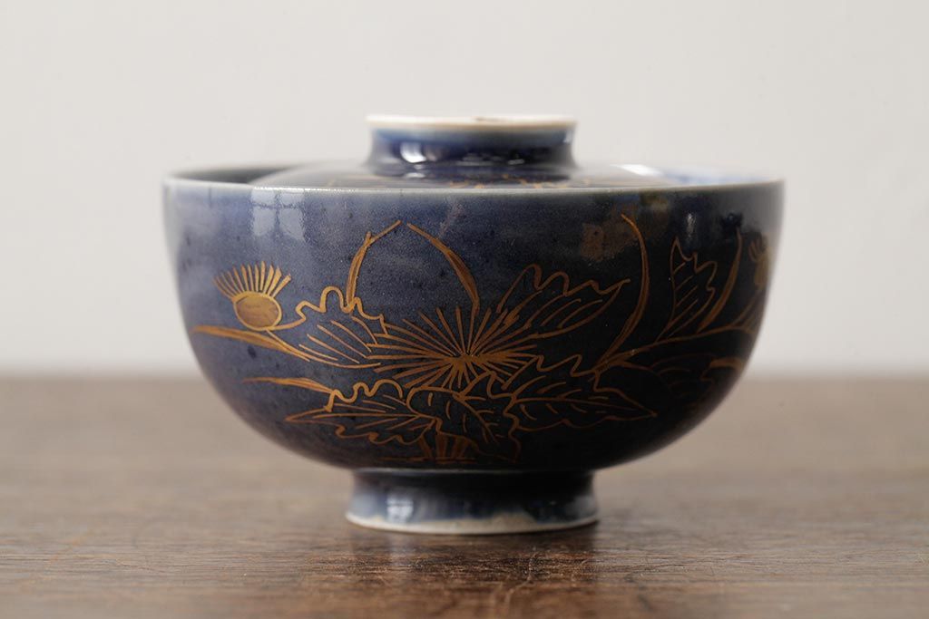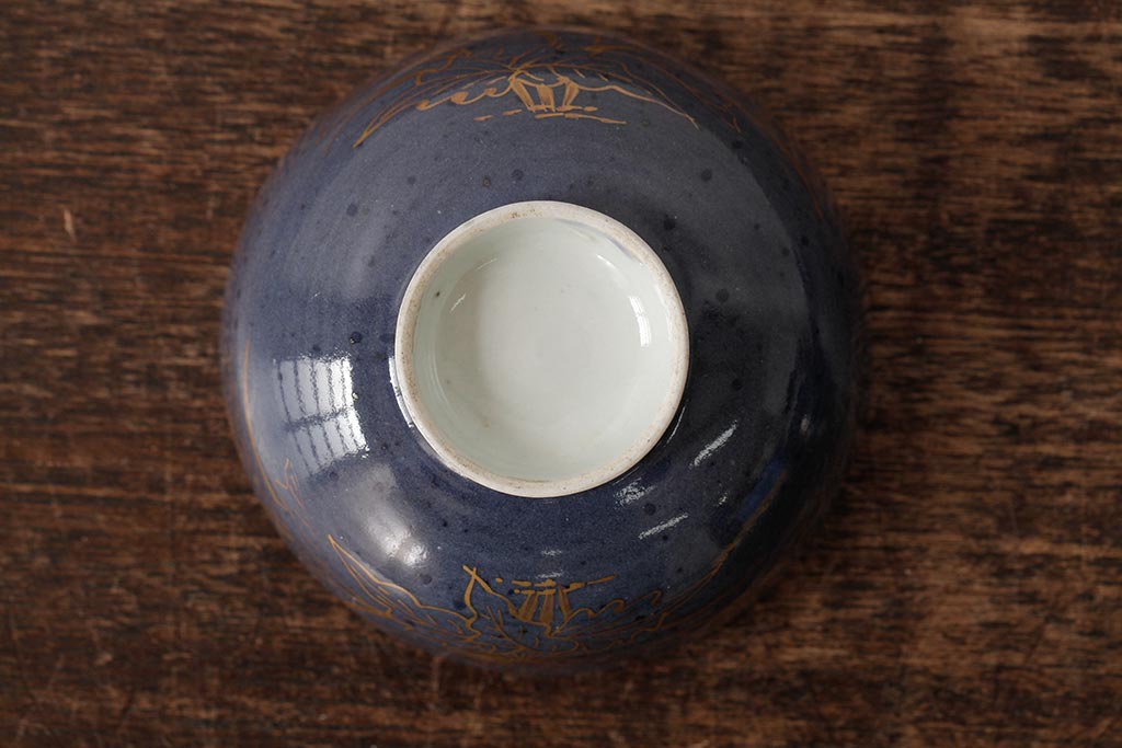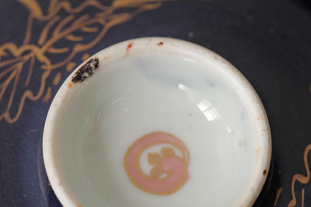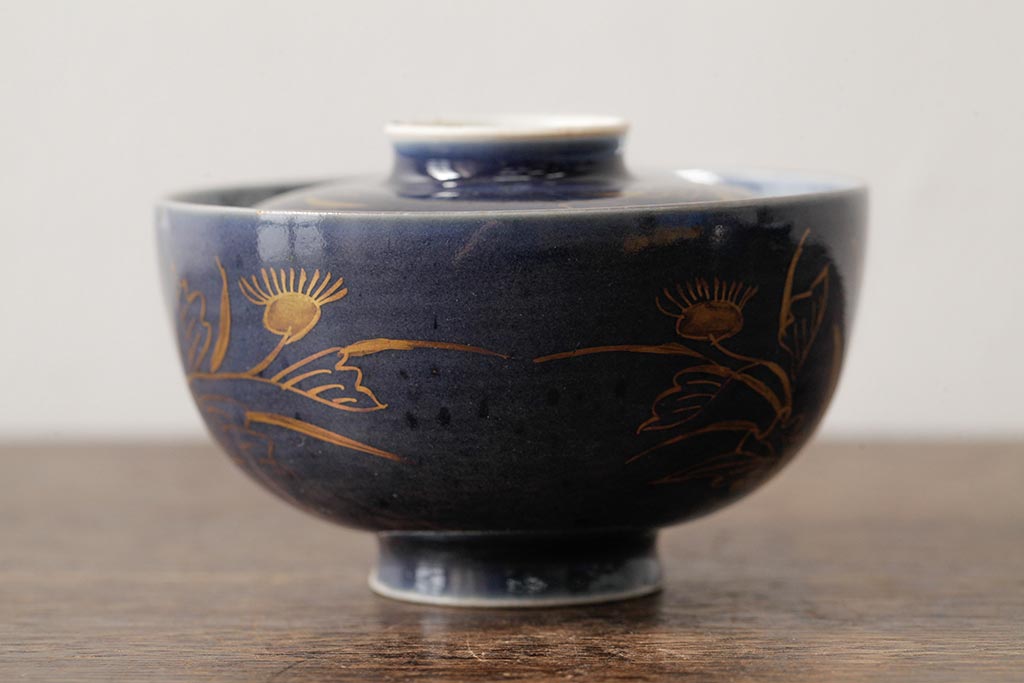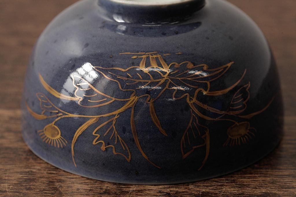 ラフジュ工房> 和食器・茶道具 > 江戸期 古伊万里 瑠璃金彩花文蓋茶碗2客セット(和食器)(R-042744)