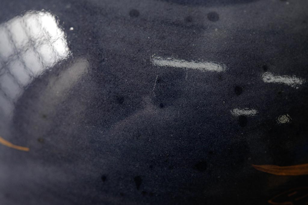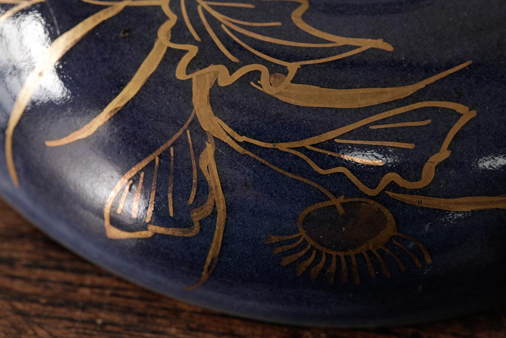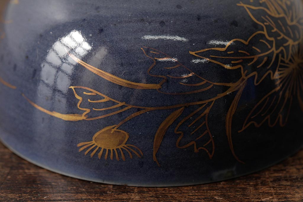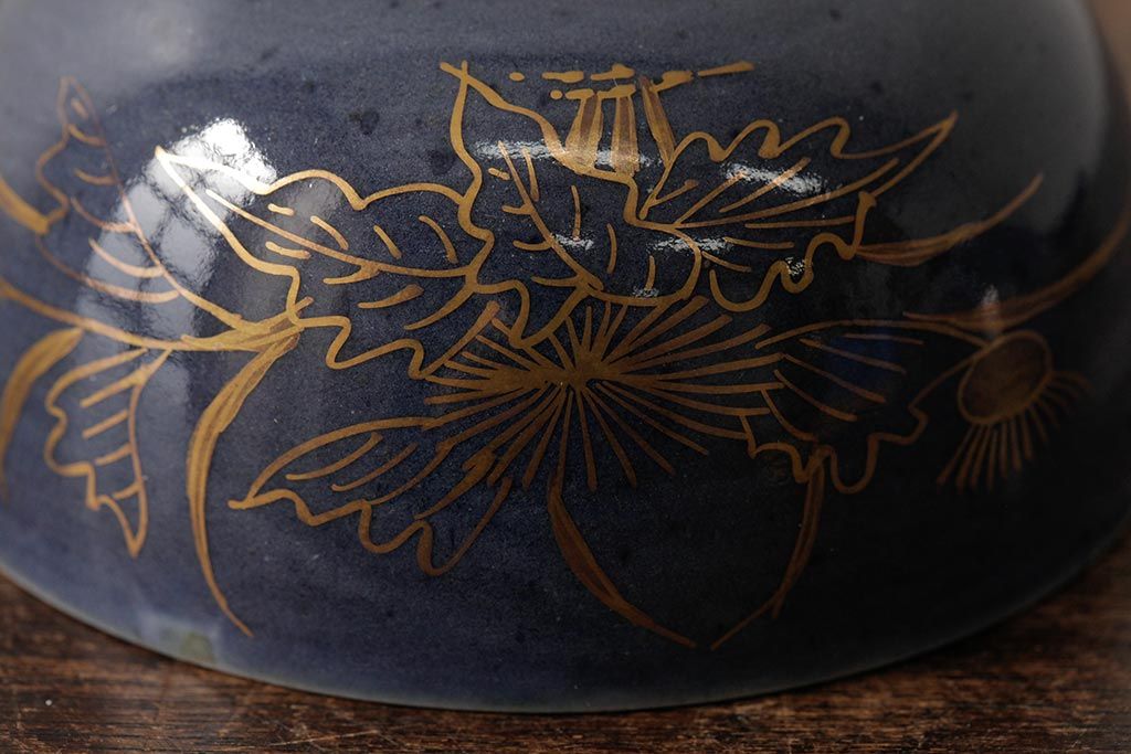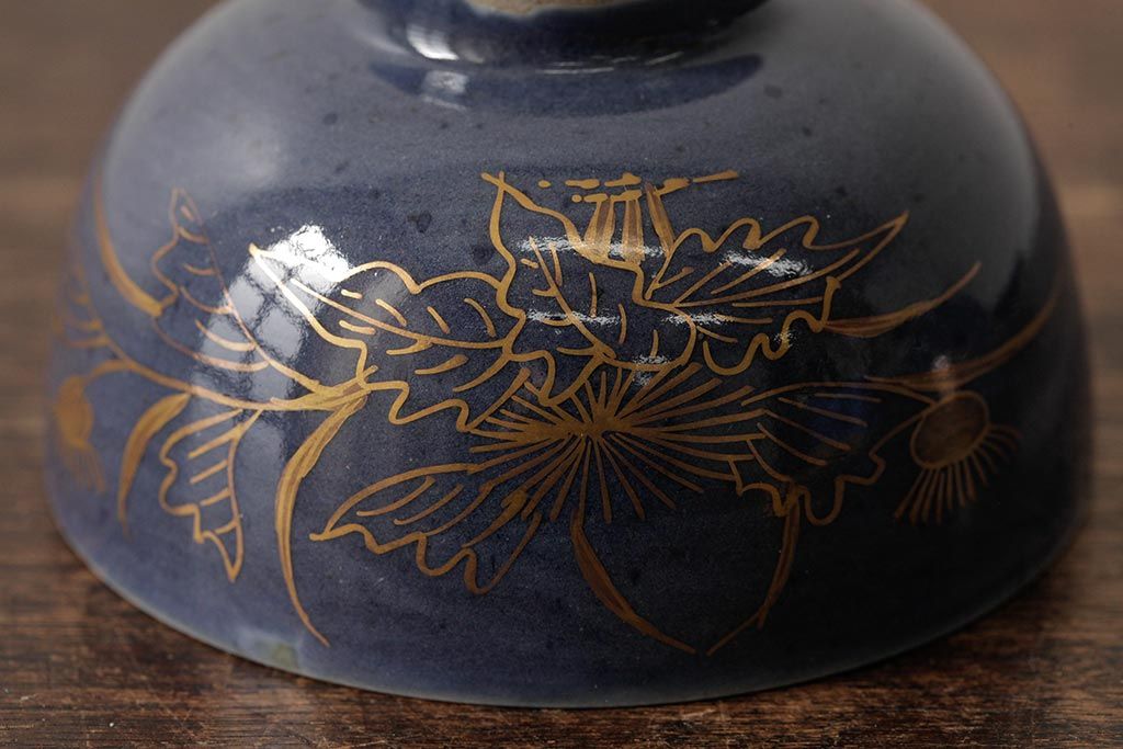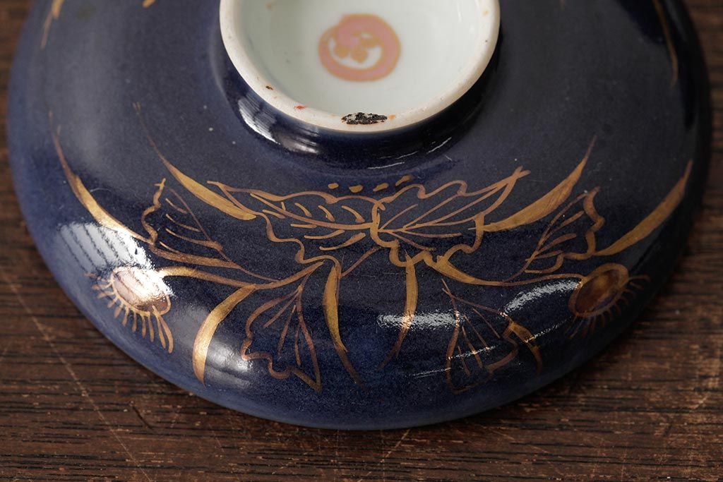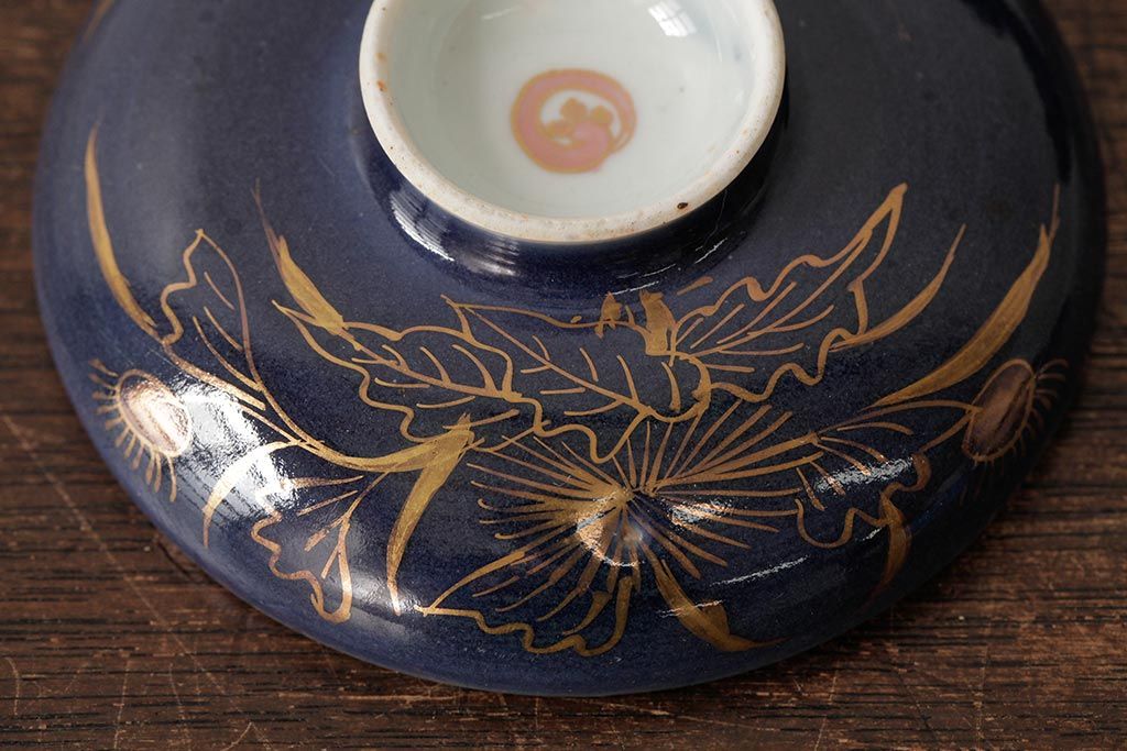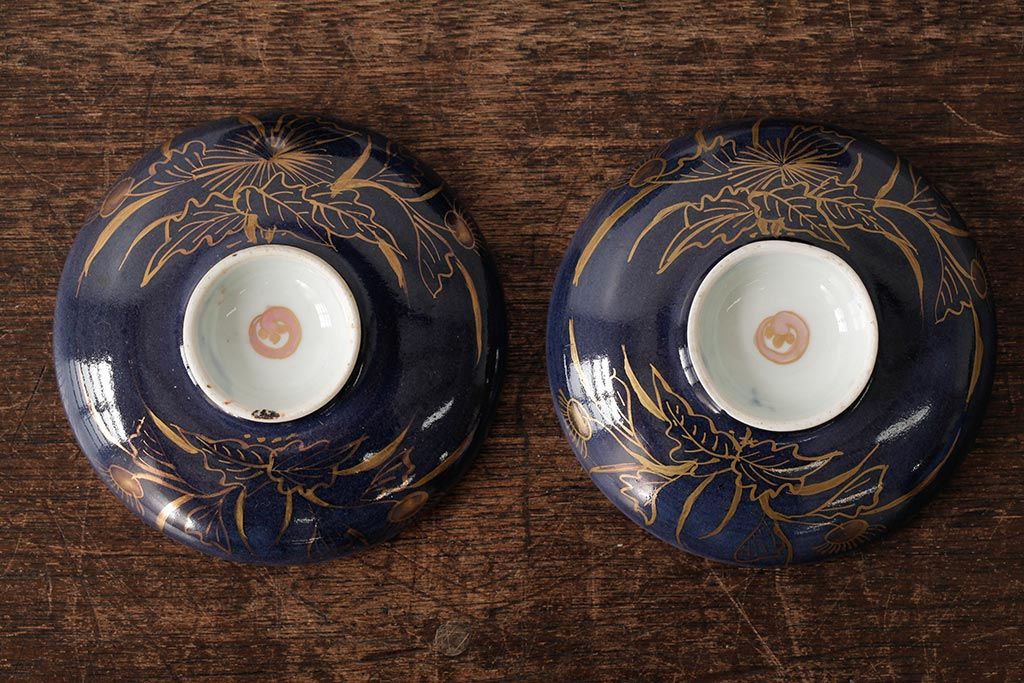 江戸期 古伊万里 瑠璃金彩花文蓋茶碗2客セット(和食器)(R-042744)