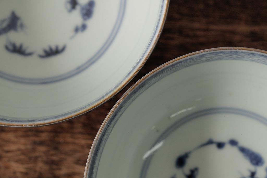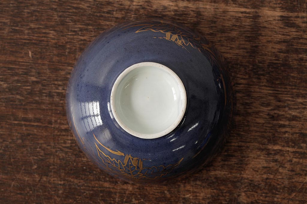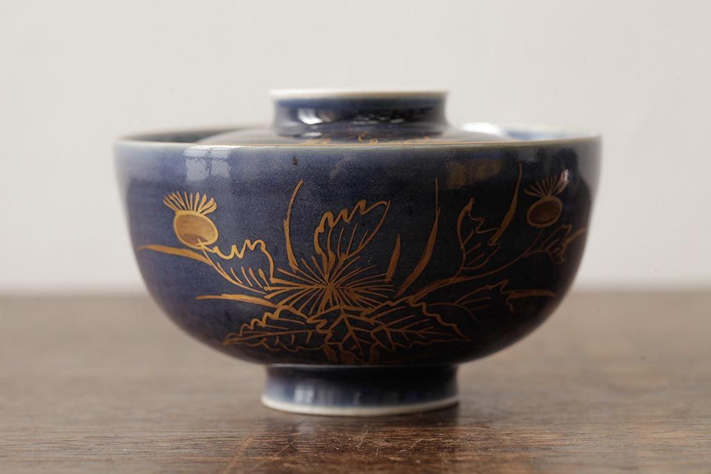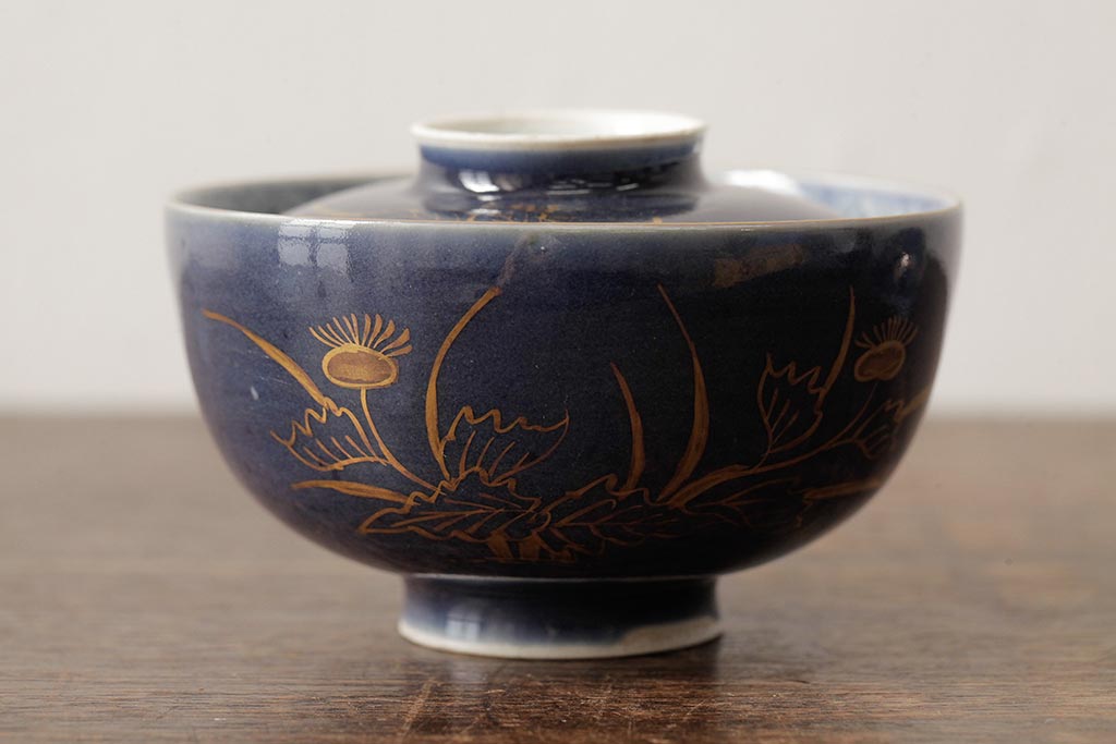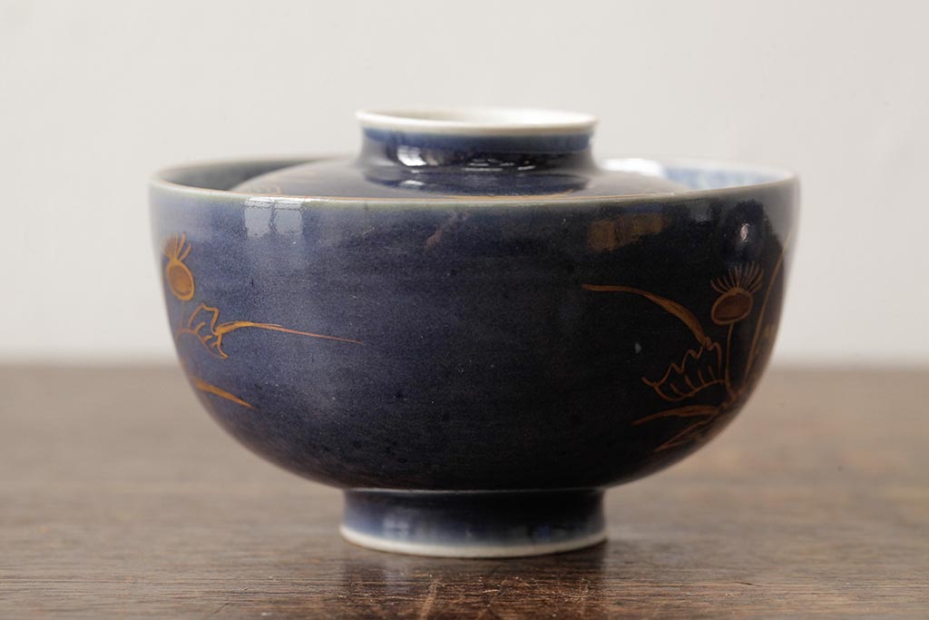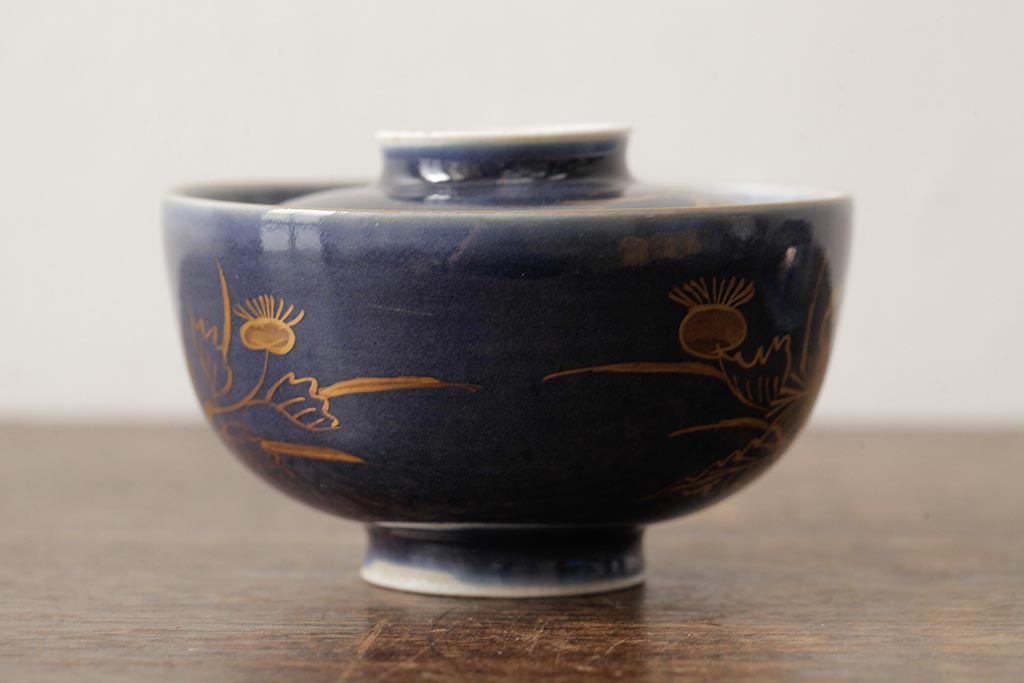 ラフジュ工房> 和食器・茶道具> お椀・茶碗 > 江戸期 古伊万里 瑠璃金彩花文蓋茶碗2客セット(和食器)(R-042746)