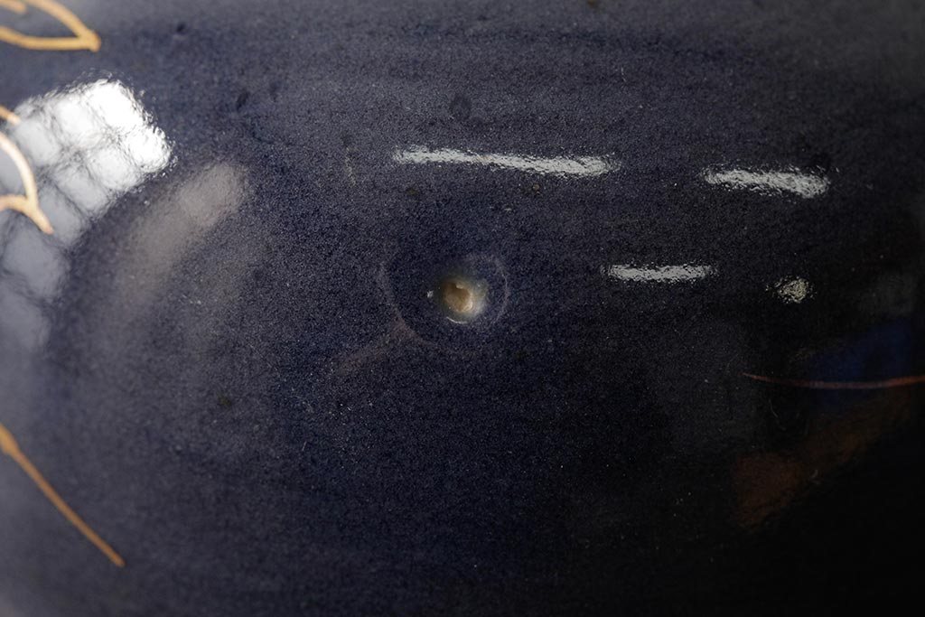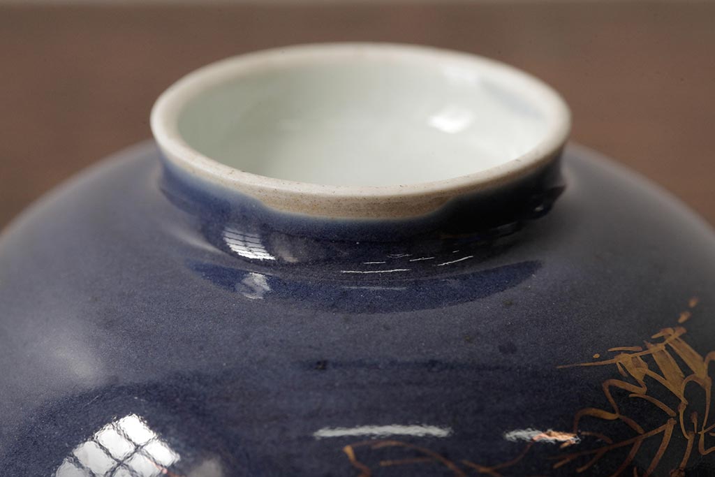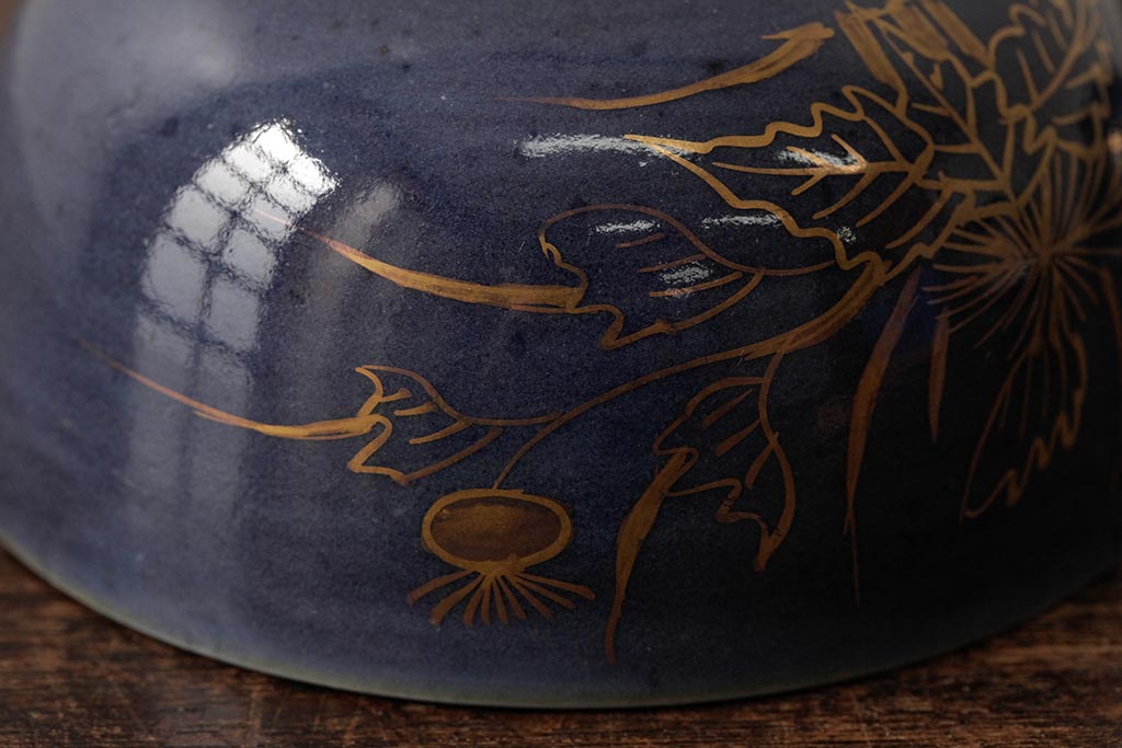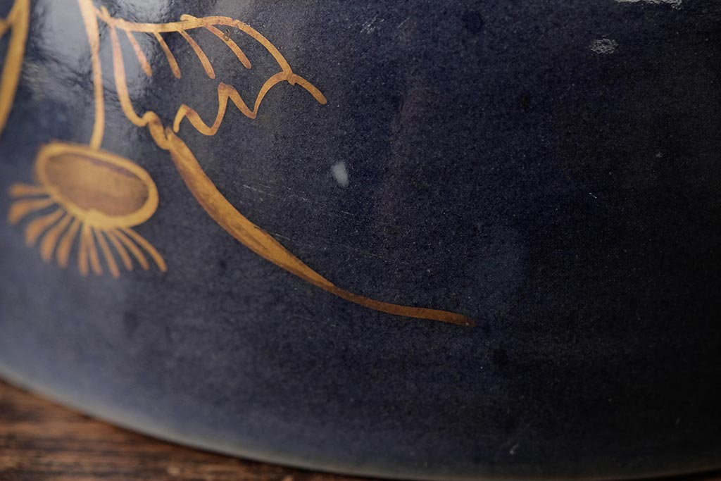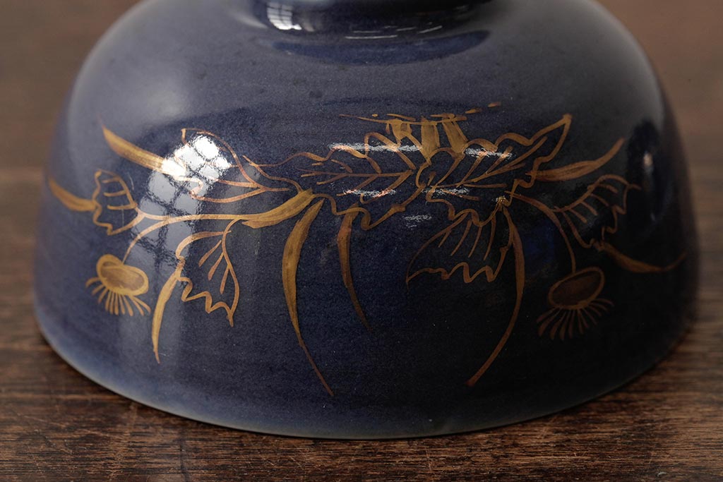 江戸期 古伊万里 瑠璃金彩花文蓋茶碗2客セット(和食器)(R-042746)