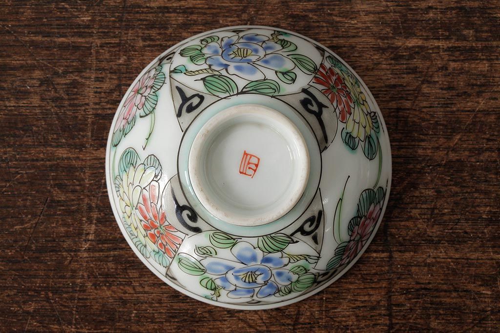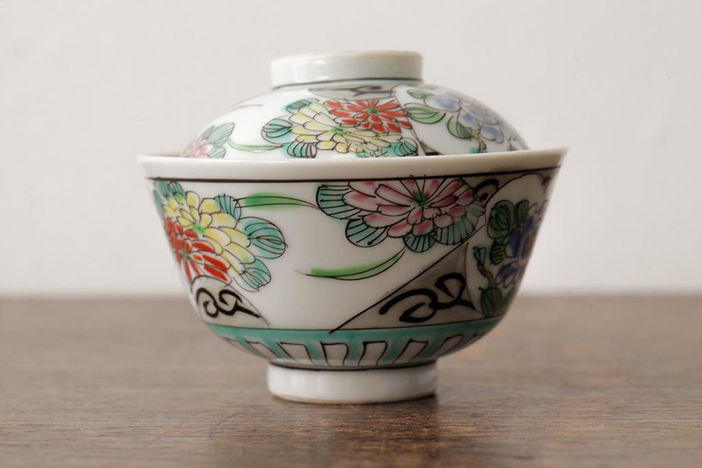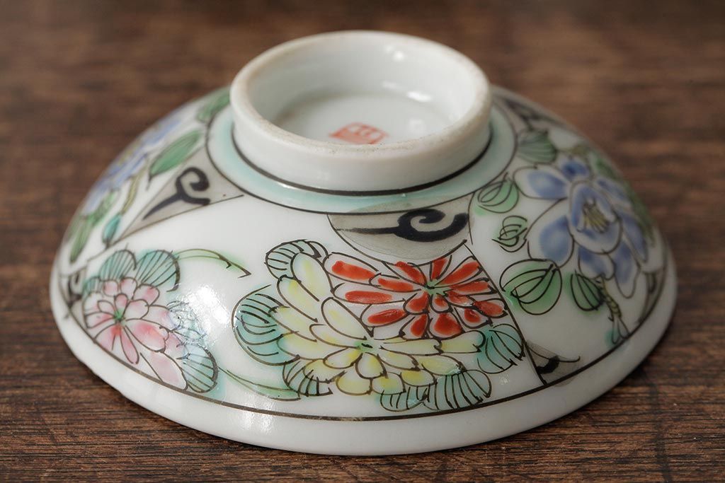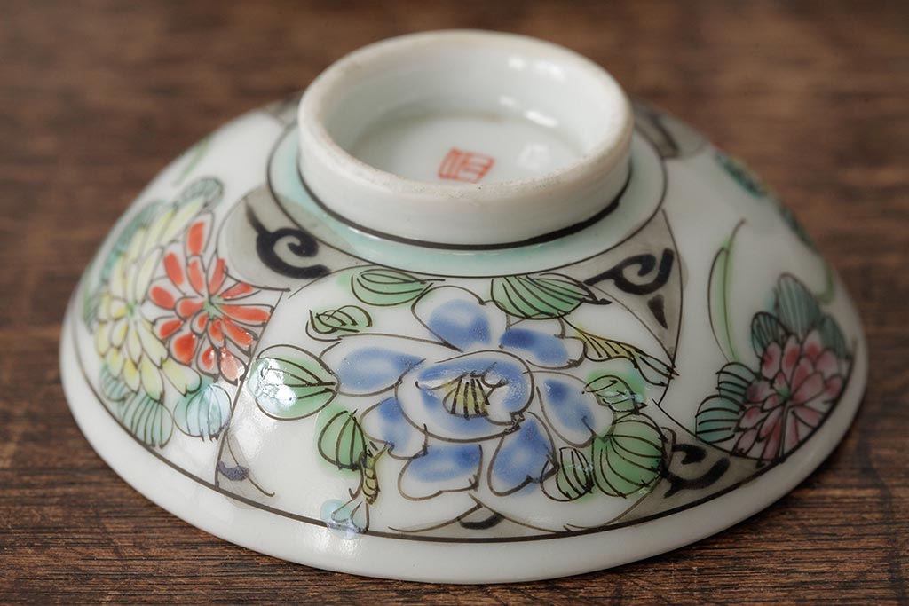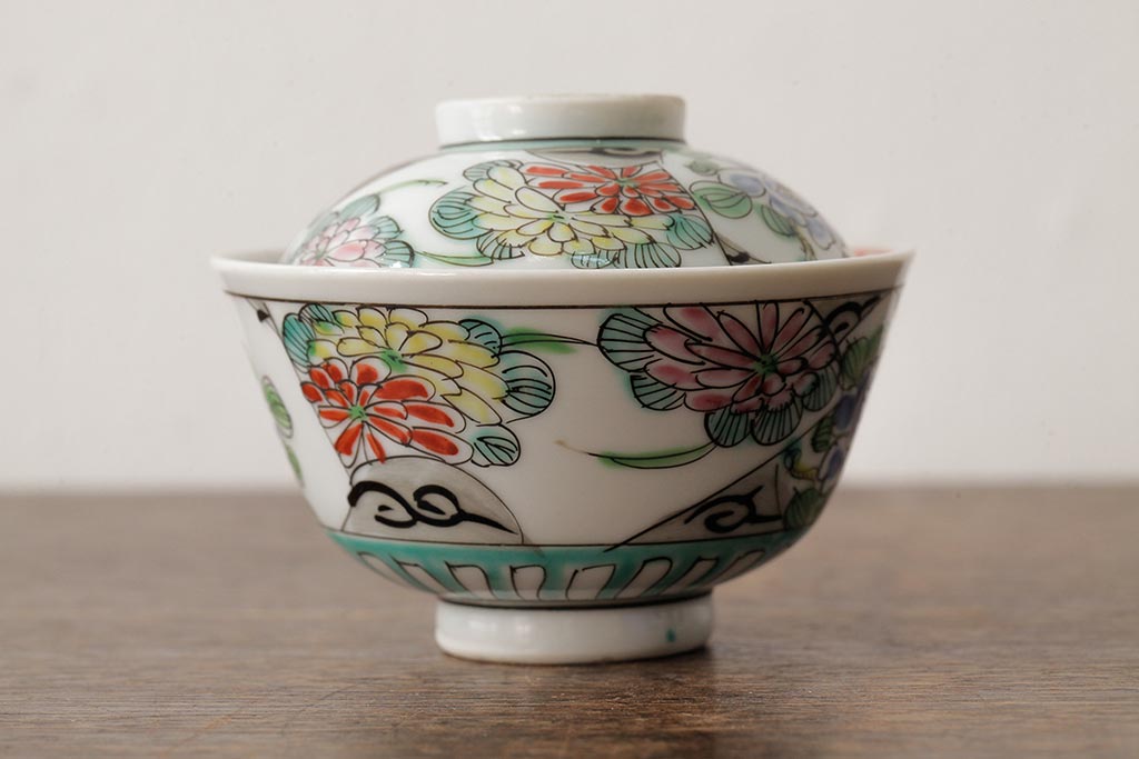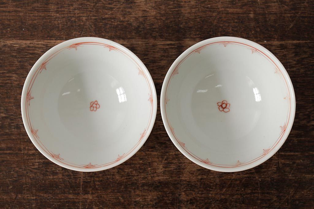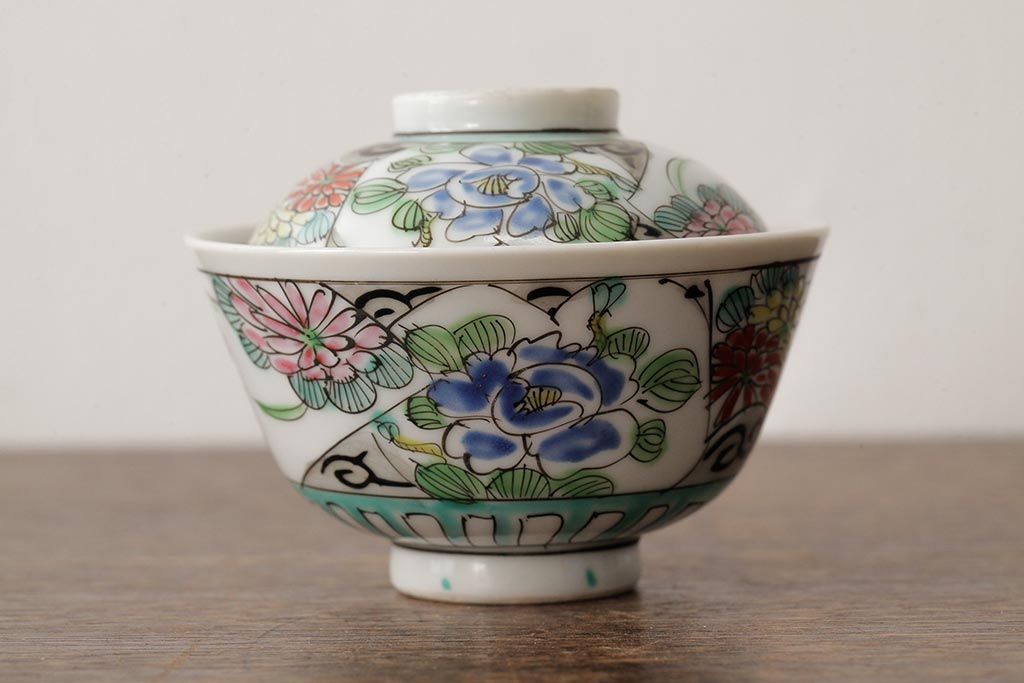明治大正期 色絵染付蓋茶碗2客セット(和食器)(R-042810)