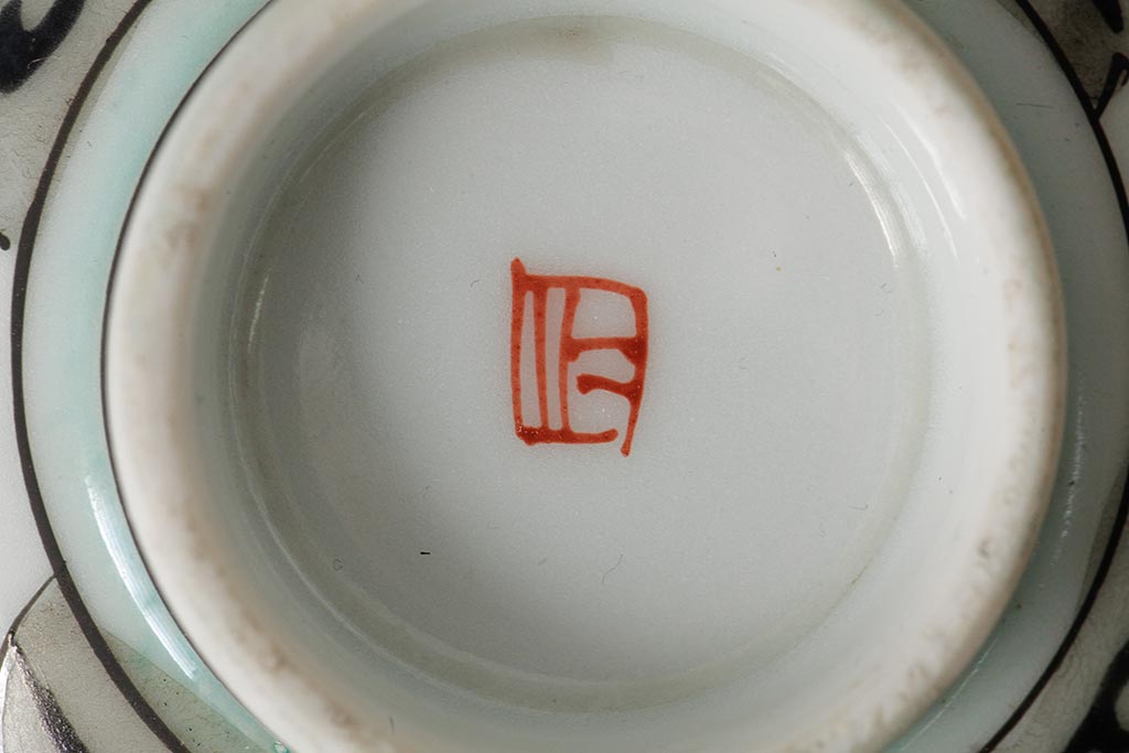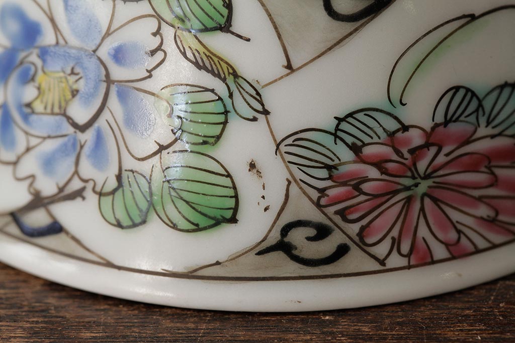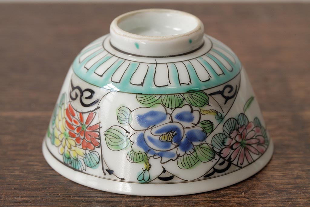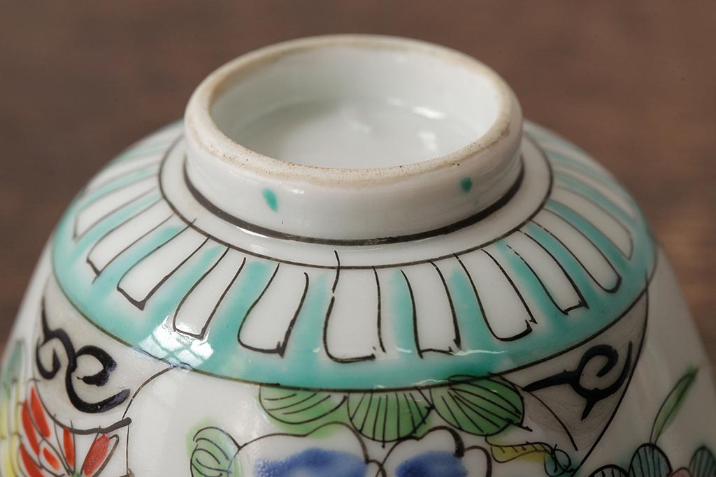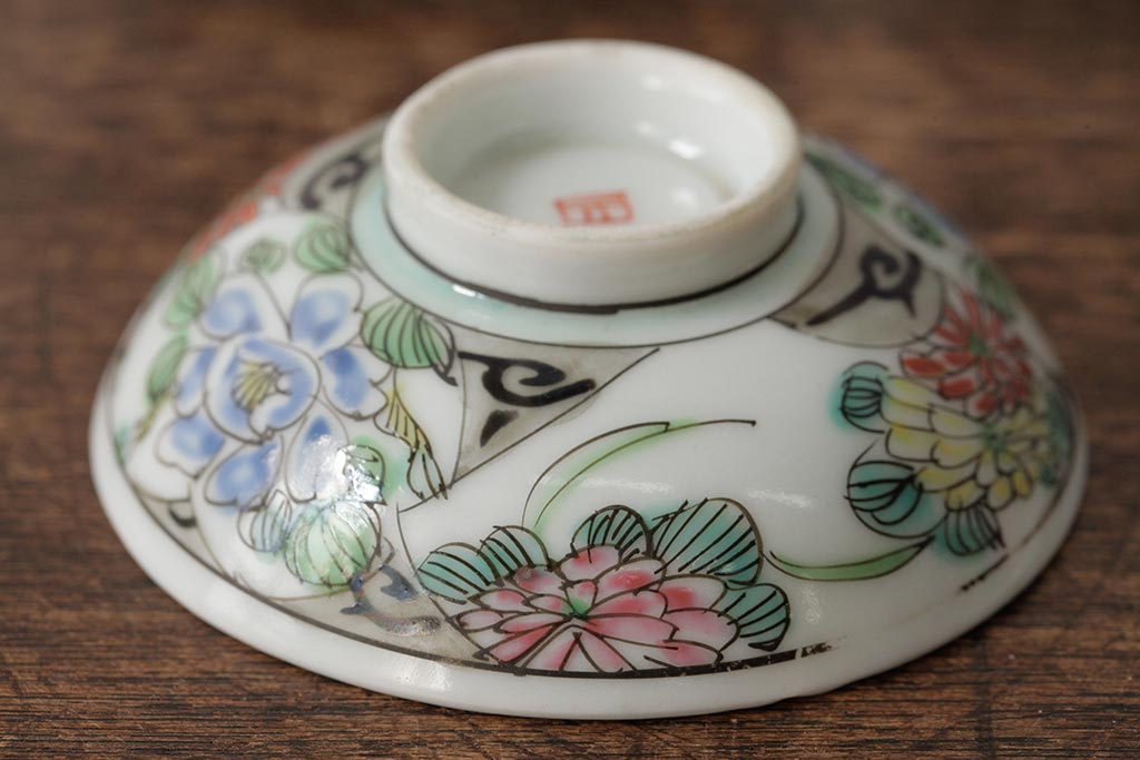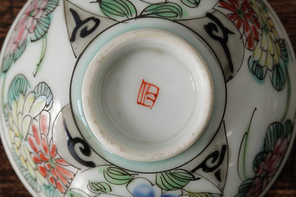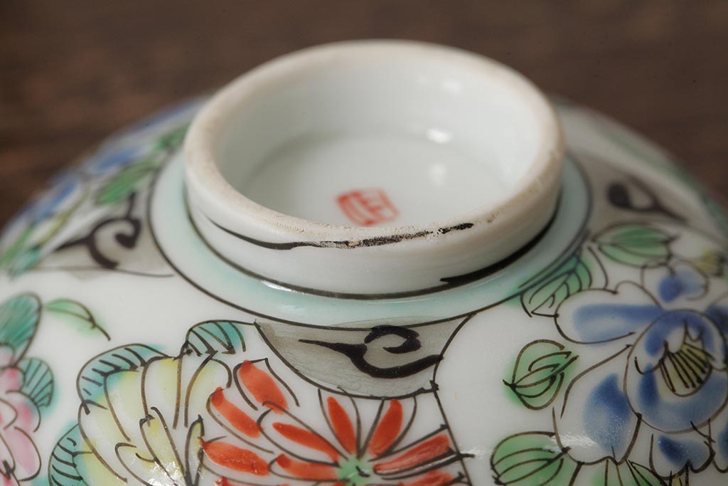 明治大正期 色絵染付蓋茶碗2客セット(和食器)(R-042810)