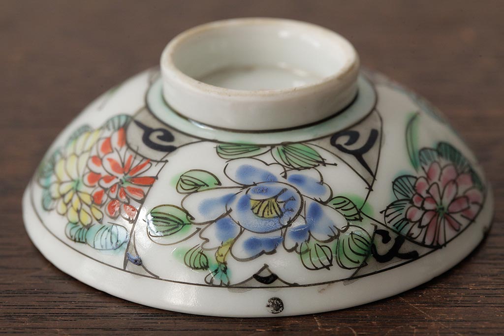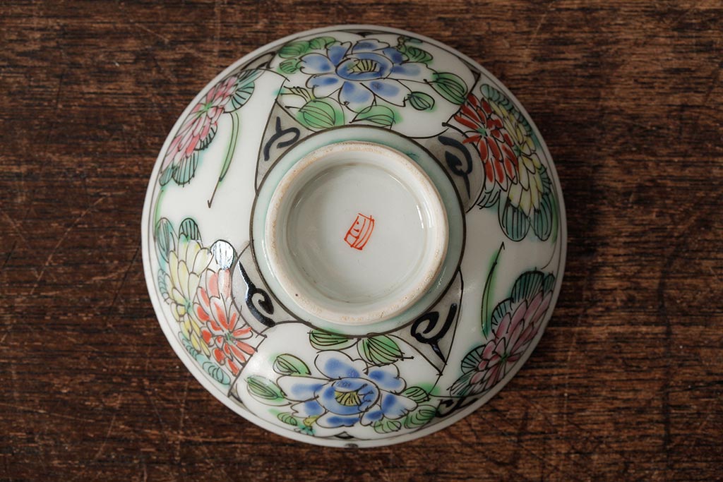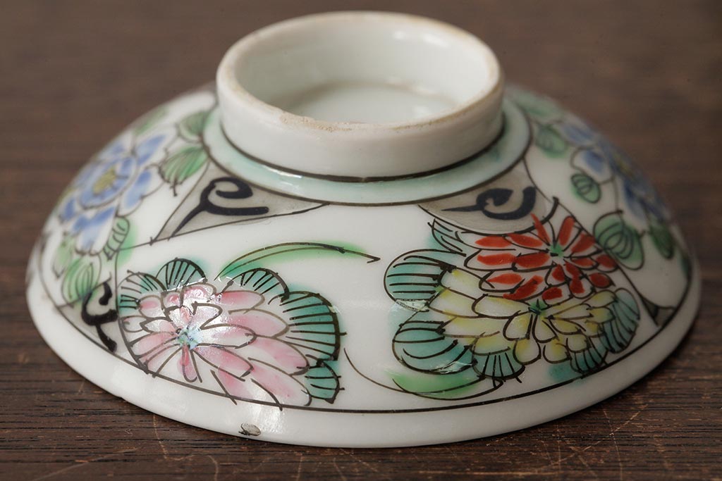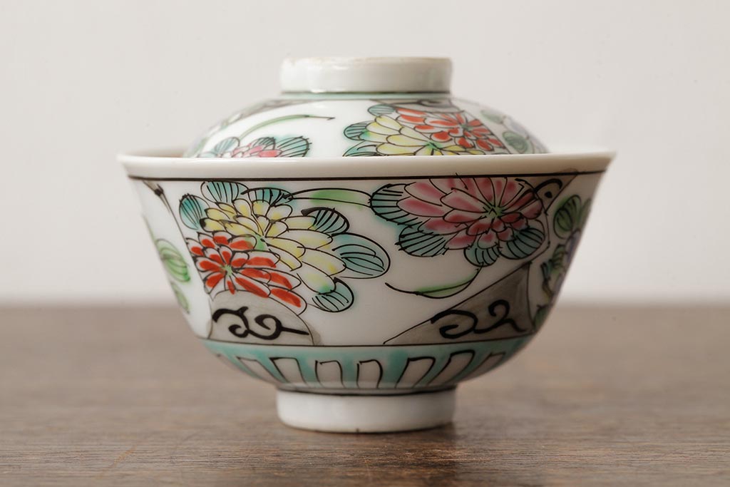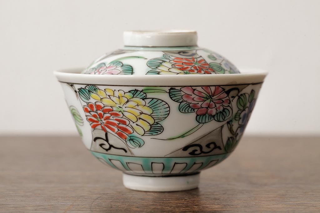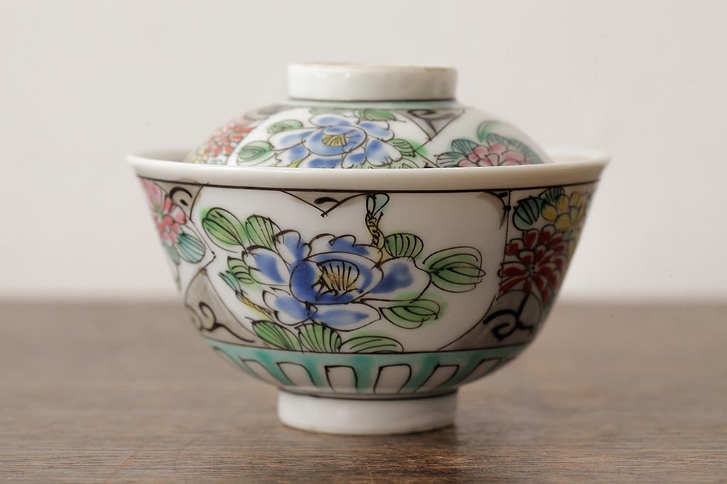 明治大正期 色絵染付蓋茶碗2客セット(和食器)(R-042811)
