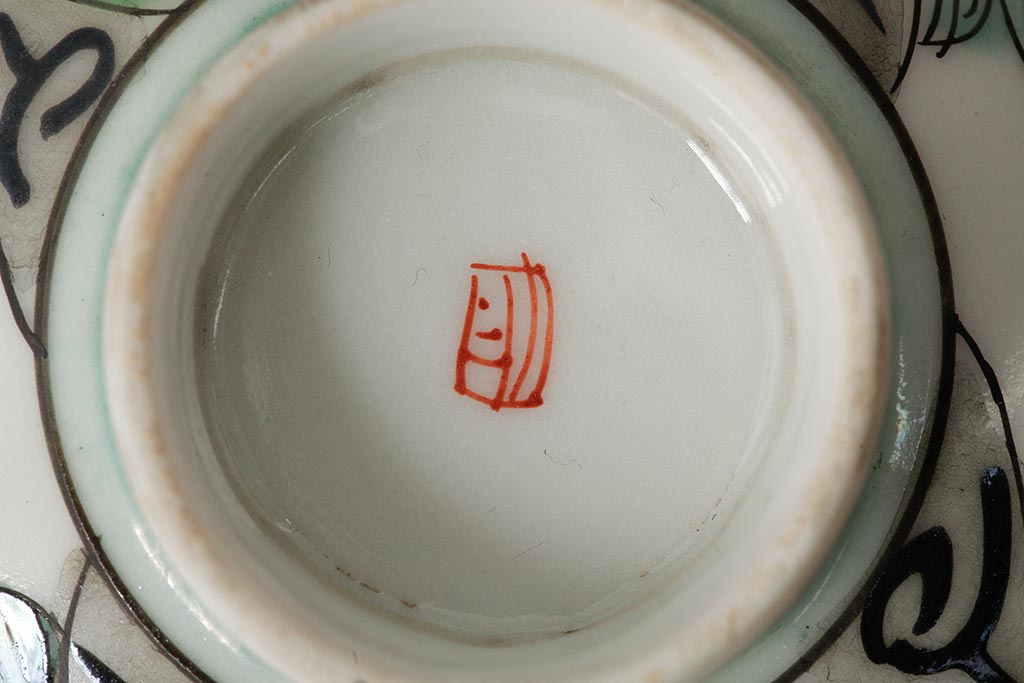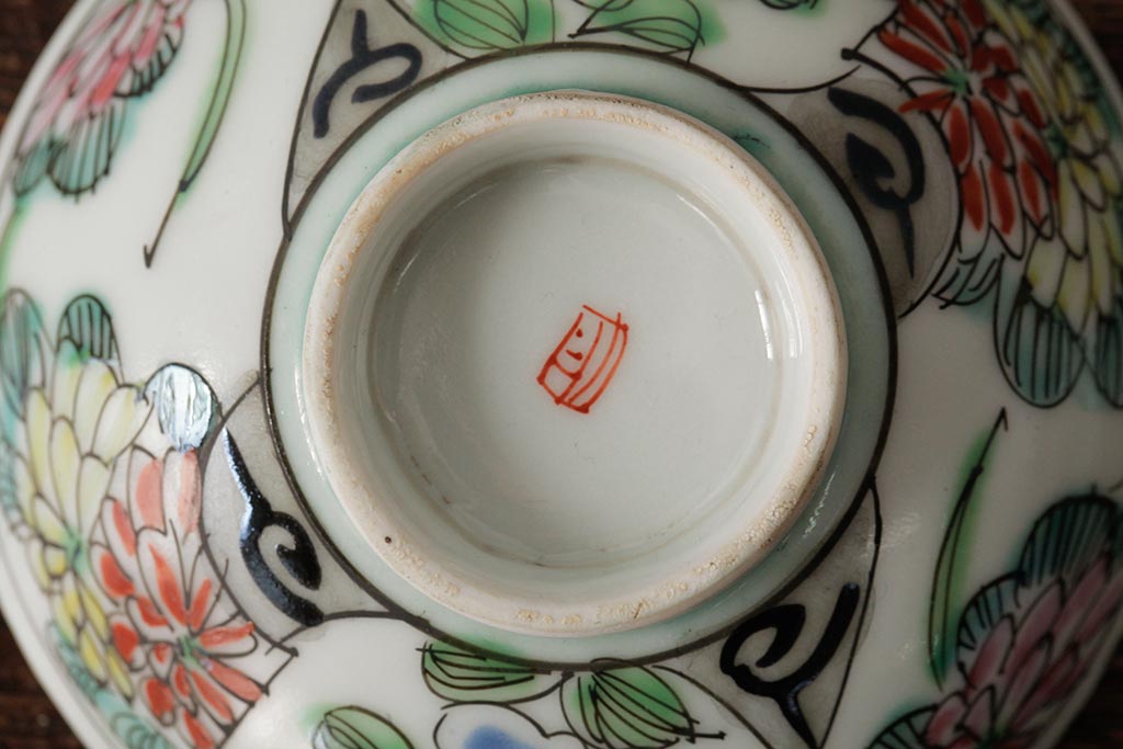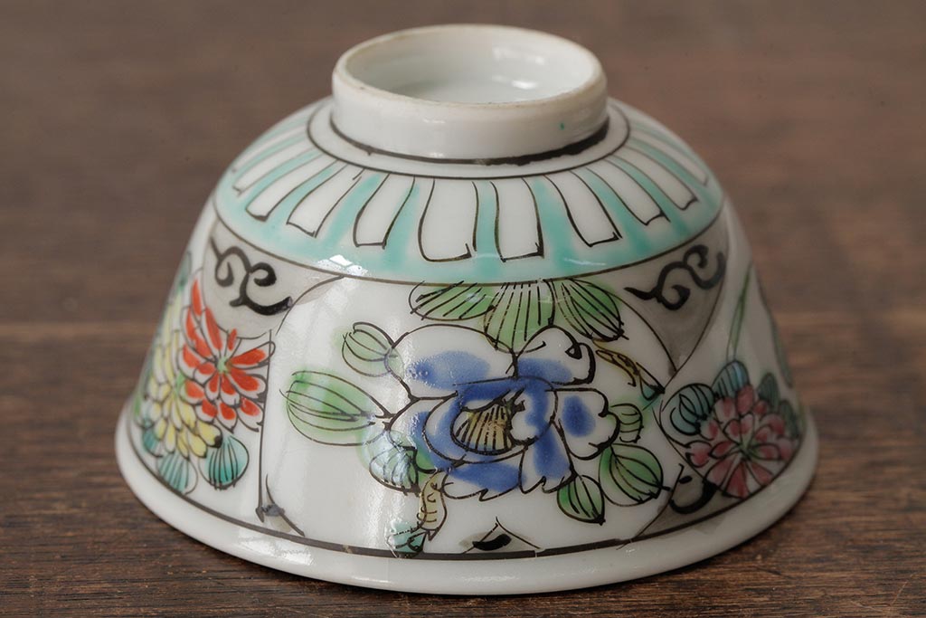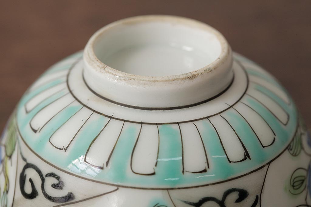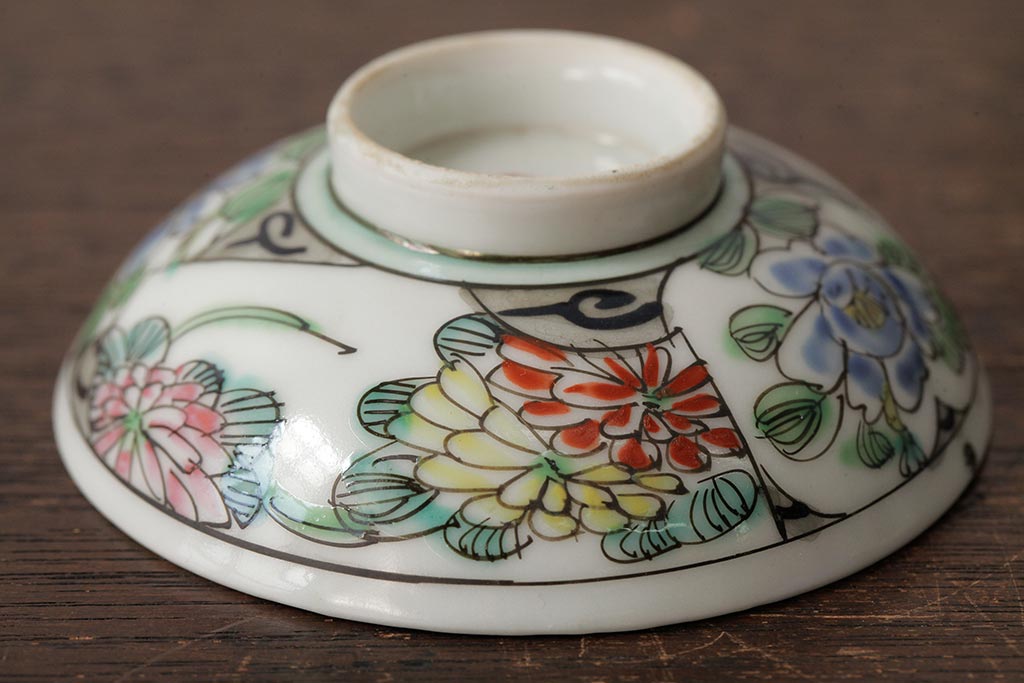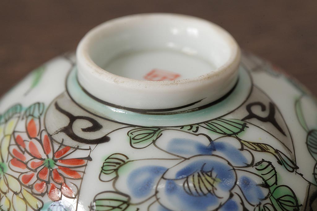 明治大正期 色絵染付蓋茶碗2客セット(和食器)(R-042811)
