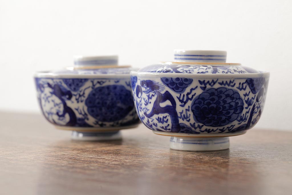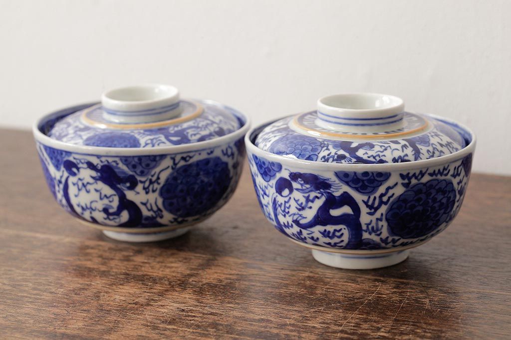 ラフジュ工房> 和食器・茶道具> お椀・茶碗 > 古民具・骨董 明治期 伊万里焼 染付蓋茶碗2客セット(和食器)(R-042741)
