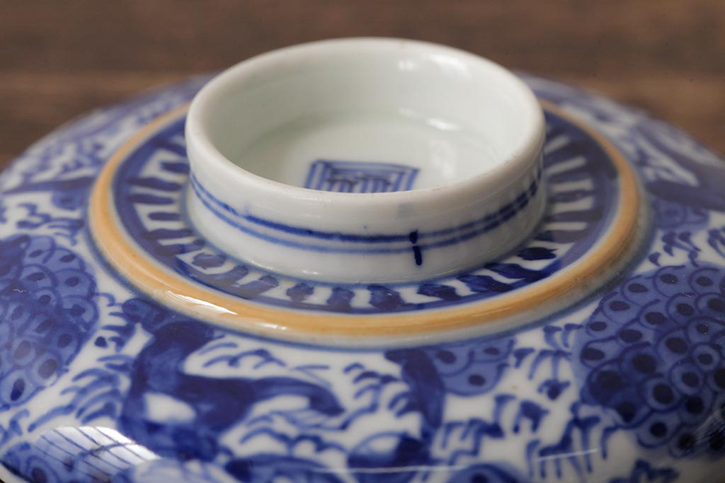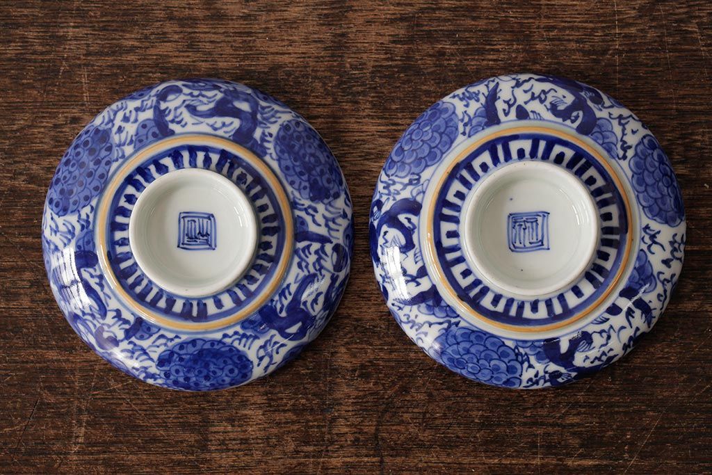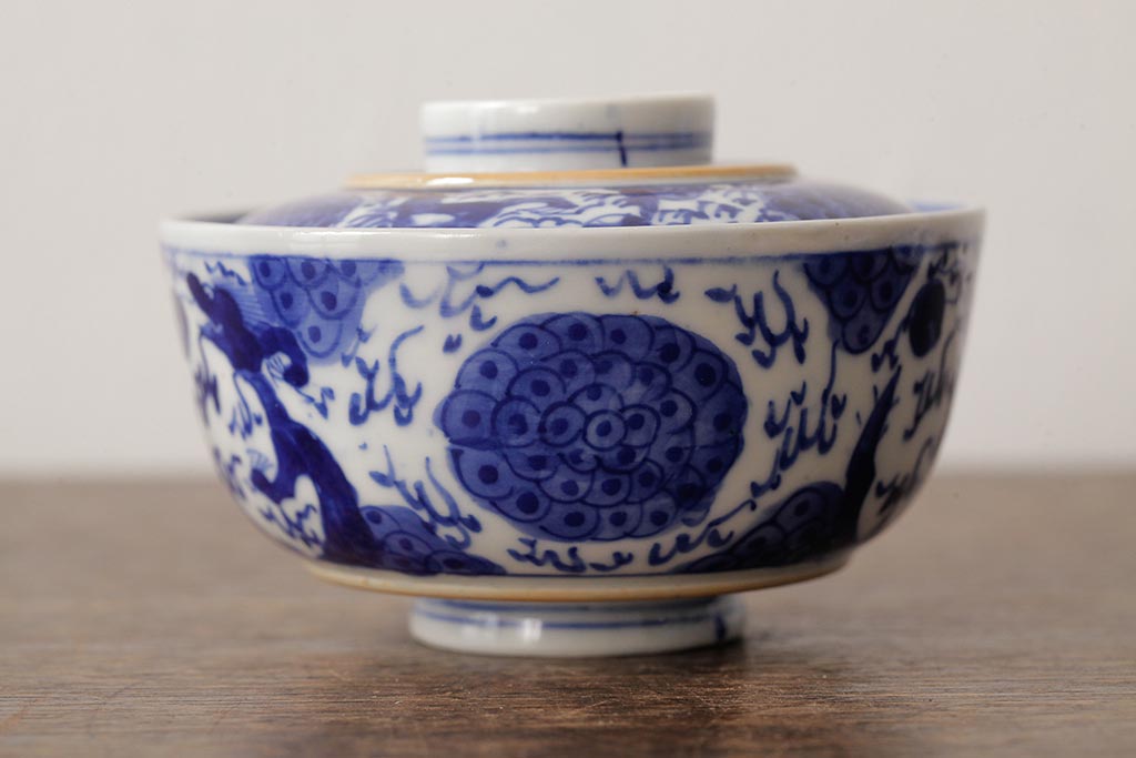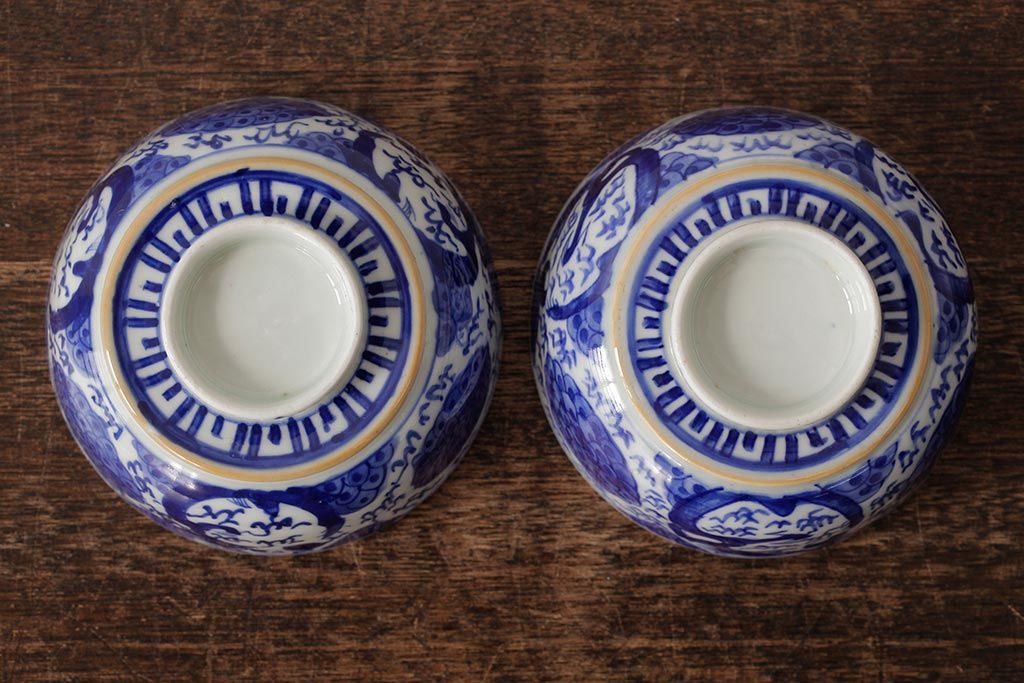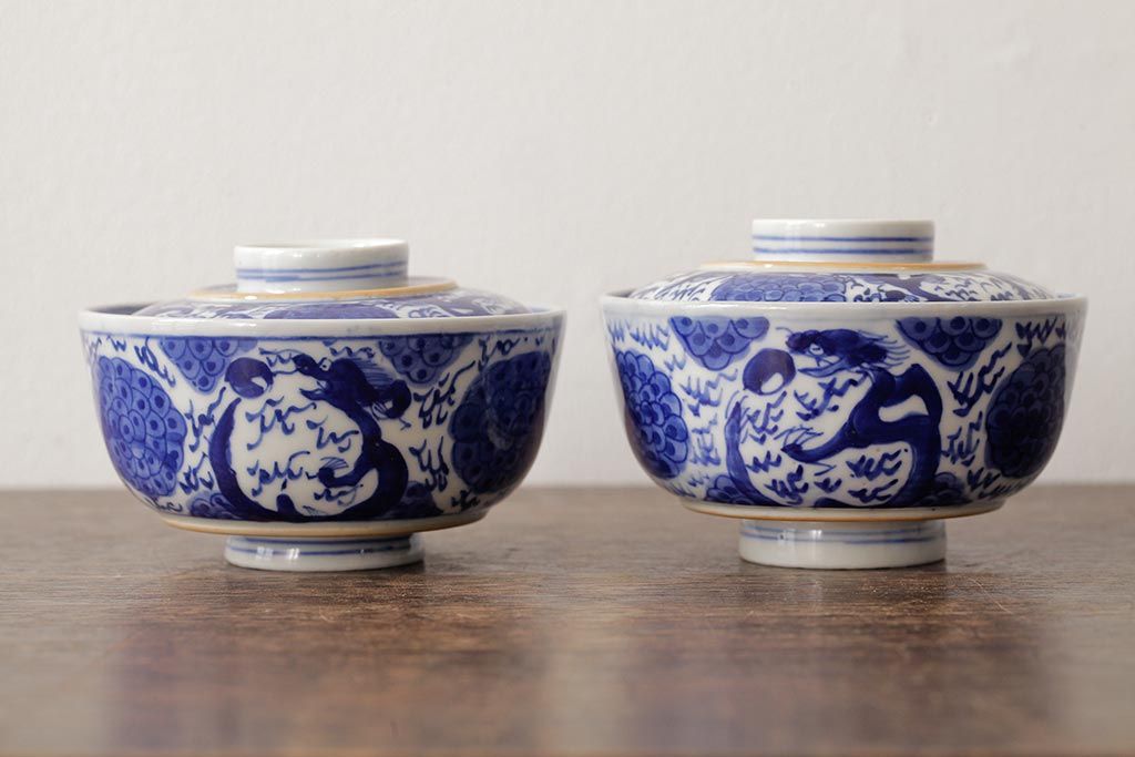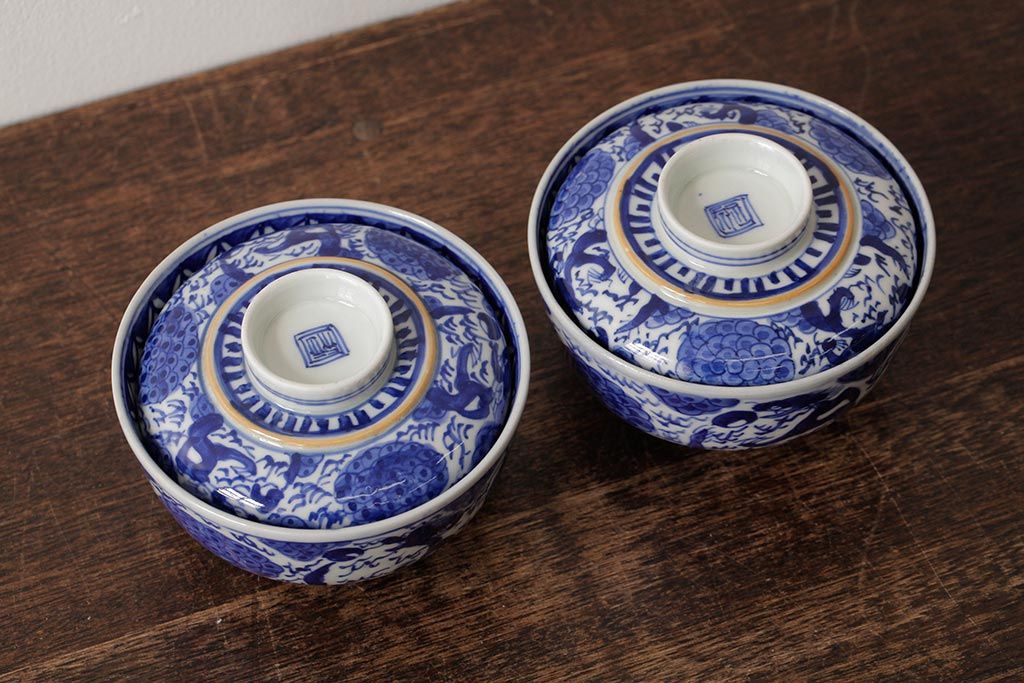 ラフジュ工房> 骨董・美術品 > 古民具・骨董 明治期 伊万里焼 染付蓋茶碗2客セット(和食器)(R-042741)