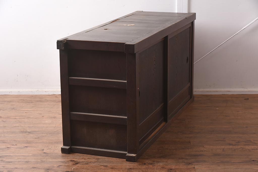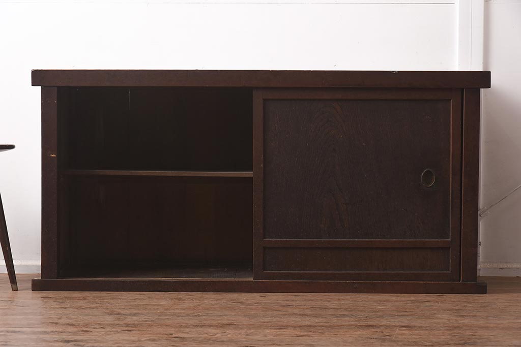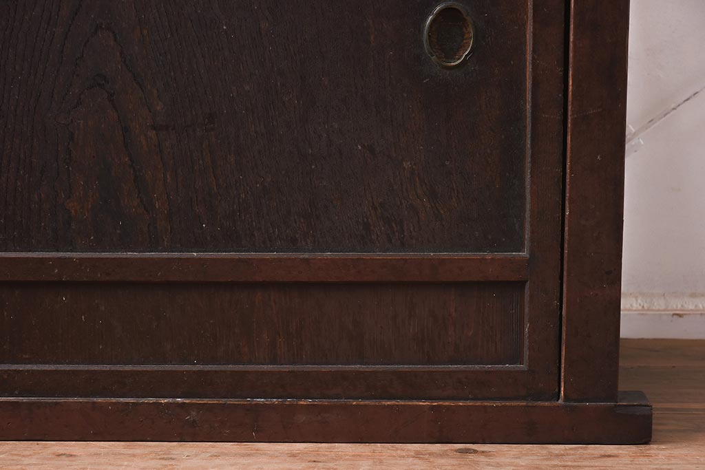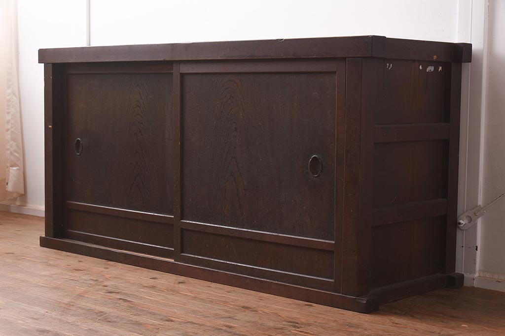 キャビネット・戸棚> テレビ台・ローボード > アンティーク家具 和製アンティーク 明治大正期 前面ヒノキ材 モダンな雰囲気漂う小ぶりな水屋箪笥サイドボード(収納棚、戸棚)(R-042947)