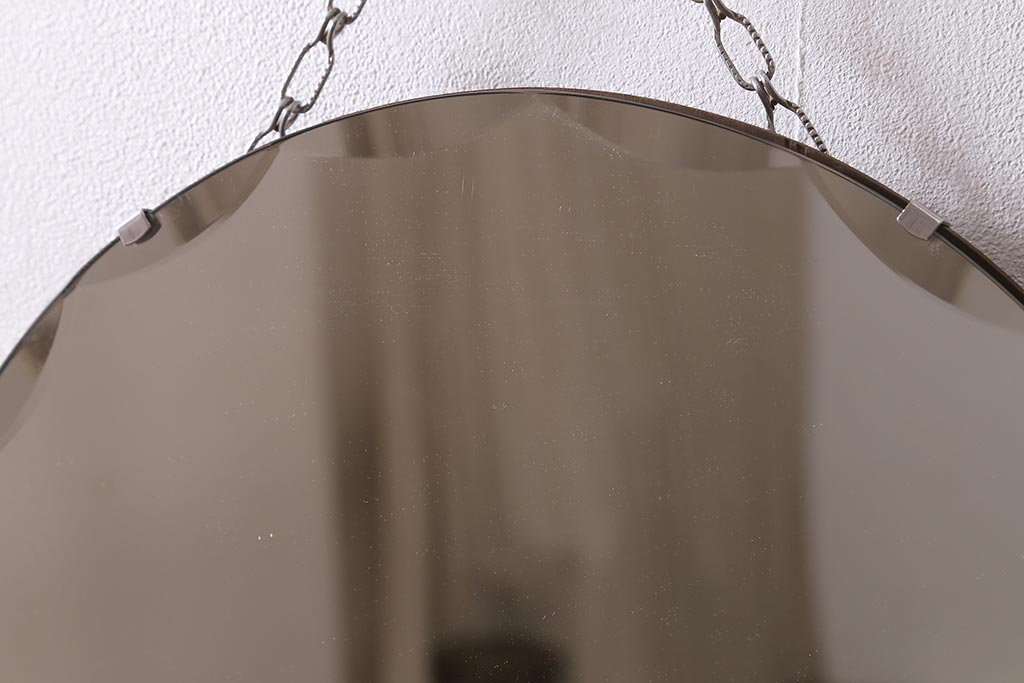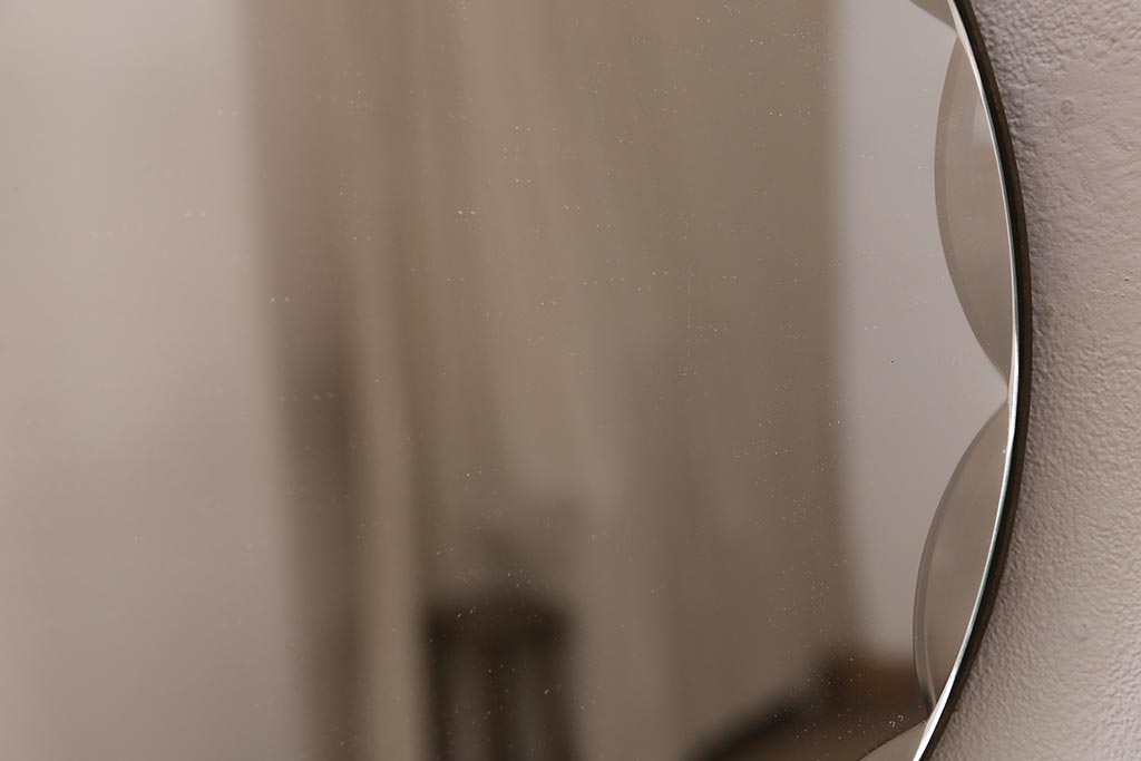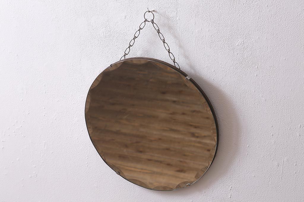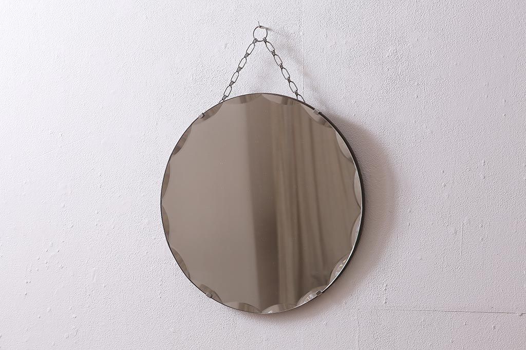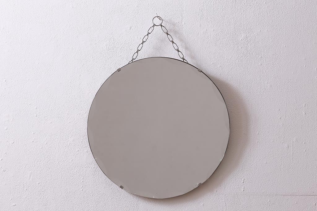 イギリスヴィンテージ 1950年頃 シンプルなデザインが魅力の壁掛けカットミラー(鏡、ビンテージ)(R-043307)
