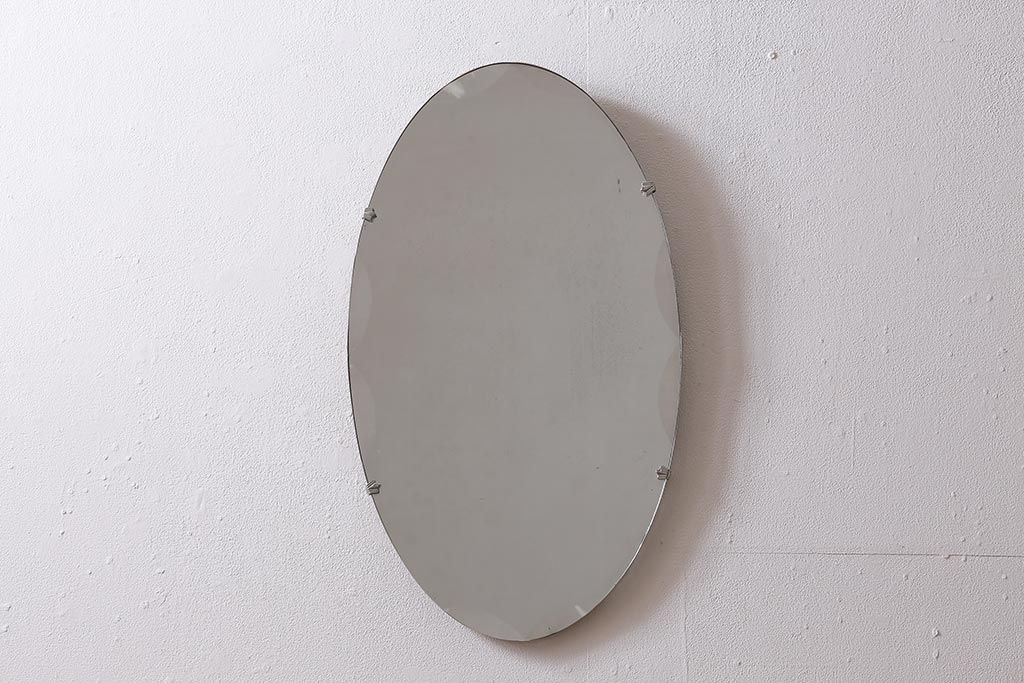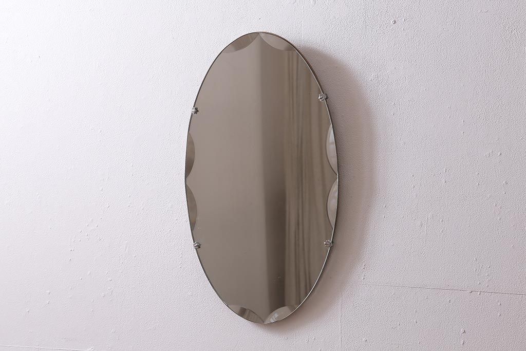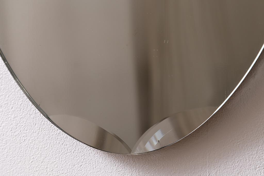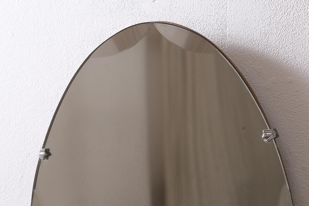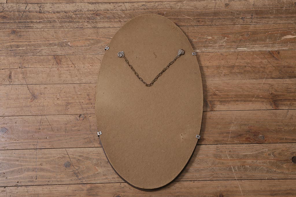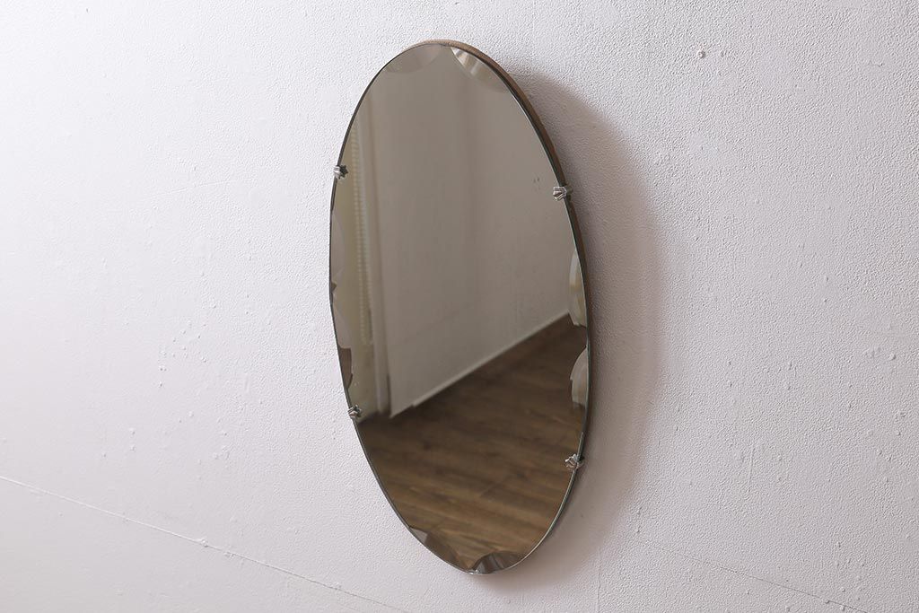 ヴィンテージ雑貨 イギリスビンテージ シックな空間にぴったりのカットガラスオーバルミラー(鏡)(R-043305)