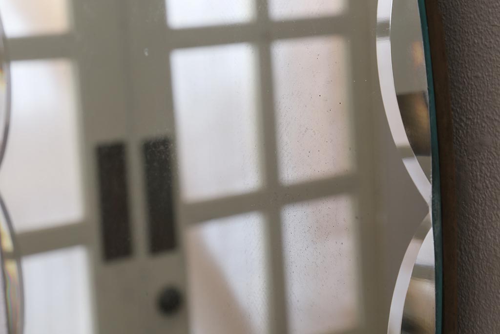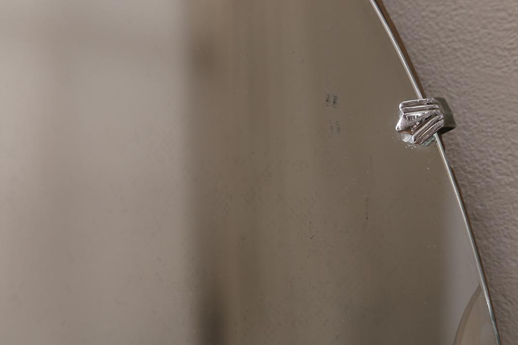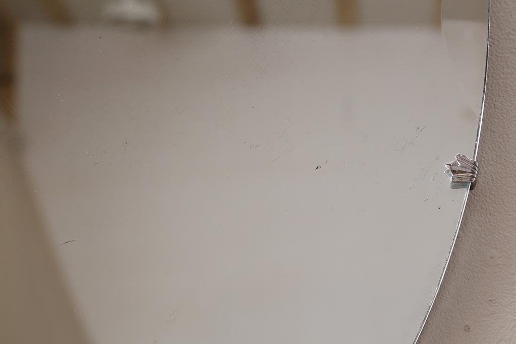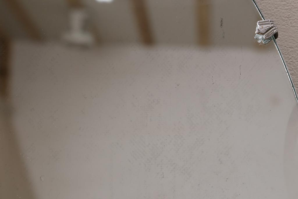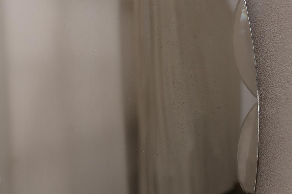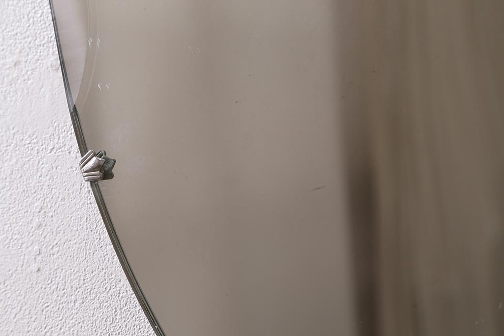 ヴィンテージ雑貨 イギリスビンテージ シックな空間にぴったりのカットガラスオーバルミラー(鏡)(R-043305)