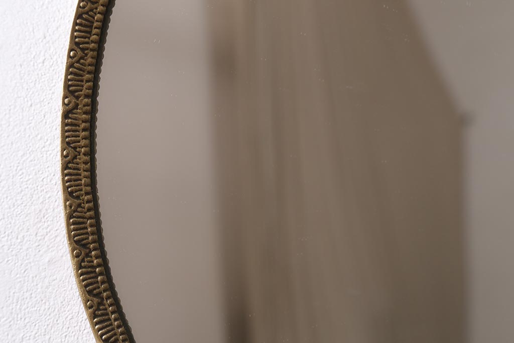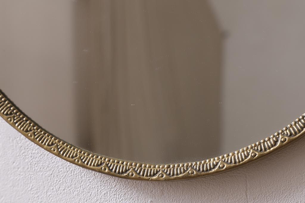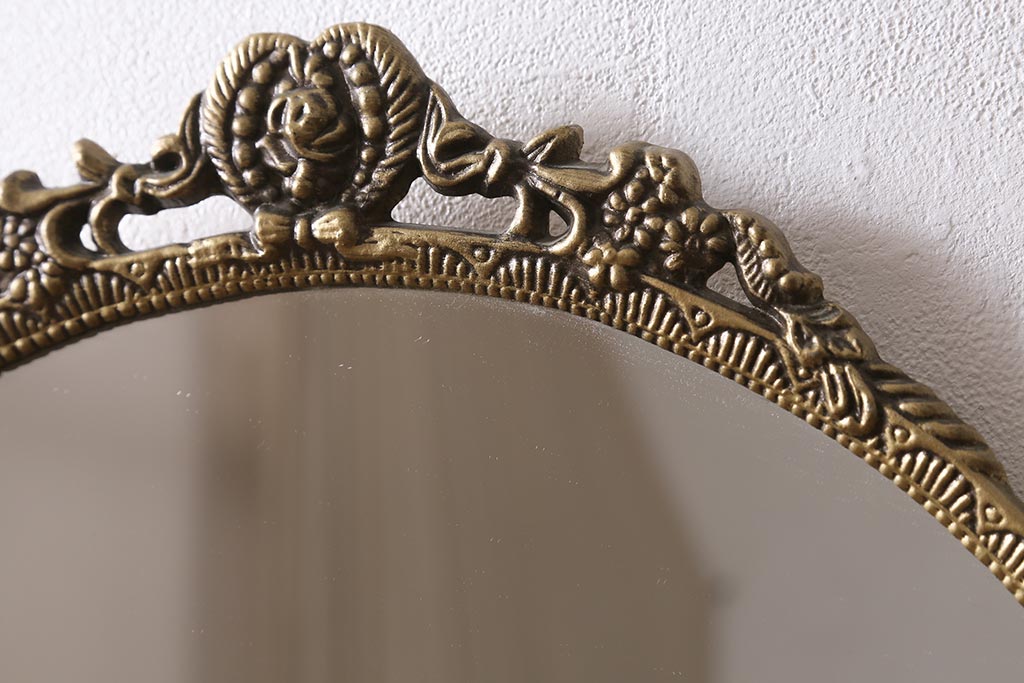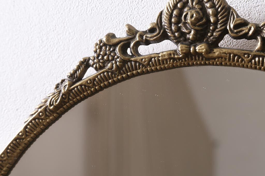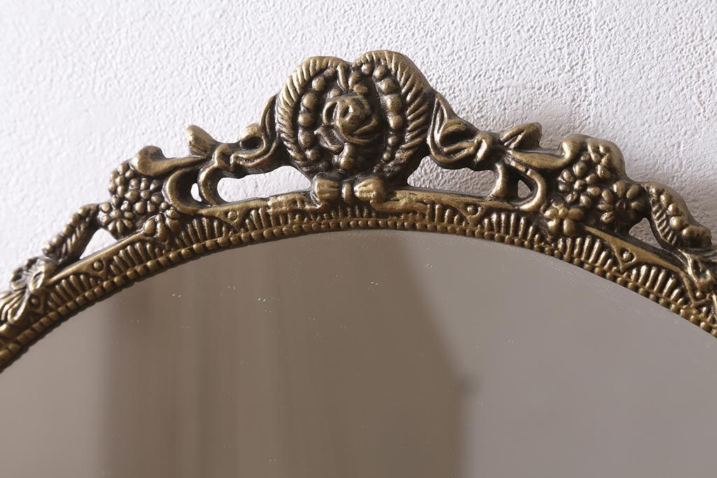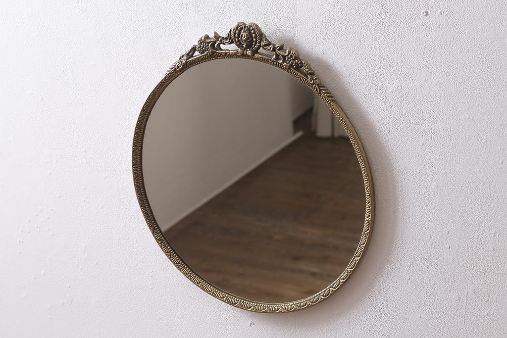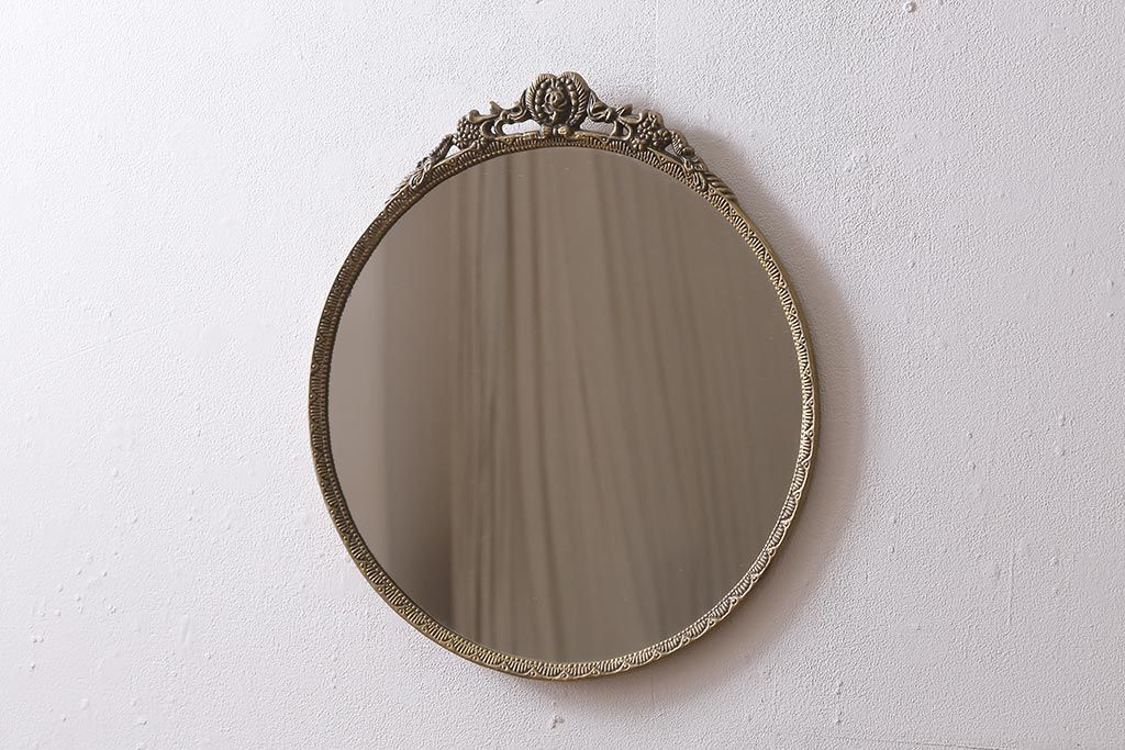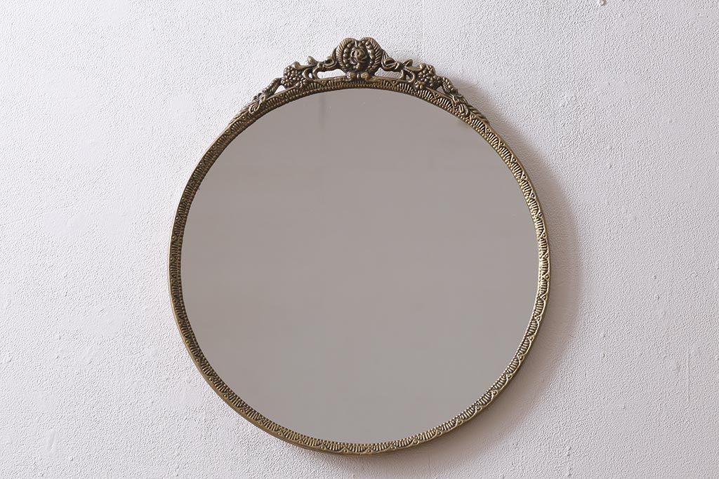 ヴィンテージ雑貨 イギリスビンテージ 気品漂うデザインの丸型ウォールミラー(鏡)(R-043317)