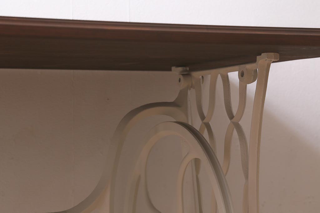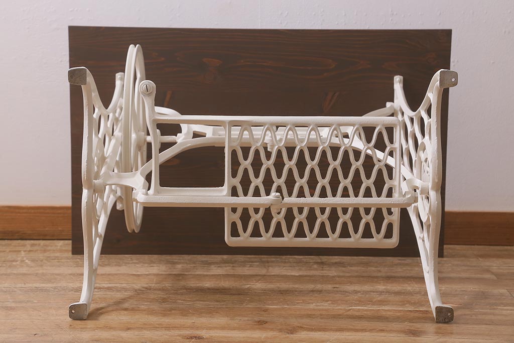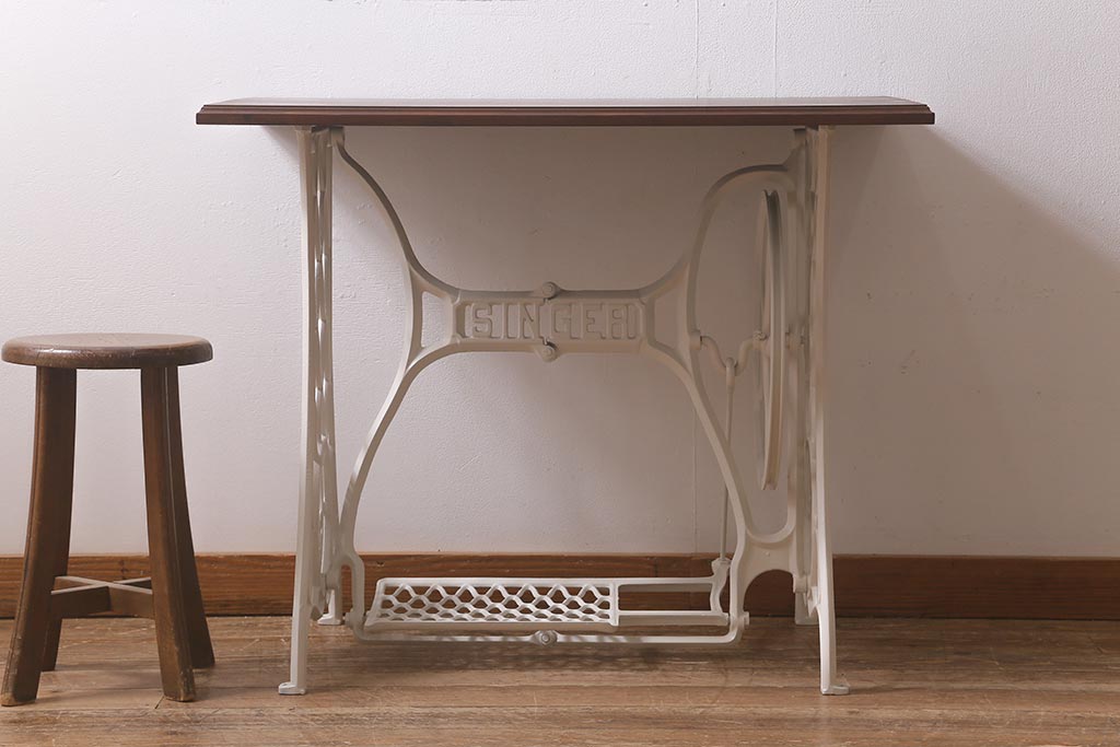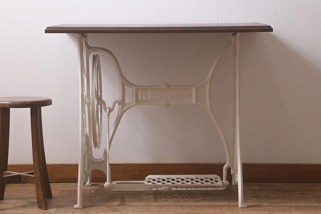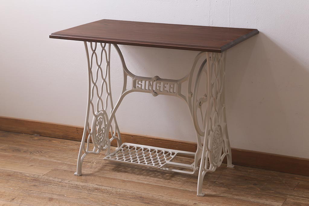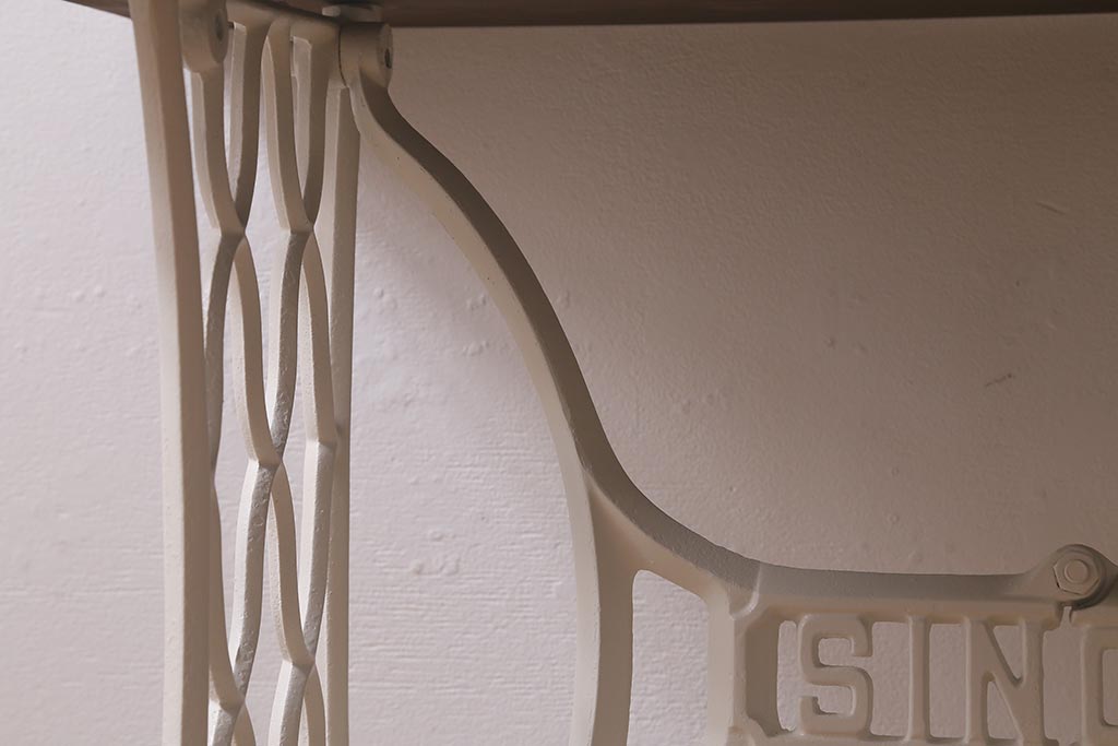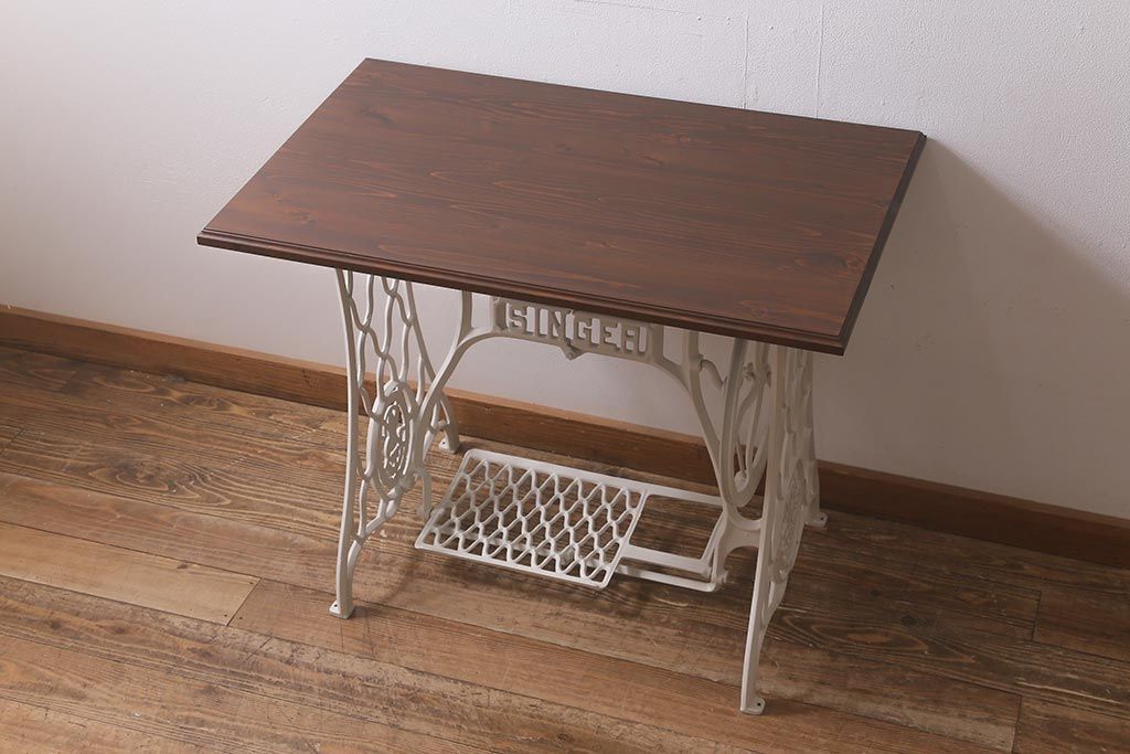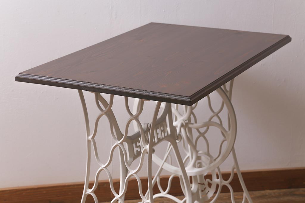 テーブル> 鉄脚テーブル > シンガー社(SINGER) 天板ヒノキ材 リメイク ナチュラルインテリアにぴったりなミシンテーブル(シンガーミシン、サイドテーブル、カフェテーブル、ミシン台)(R-043296)