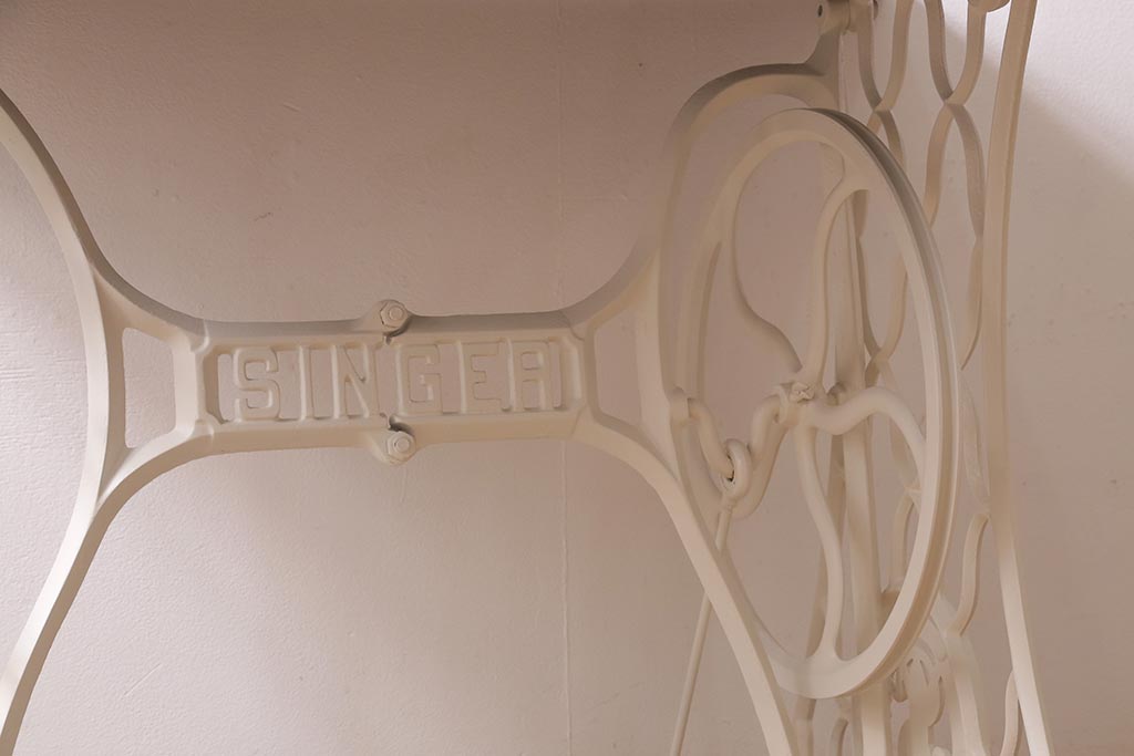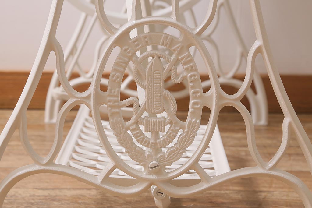 テーブル> サイドテーブル > シンガー社(SINGER) 天板ヒノキ材 リメイク ナチュラルインテリアにぴったりなミシンテーブル(シンガーミシン、サイドテーブル、カフェテーブル、ミシン台)(R-043296)