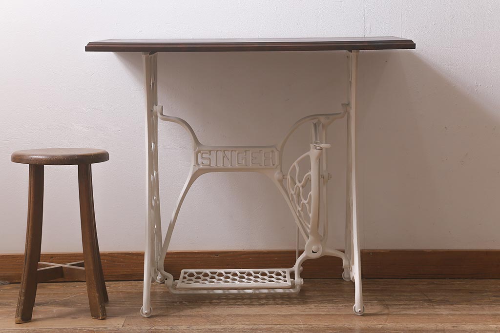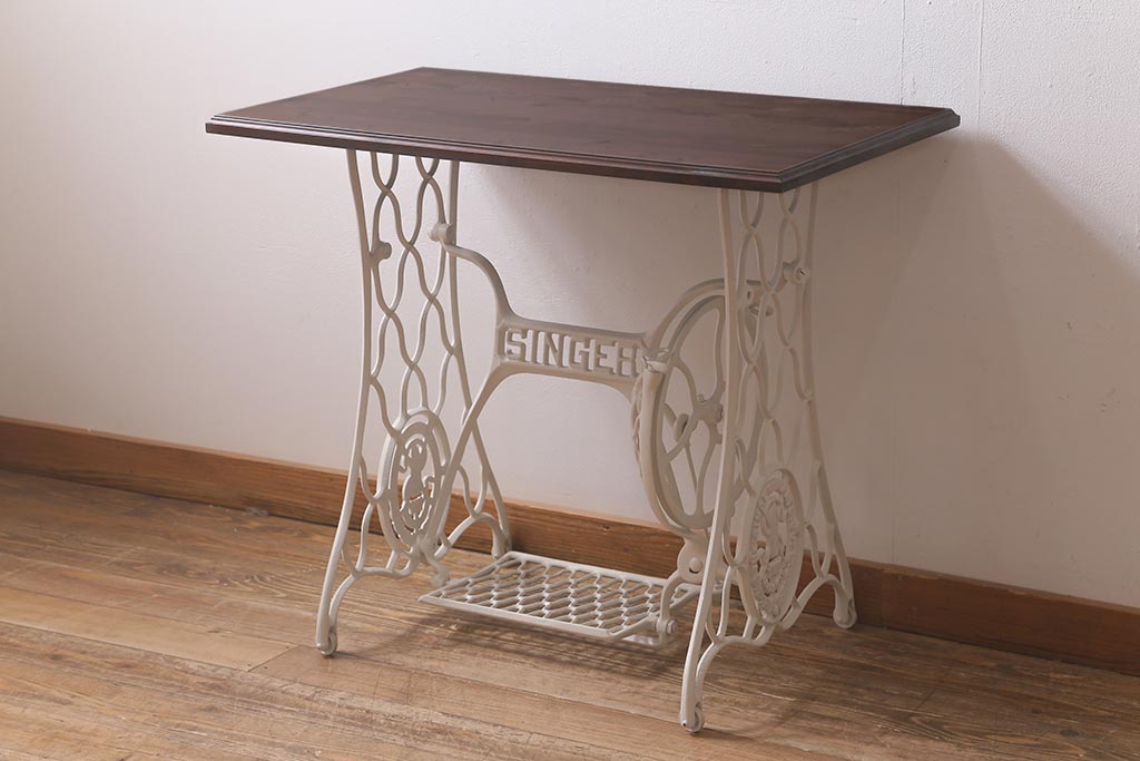 テーブル> サイドテーブル > シンガー社(SINGER) 天板ヒノキ材 リメイク ナチュラルインテリアにぴったりなミシンテーブル(シンガーミシン、サイドテーブル、カフェテーブル、ミシン台)(R-043297)