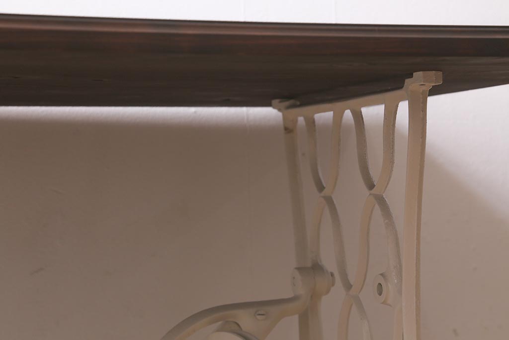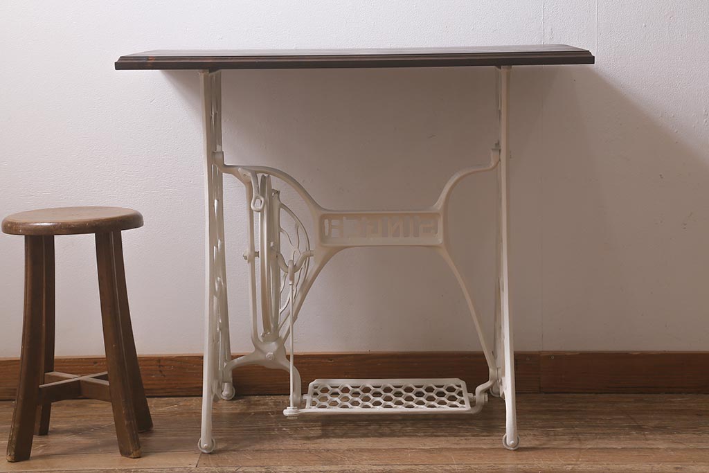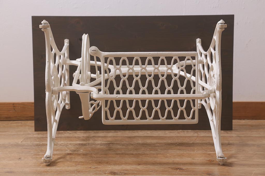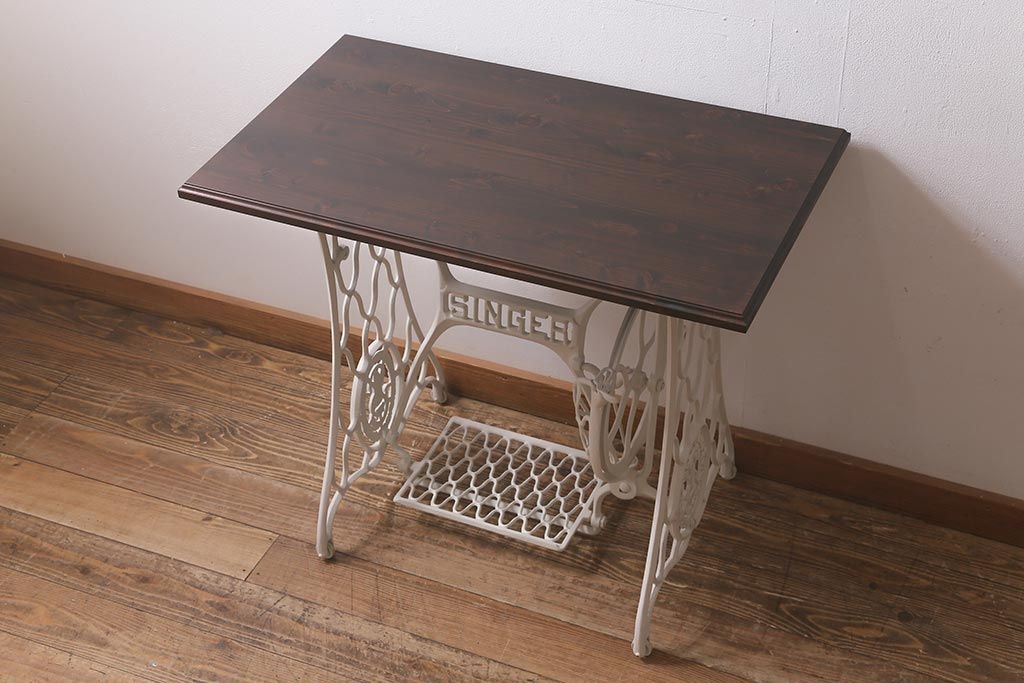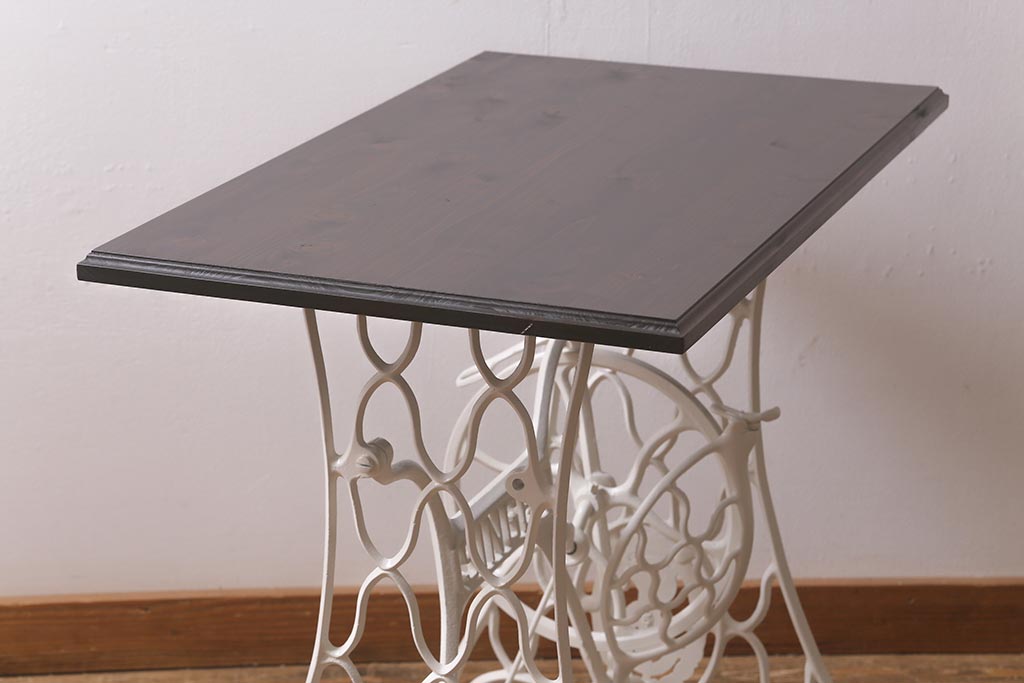 テーブル> 鉄脚テーブル > シンガー社(SINGER) 天板ヒノキ材 リメイク ナチュラルインテリアにぴったりなミシンテーブル(シンガーミシン、サイドテーブル、カフェテーブル、ミシン台)(R-043297)