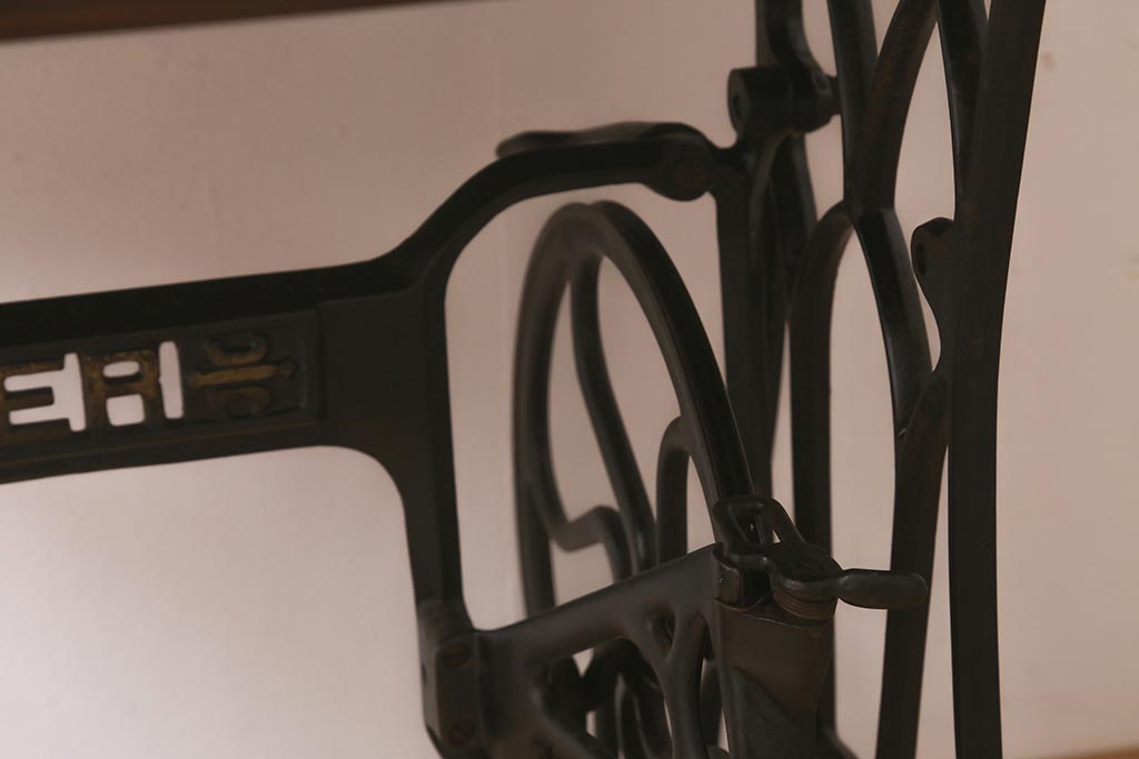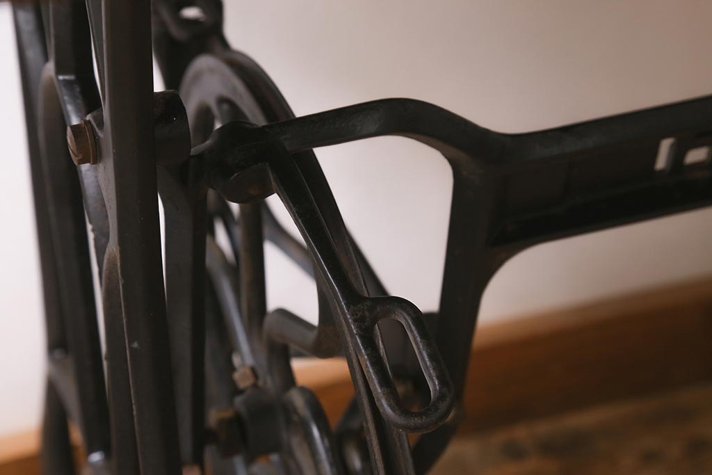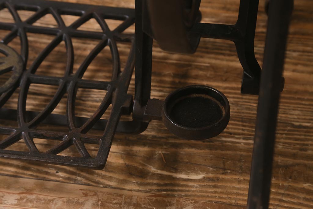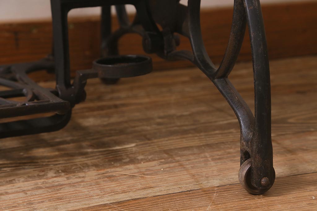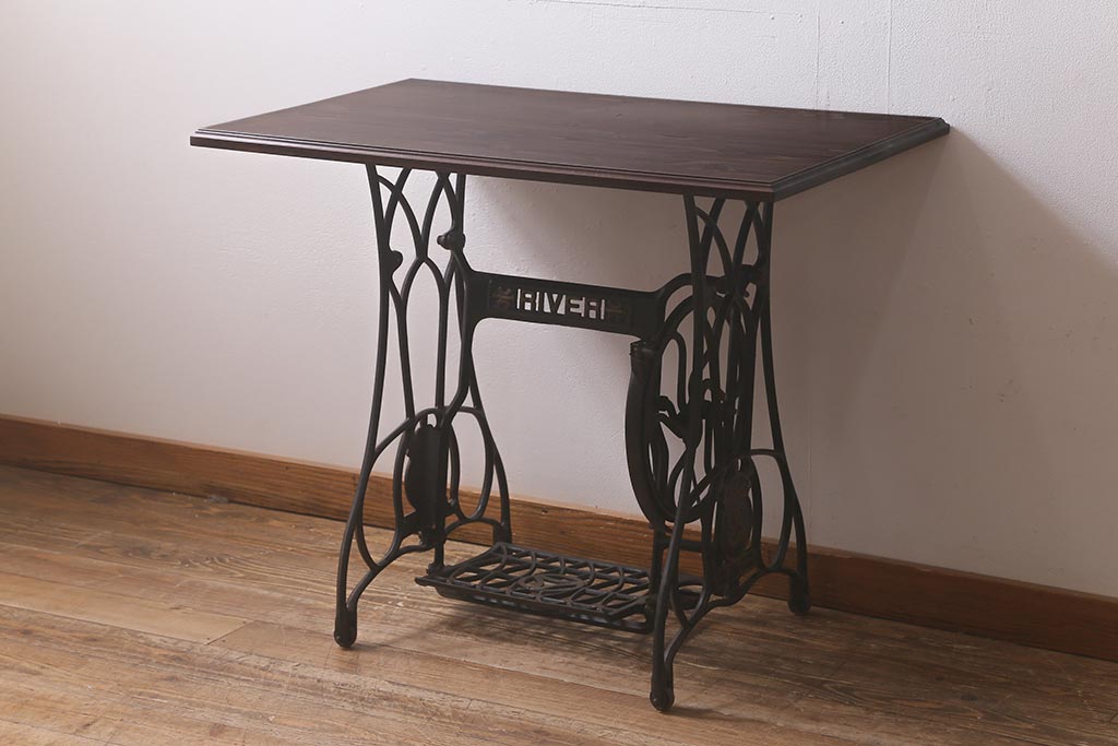 テーブル> 鉄脚テーブル > 和製アンティーク リバー社(RIVER) リメイク 昭和初期 珍しいデザインのミシンテーブル(サイドテーブル、カフェテーブル、ミシン台)(R-043269)