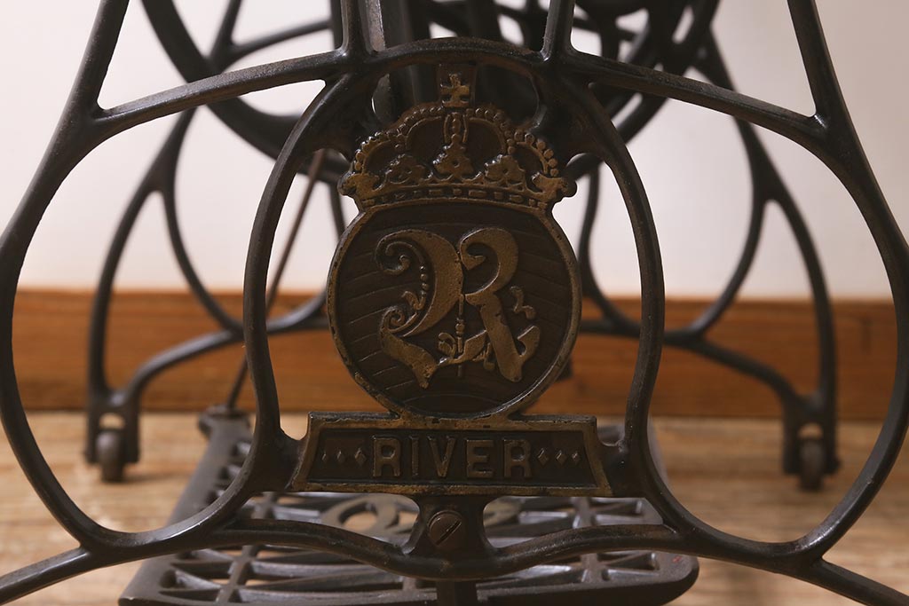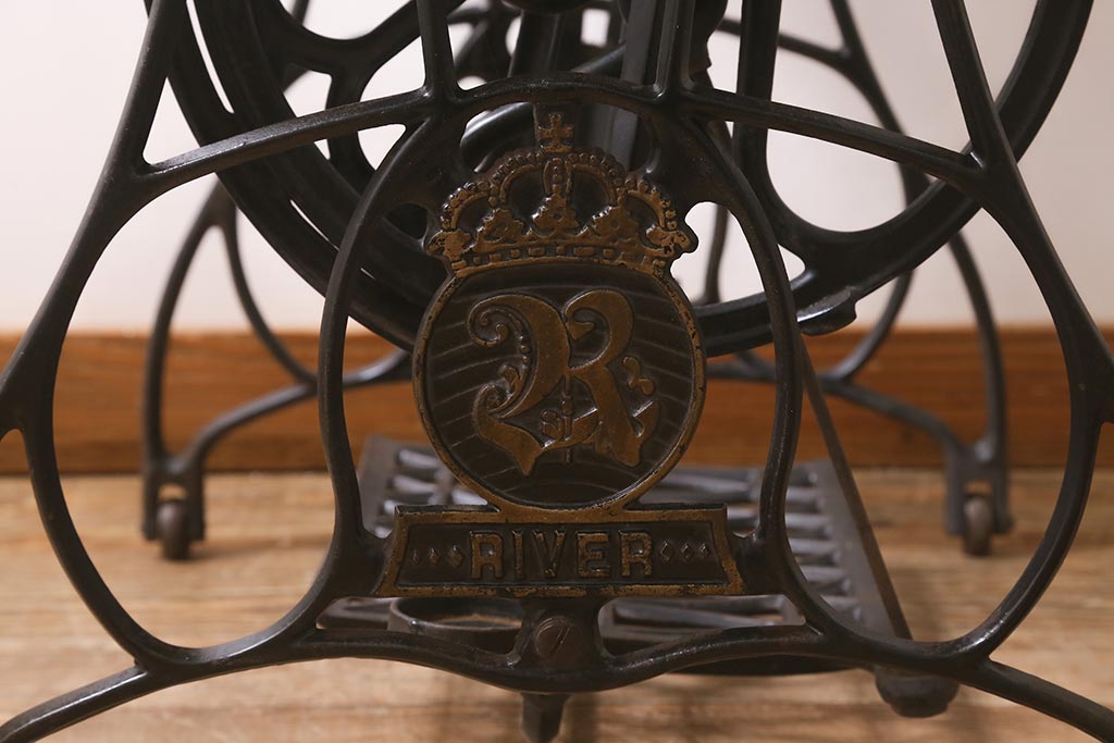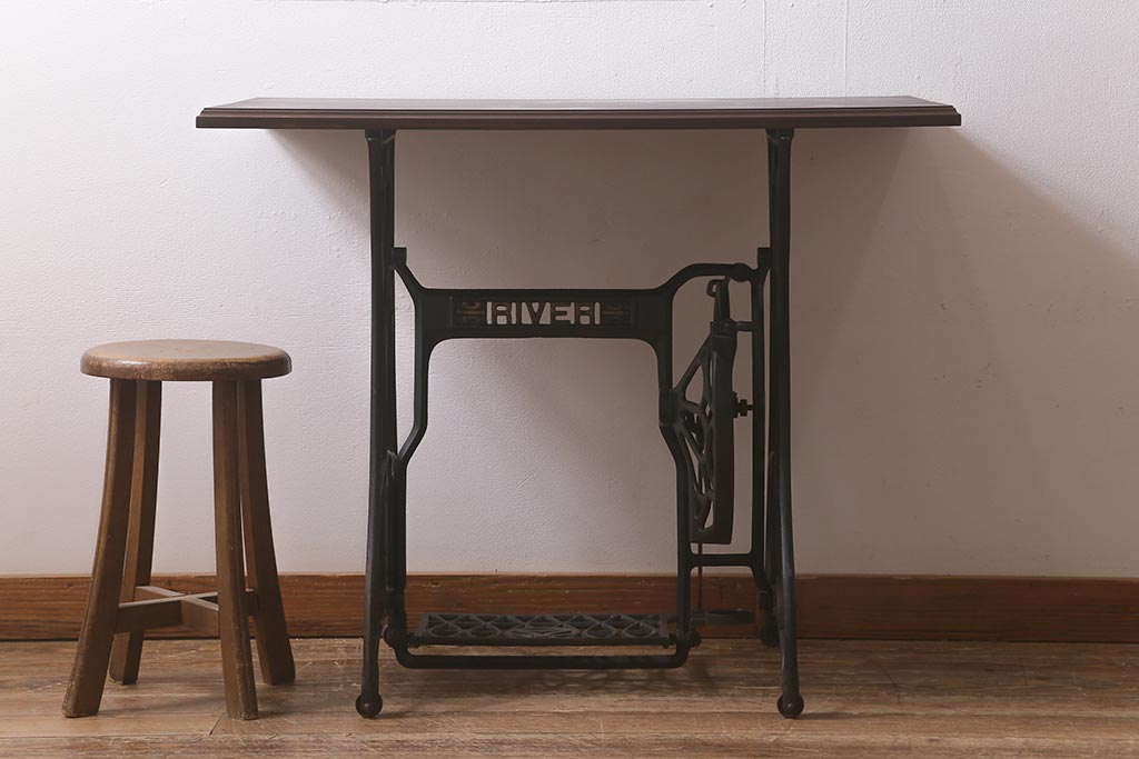 テーブル> ミシンテーブル > 和製アンティーク リバー社(RIVER) リメイク 昭和初期 珍しいデザインのミシンテーブル(サイドテーブル、カフェテーブル、ミシン台)(R-043269)
