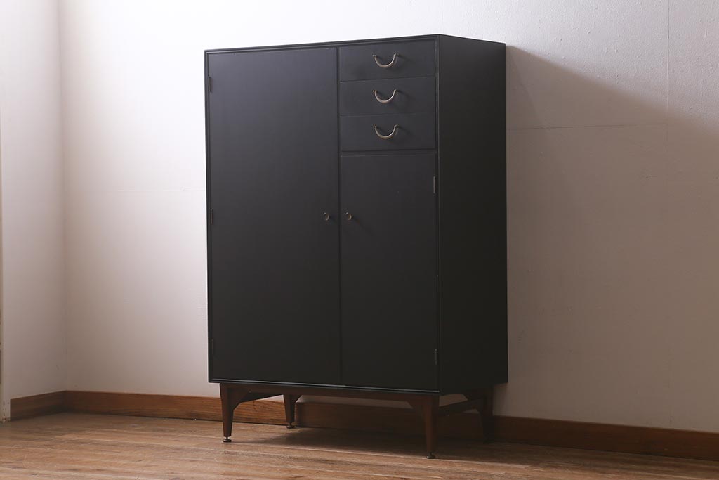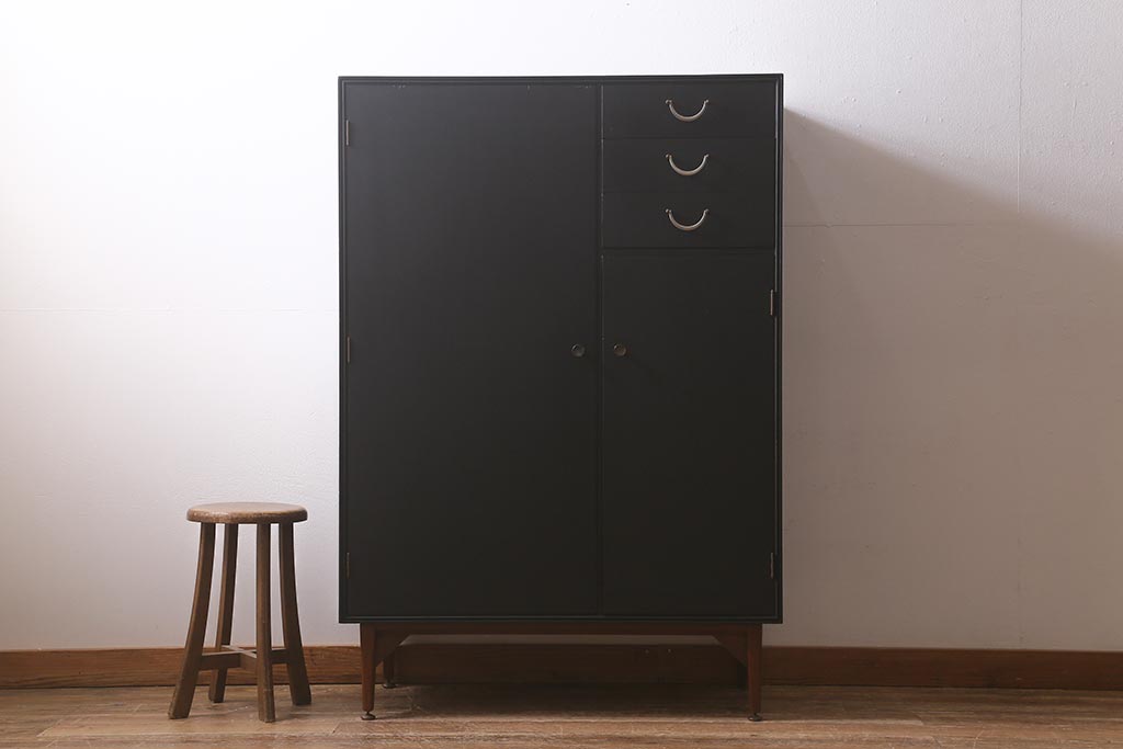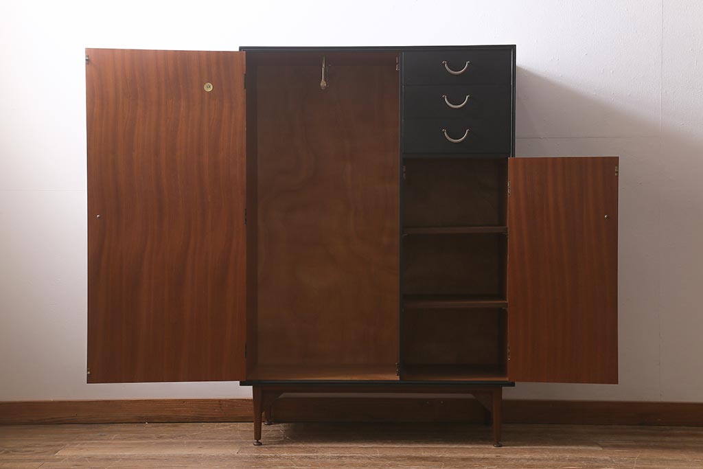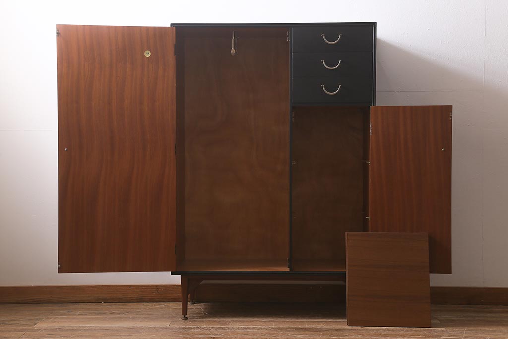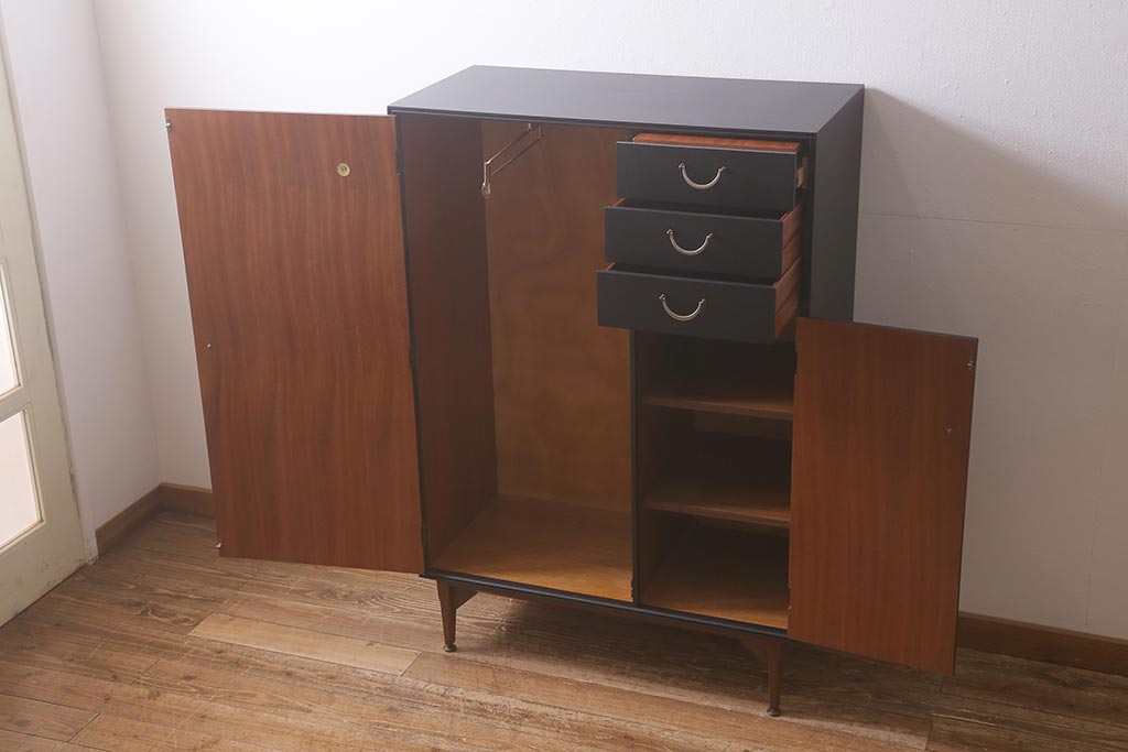 北欧ビンテージ ペイント家具 チーク材 MEREDEW社(メレデュー)社 ブラックペイントがモダンな雰囲気のワードローブ(洋服タンス、チェスト)(R-043265)