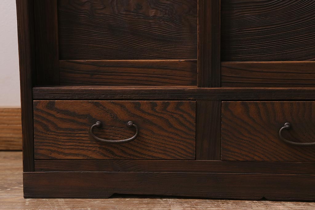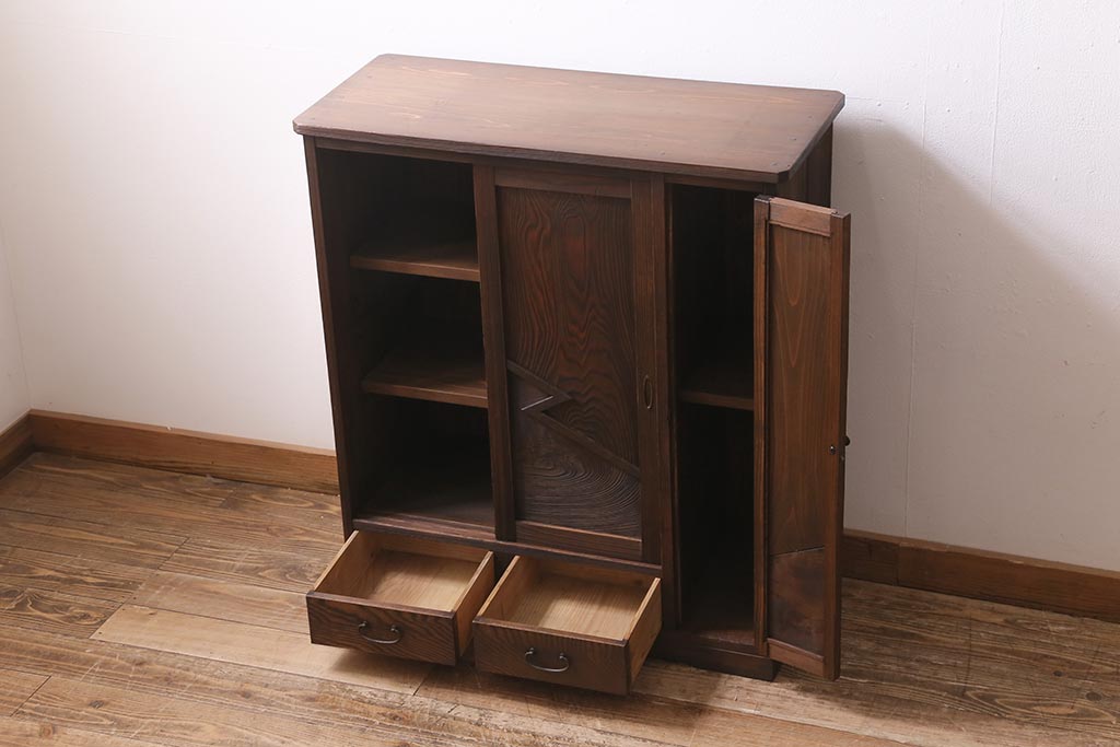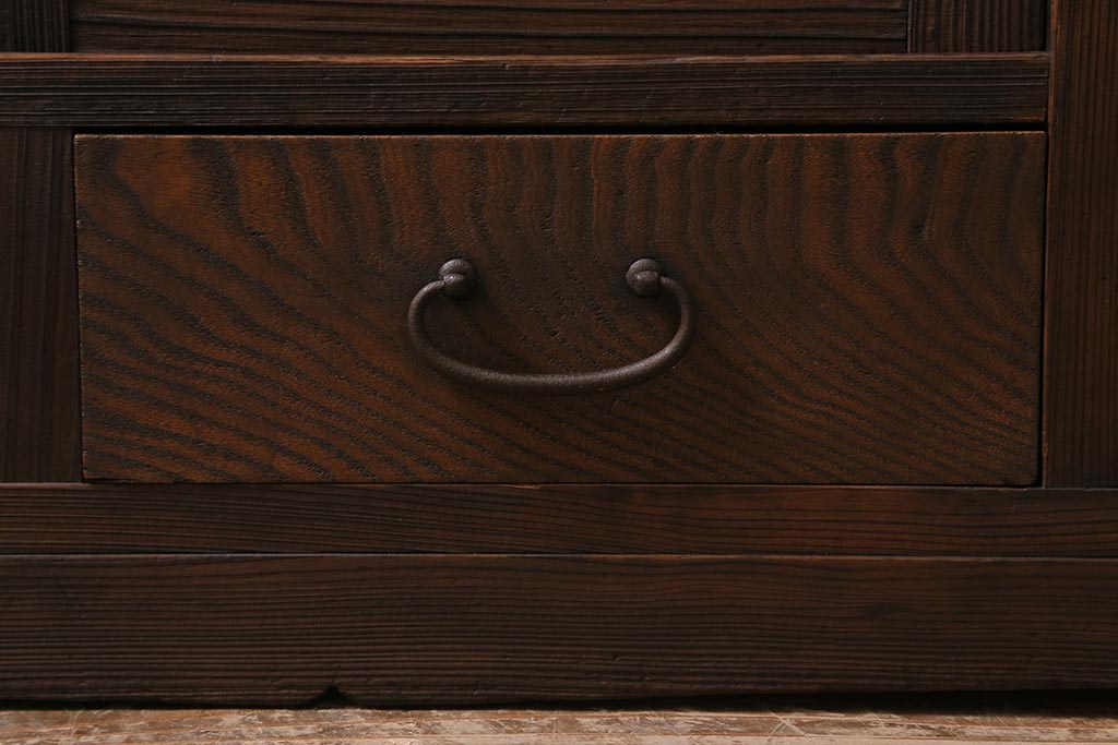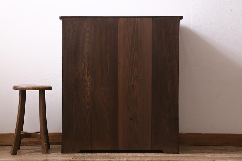 アンティーク家具 和製アンティーク 引き出し付き! 杢目の美しい杉材を使った昭和初期の下駄箱(収納棚、戸棚)(R-043356)